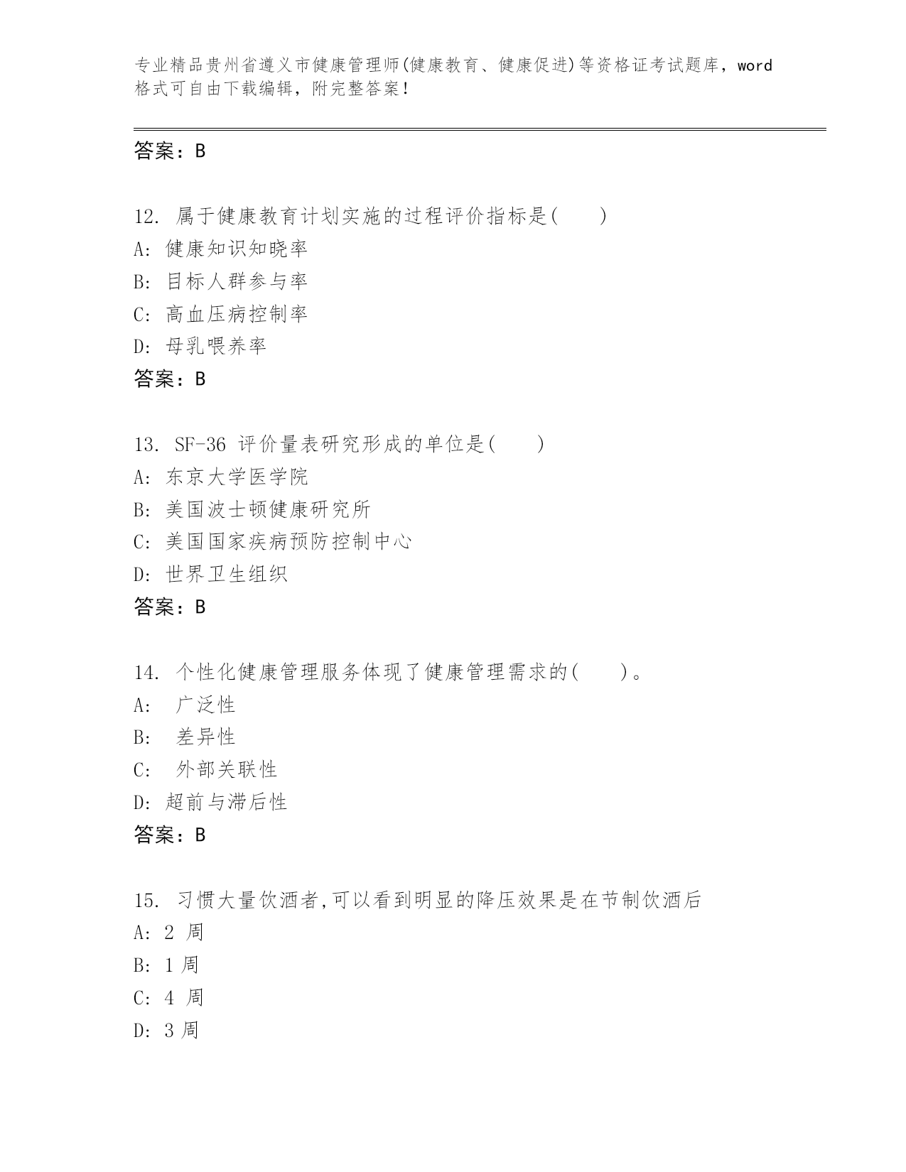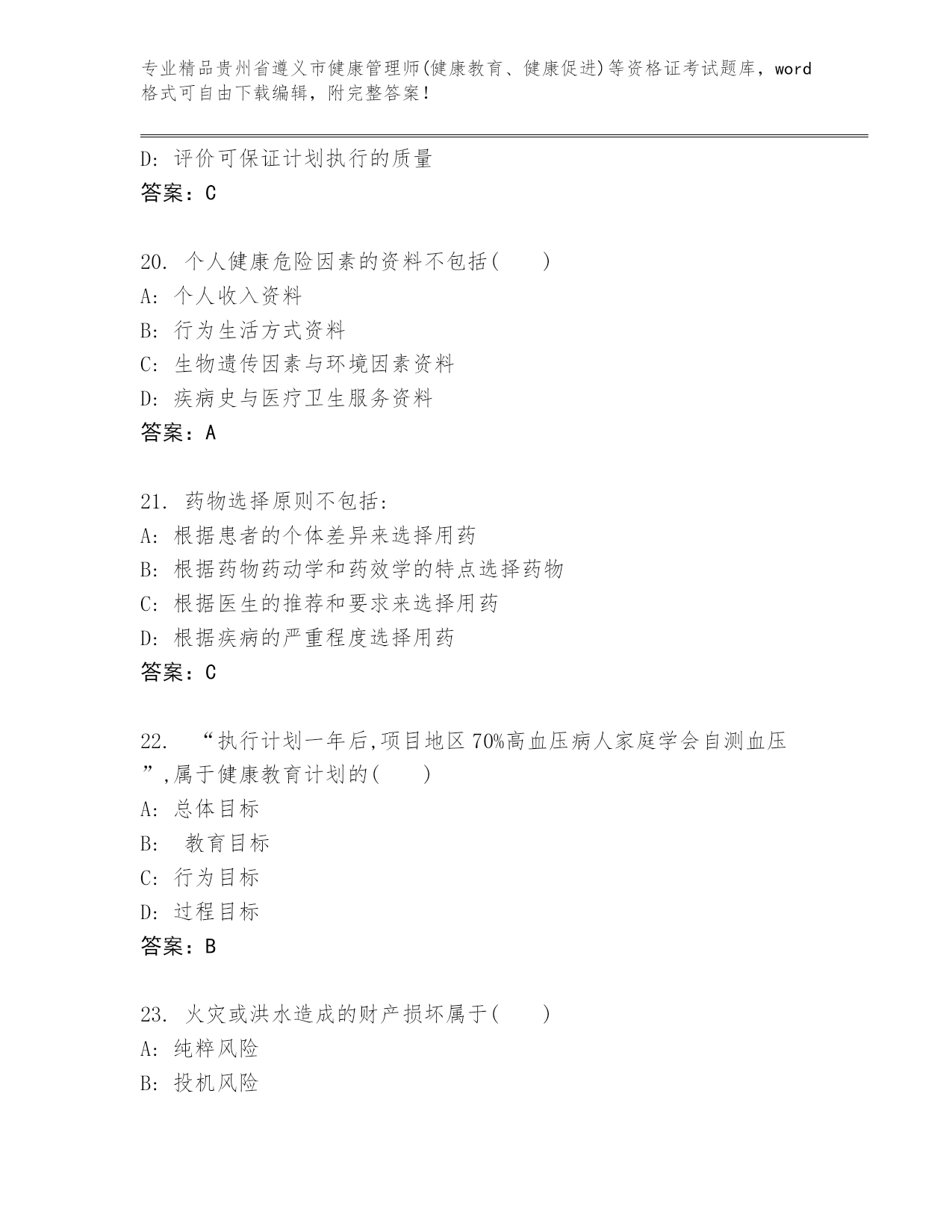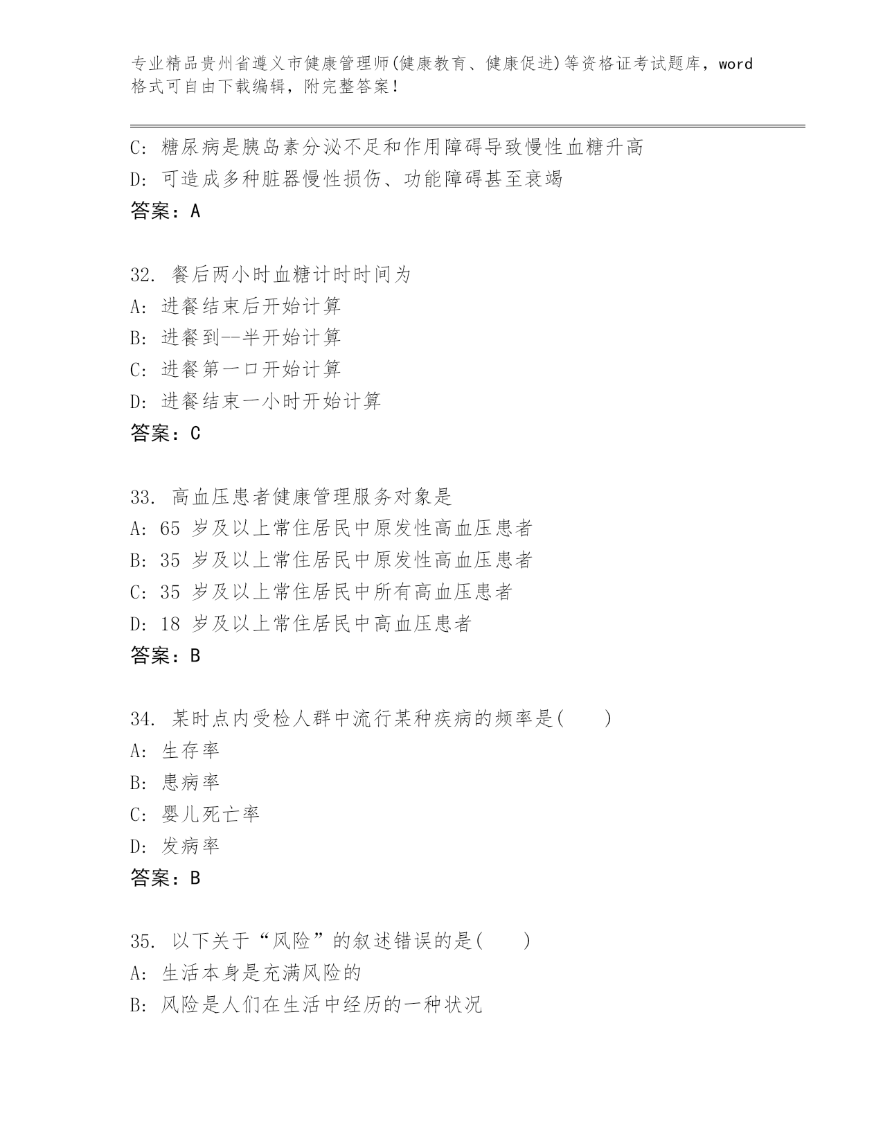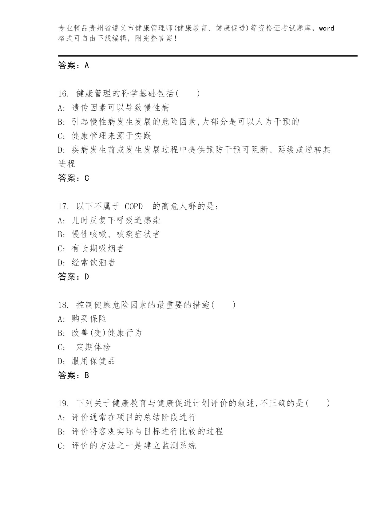 历年贵州省遵义市健康管理师(健康教育、健康促进)等资格证考试(预热题)