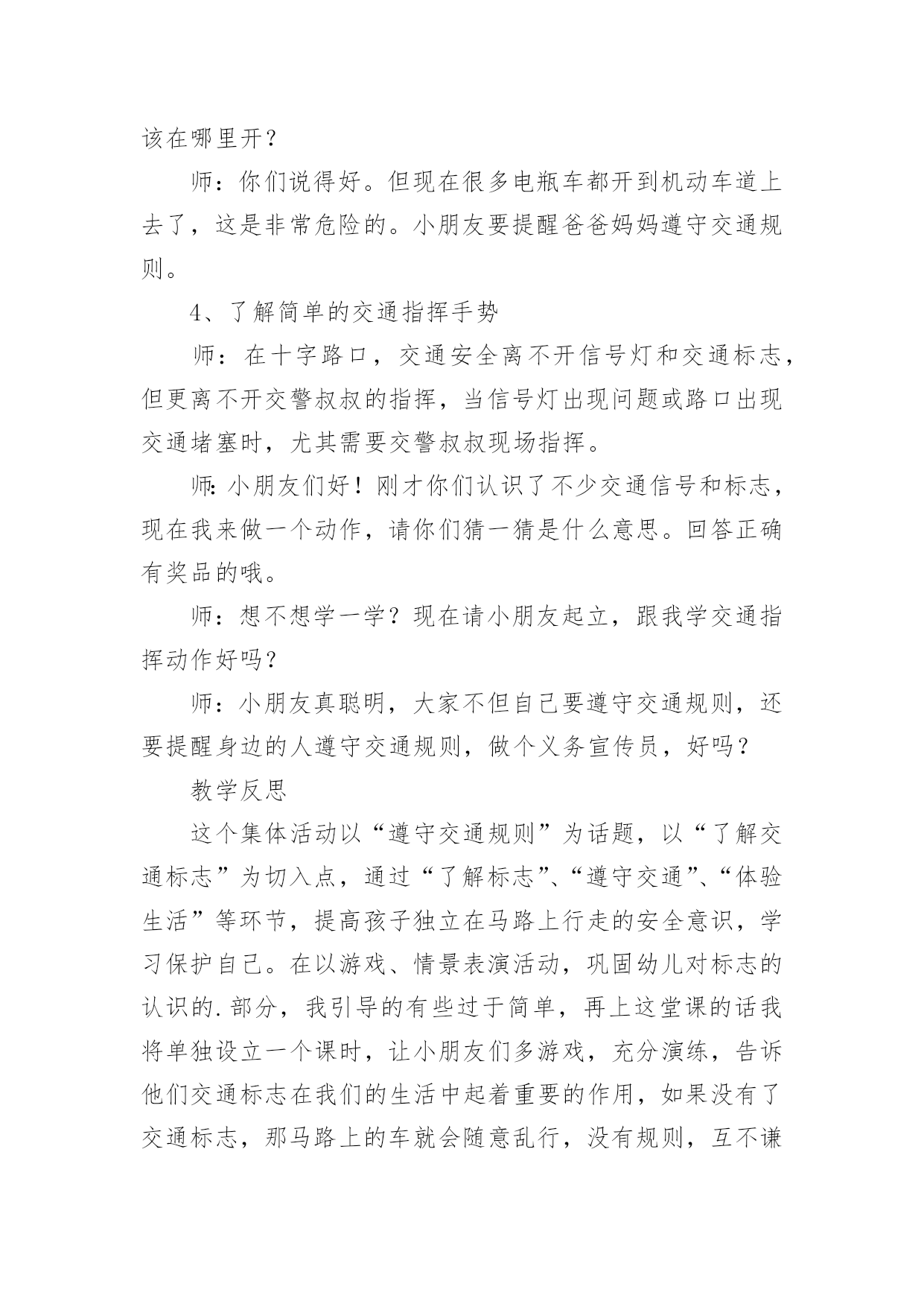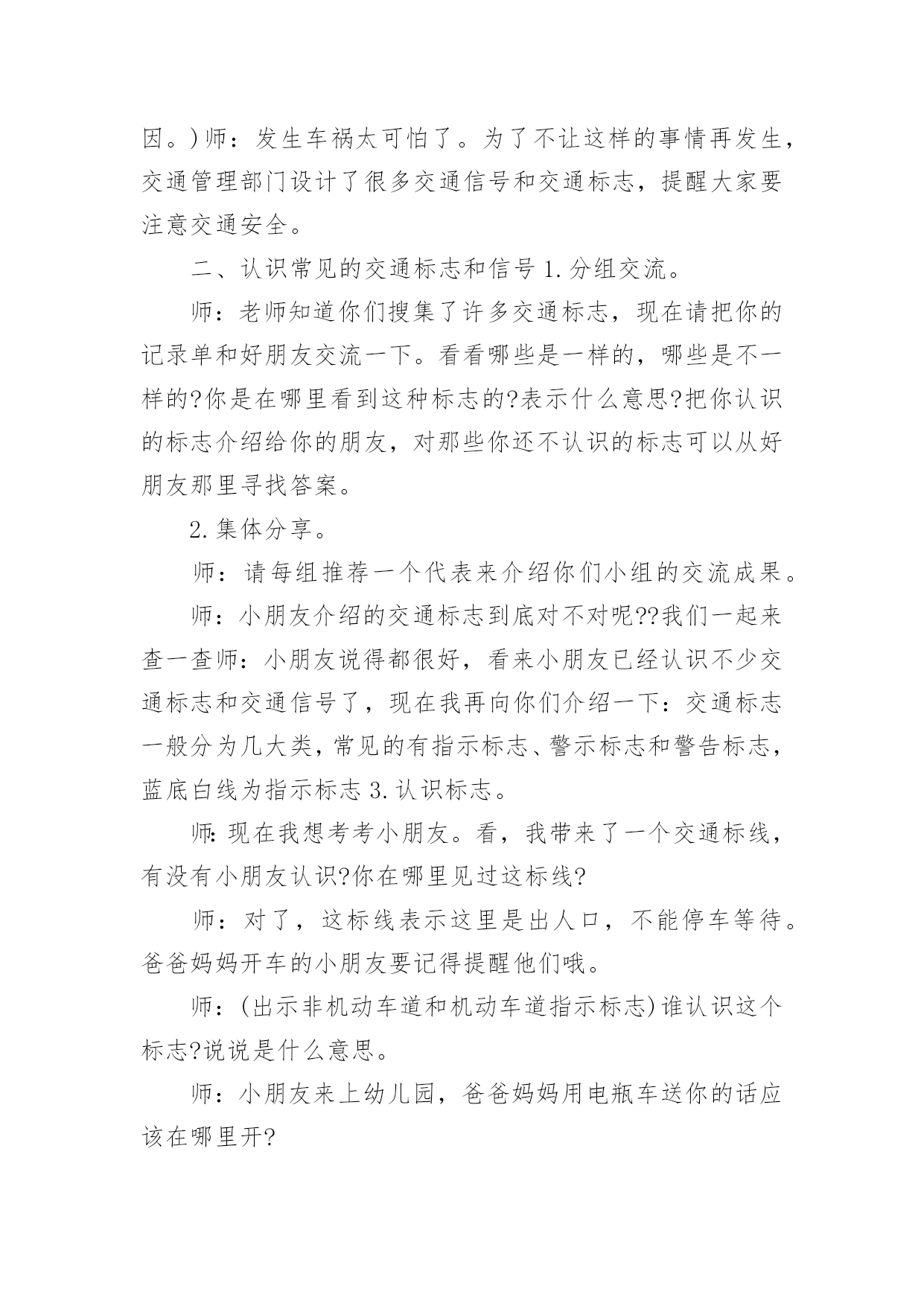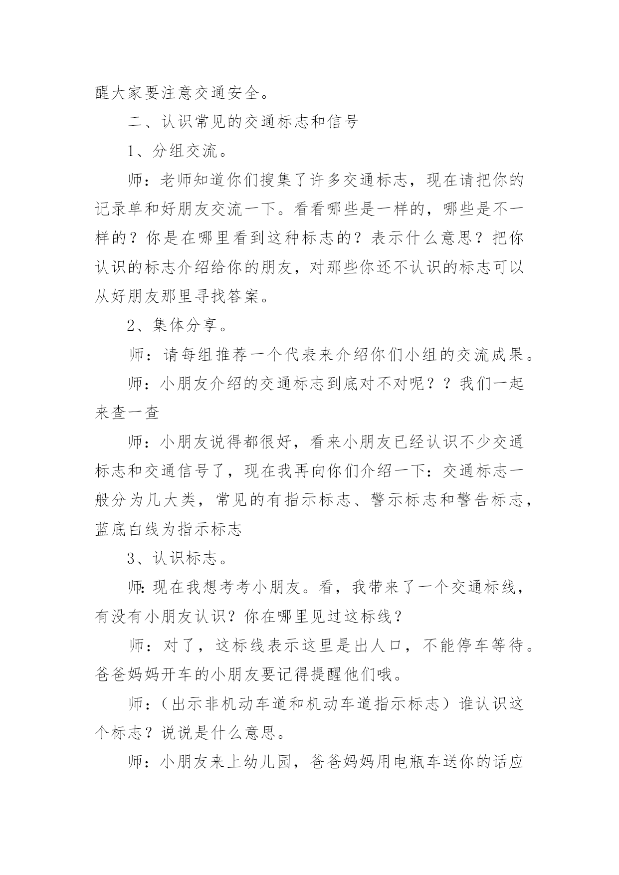 认识交通标志教案作为一名老师,可能需要进行教案编写工作,借助教案可以恰当地选择和运用教学方法,调动学生学习的积极性。那么教案应该怎么写才合适呢?下面是小编整理的认识交通标志教案,希望能够帮助到大家。认识交通标志教案1活动目标:1、认识并了解一些常见的交通信号、交通标志和交通标线的作用。2、知道出行要按交通标志行走,要服从交警指挥,有初步的交通安全意识。3、学习收集整理材料的方法,通过交流分享主动获取新知识。4、体验模仿的乐趣。5、能积极参加游戏活动,并学会自我保护。活动准备:安全事例,幼儿搜集的交通标志记录单(附后),汇总题板、活动过程:一、讲述交通事故案例,导入教师讲述交通事故:问你觉得为什么会发生车祸的呢?(幼儿交流讨论可能发生车祸的原因。)师:发生车祸太可怕了。为了不让这样的事情再发生,交通管理部门设计了很多交通信号和交通标志,提醒大家要注意交通安全。二、认识常见的交通标志和信号1、分组交流。师:老师知道你们搜集了许多交通标志,现在请把你的记录单和好朋友交流一下。看看哪些是一样的,哪些是不一样的?你是在哪里看到这种标志的?表示什么意思?把你认识的标志介绍给你的朋友,对那些你还不认识的标志可以从好朋友那里寻找答案。2、集体分享。师:请每组推荐一个代表来介绍你们小组的交流成果。师:小朋友介绍的交通标志到底对不对呢??我们一起来查一查师:小朋友说得都很好,看来小朋友已经认识不少交通标志和交通信号了,现在我再向你们介绍一下:交通标志一般分为几大类,常见的有指示标志、警示标志和警告标志,蓝底白线为指示标志3、认识标志。师:现在我想考考小朋友。看,我带来了一个交通标线,有没有小朋友认识?你在哪里见过这标线?师:对了,这标线表示这里是出人口,不能停车等待。爸爸妈妈开车的小朋友要记得提醒他们哦。师:(出示非机动车道和机动车道指示标志)谁认识这个标志?说说是什么意思。师:小朋友来上幼儿园,爸爸妈妈用电瓶车送你的话应该在哪里开?师:你们说得好。但现在很多电瓶车都开到机动车道上去了,这是非常危险的。小朋友要提醒爸爸妈妈遵守交通规则。4、了解简单的交通指挥手势师:在十字路口,交通安全离不开信号灯和交通标志,但更离不开交警叔叔的指挥,当信号灯出现问题或路口出现交通堵塞时,尤其需要交警叔叔现场指挥。师:小朋友们好!刚才你们认识了不少交通信号和标志,现在我来做一个动作,请你们猜一猜是什么意思。回答正确有奖品的哦。师:想不想学一学?现在请小朋友起立,跟我学交通指挥动作好吗?师:小朋友真聪明,大家不但自己要遵守交通规则,还要提醒身边的人遵守交通规则,做个义务宣传员,好吗?教学反思这个集体活动以“遵守交通规则”为话题,以“了解交通标志”为切入点,通过“了解标志”、“遵守交通”、“体验生活”等环节,提高孩子独立在马路上行走的安全意识,学习保护自己。在以游戏、情景表演活动,巩固幼儿对标志的认识的.部分,我引导的有些过于简单,再上这堂课的话我将单独设立一个课时,让小朋友们多游戏,充分演练,告诉他们交通标志在我们的生活中起着重要的作用,如果没有了交通标志,那马路上的车就会随意乱行,没有规则,互不谦让,很容易引起车祸;如果没有了交通标志,人们就不知道什么是停车场,那车辆就会随意停放,这对我们的行走和生活都会造成很大的影响;如果没有了交通标志,上班的时候马路就会混乱,这样会影响人们的工作的等等,所以我们可以看出交通标志是社会生活环境中不可缺少的一种符号;我们都应该认真的去执行这些交通标志所表达的含义,做一名优秀的交通小标兵。认识交通标志教案2活动目标:1.认识并了解一些常见的交通信号、交通标志和交通标线的作用。2.知道出行要按交通标志行走,要服从交警指挥,有初步的交通安全意识。3.学习收集整理材料的方法,通过交流分享主动获取新知识。4.考验小朋友们的反应能力,锻炼他们的个人能力。5.初步培养幼儿的安全意识,提高自我保护能力活动准备:安全事例,幼儿搜集的交通标志记录单(附后),汇总题板.活动过程:一、讲述交通事故案例,导入教师讲述交通事故:问你觉得为什么会发生车祸的呢?(幼儿交流讨论可能发生车祸的原因。)师:发生车祸太可怕了。为了不让这样的事情再发生,交通管理部门设计了很多交通信号和交通标志,提醒大家要注意交通安全。二、认识常见的交通标志和信号1.分组交流。师:老师知道你们搜集了许多交通标志,现在请把你的记录单和好朋友交流一下。看看哪些是一样的,哪些是不一样的?你是在哪里看到这种标志的?表示什么意思?把你认识的标志介绍给你的朋友,对那些你还不认识的标志可以从好朋友那里寻找答案。2.集体分享。师:请每组推荐一个代表来介绍你们小组的交流成果。师:小朋友介绍的交通标志到底对不对呢??我们一起来查一查师:小朋友说得都很好,看来小朋友已经认识不少交通标志和交通信号了,现在我再