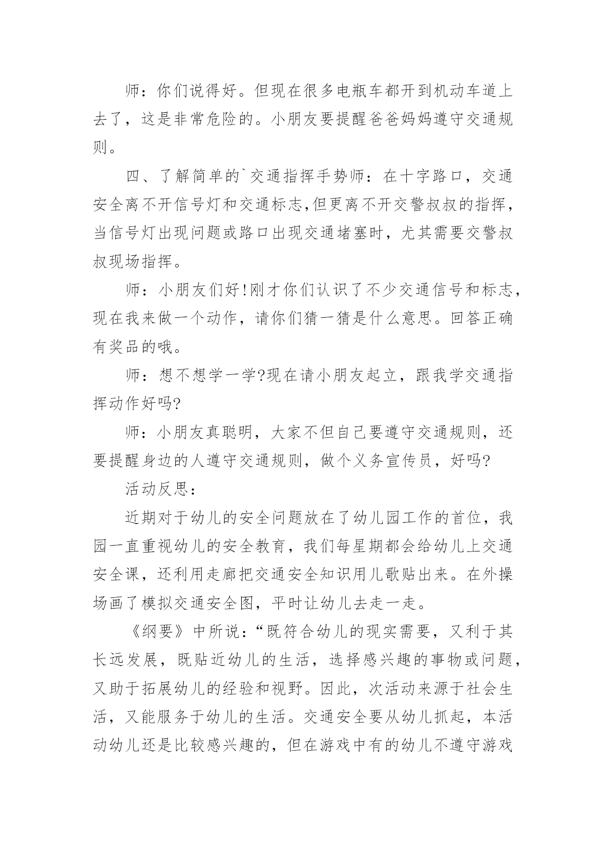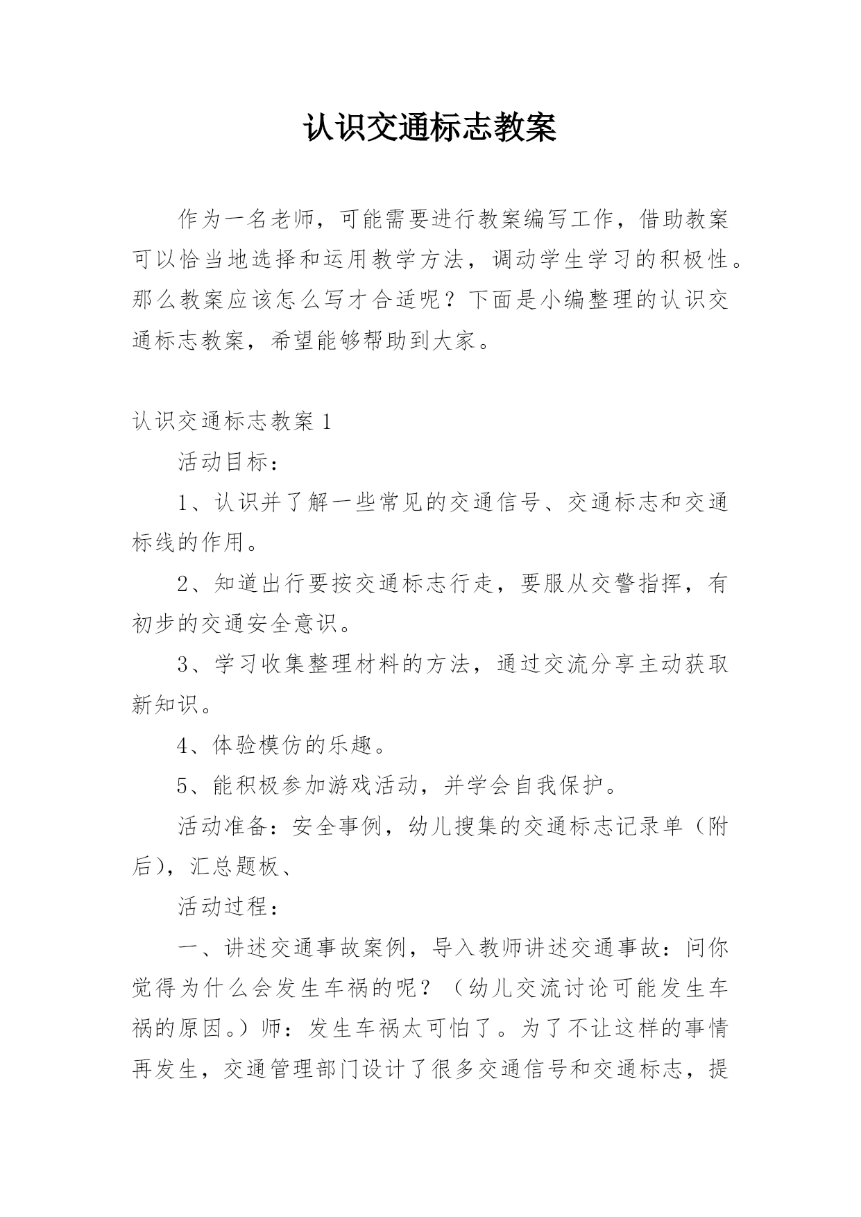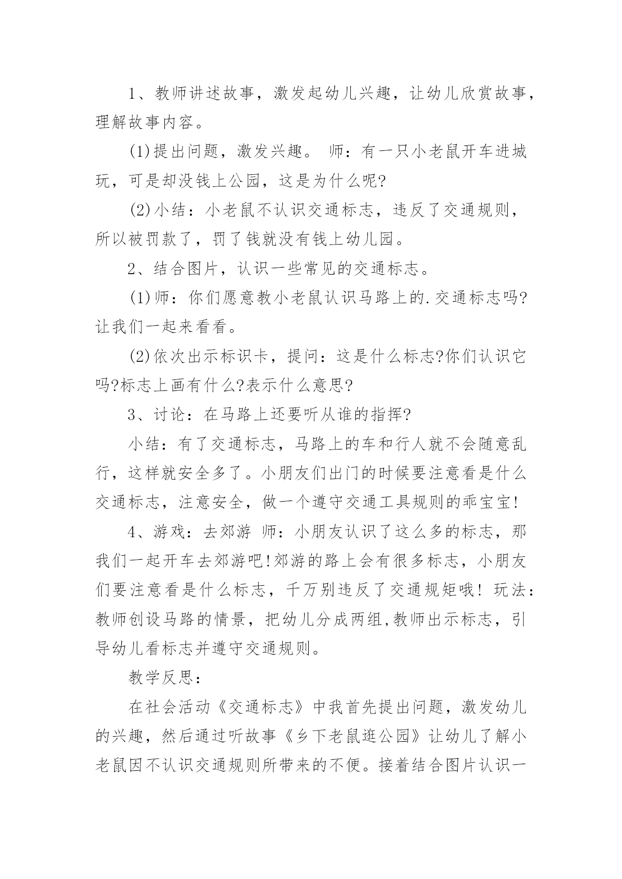 认识交通标志教案作为一名老师,可能需要进行教案编写工作,借助教案可以恰当地选择和运用教学方法,调动学生学习的积极性。那么教案应该怎么写才合适呢?下面是小编整理的认识交通标志教案,希望能够帮助到大家。认识交通标志教案1活动目标:1、认识并了解一些常见的交通信号、交通标志和交通标线的作用。2、知道出行要按交通标志行走,要服从交警指挥,有初步的交通安全意识。3、学习收集整理材料的方法,通过交流分享主动获取新知识。4、体验模仿的乐趣。5、能积极参加游戏活动,并学会自我保护。活动准备:安全事例,幼儿搜集的交通标志记录单(附后),汇总题板、活动过程:一、讲述交通事故案例,导入教师讲述交通事故:问你觉得为什么会发生车祸的呢?(幼儿交流讨论可能发生车祸的原因。)师:发生车祸太可怕了。为了不让这样的事情再发生,交通管理部门设计了很多交通信号和交通标志,提醒大家要注意交通安全。二、认识常见的交通标志和信号1、分组交流。师:老师知道你们搜集了许多交通标志,现在请把你的记录单和好朋友交流一下。看看哪些是一样的,哪些是不一样的?你是在哪里看到这种标志的?表示什么意思?把你认识的标志介绍给你的朋友,对那些你还不认识的标志可以从好朋友那里寻找答案。2、集体分享。师:请每组推荐一个代表来介绍你们小组的交流成果。师:小朋友介绍的交通标志到底对不对呢??我们一起来查一查师:小朋友说得都很好,看来小朋友已经认识不少交通标志和交通信号了,现在我再向你们介绍一下:交通标志一般分为几大类,常见的有指示标志、警示标志和警告标志,蓝底白线为指示标志3、认识标志。师:现在我想考考小朋友。看,我带来了一个交通标线,有没有小朋友认识?你在哪里见过这标线?师:对了,这标线表示这里是出人口,不能停车等待。爸爸妈妈开车的小朋友要记得提醒他们哦。师:(出示非机动车道和机动车道指示标志)谁认识这个标志?说说是什么意思。师:小朋友来上幼儿园,爸爸妈妈用电瓶车送你的话应该在哪里开?师:你们说得好。但现在很多电瓶车都开到机动车道上去了,这是非常危险的。小朋友要提醒爸爸妈妈遵守交通规则。4、了解简单的交通指挥手势师:在十字路口,交通安全离不开信号灯和交通标志,但更离不开交警叔叔的指挥,当信号灯出现问题或路口出现交通堵塞时,尤其需要交警叔叔现场指挥。师:小朋友们好!刚才你们认识了不少交通信号和标志,现在我来做一个动作,请你们猜一猜是什么意思。回答正确有奖品的哦。师:想不想学一学?现在请小朋友起立,跟我学交通指挥动作好吗?师:小朋友真聪明,大家不但自己要遵守交通规则,还要提醒身边的人遵守交通规则,做个义务宣传员,好吗?教学反思这个集体活动以“遵守交通规则”为话题,以“了解交通标志”为切入点,通过“了解标志”、“遵守交通”、“体验生活”等环节,提高孩子独立在马路上行走的安全意识,学习保护自己。在以游戏、情景表演活动,巩固幼儿对标志的认识的.部分,我引导的有些过于简单,再上这堂课的话我将单独设立一个课时,让小朋友们多游戏,充分演练,告诉他们交通标志在我们的生活中起着重要的作用,如果没有了交通标志,那马路上的车就会随意乱行,没有规则,互不谦让,很容易引起车祸;如果没有了交通标志,人们就不知道什么是停车场,那车辆就会随意停放,这对我们的行走和生活都会造成很大的影响;如果没有了交通标志,上班的时候马路就会混乱,这样会影响人们的工作的等等,所以我们可以看出交通标志是社会生活环境中不可缺少的一种符号;我们都应该认真的去执行这些交通标志所表达的含义,做一名优秀的交通小标兵。认识交通标志教案2活动目标:1.认识并了解一些常见的交通信号、交通标志和交通标线的作用。2.知道出行要按交通标志行走,要服从交警指挥,有初步的交通安全意识。3.学习收集整理材料的方法,通过交流分享主动获取新知识。4.考验小朋友们的反应能力,锻炼他们的个人能力。5.初步培养幼儿的安全意识,提高自我保护能力活动准备:安全事例,幼儿搜集的交通标志记录单(附后),汇总题板.活动过程:一、讲述交通事故案例,导入教师讲述交通事故:问你觉得为什么会发生车祸的呢?(幼儿交流讨论可能发生车祸的原因。)师:发生车祸太可怕了。为了不让这样的事情再发生,交通管理部门设计了很多交通信号和交通标志,提醒大家要注意交通安全。二、认识常见的交通标志和信号1.分组交流。师:老师知道你们搜集了许多交通标志,现在请把你的记录单和好朋友交流一下。看看哪些是一样的,哪些是不一样的?你是在哪里看到这种标志的?表示什么意思?把你认识的标志介绍给你的朋友,对那些你还不认识的标志可以从好朋友那里寻找答案。2.集体分享。师:请每组推荐一个代表来介绍你们小组的交流成果。师:小朋友介绍的交通标志到底对不对呢??我们一起来查一查师:小朋友说得都很好,看来小朋友已经认识不少交通标志和交通信号了,现在我再