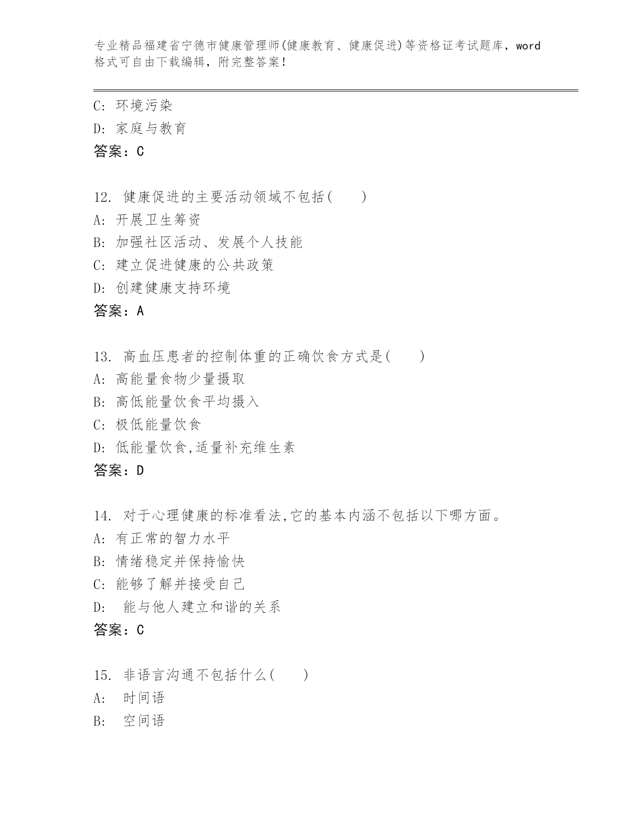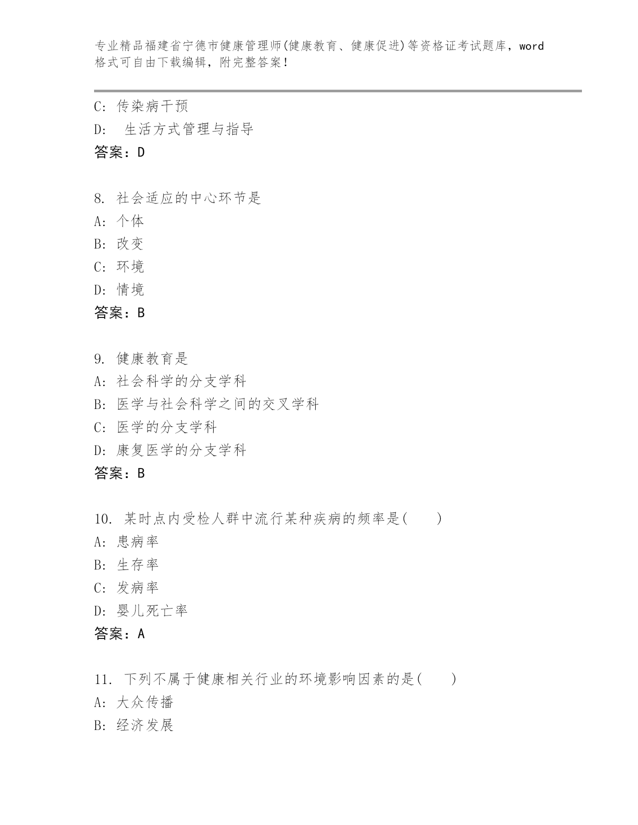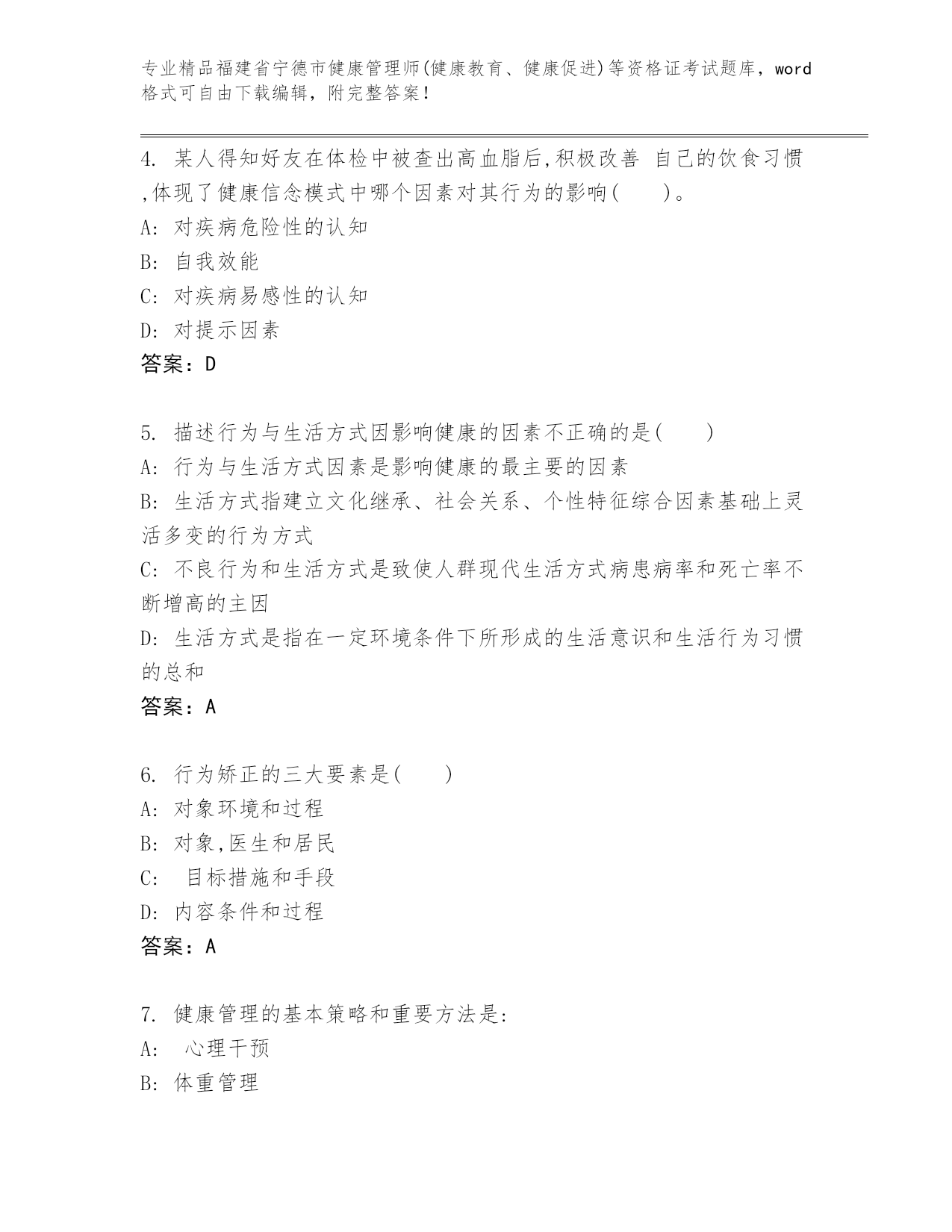 历年福建省宁德市健康管理师(健康教育、健康促进)等资格证考试精选题库(夺冠)