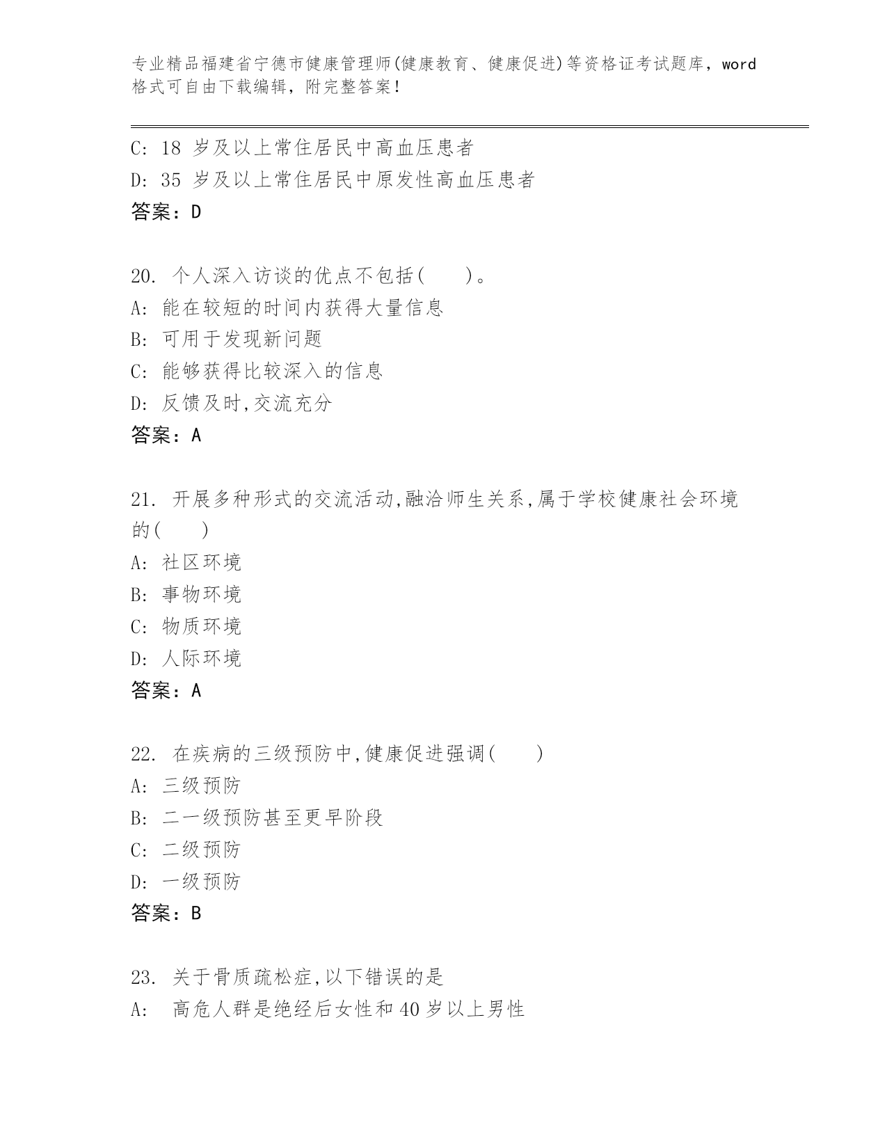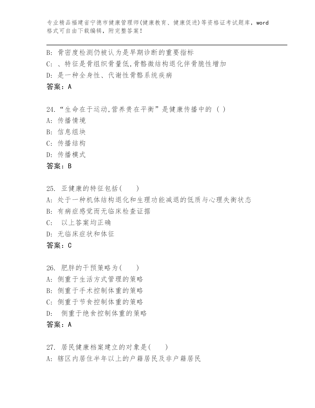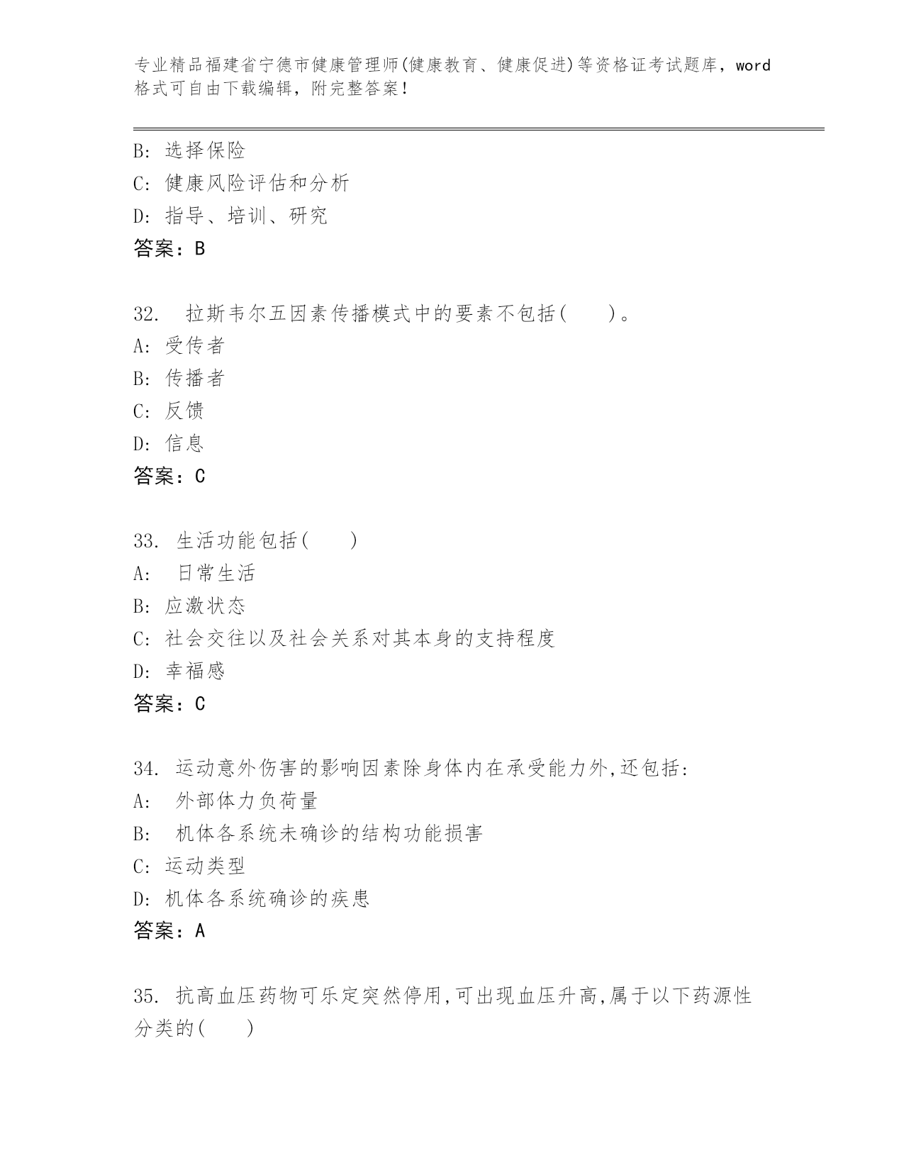 历年福建省宁德市健康管理师(健康教育、健康促进)等资格证考试精选题库(夺冠)