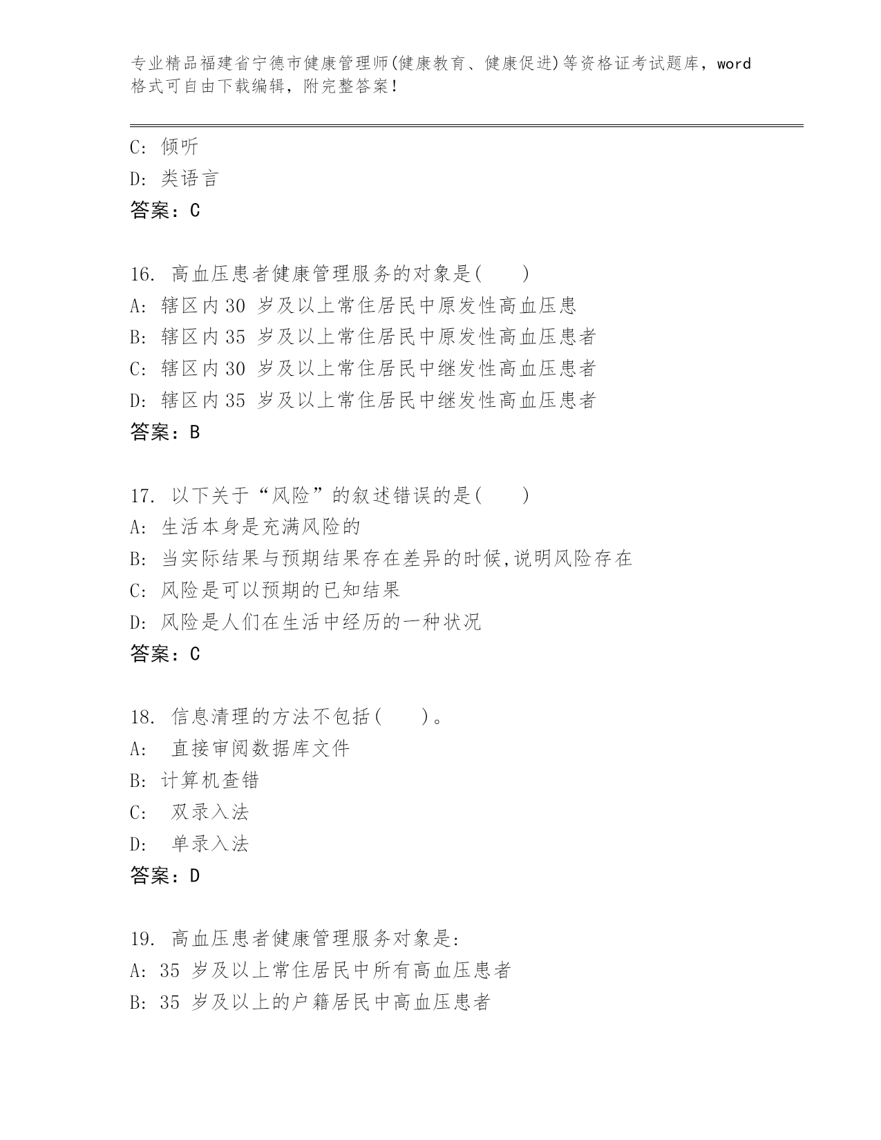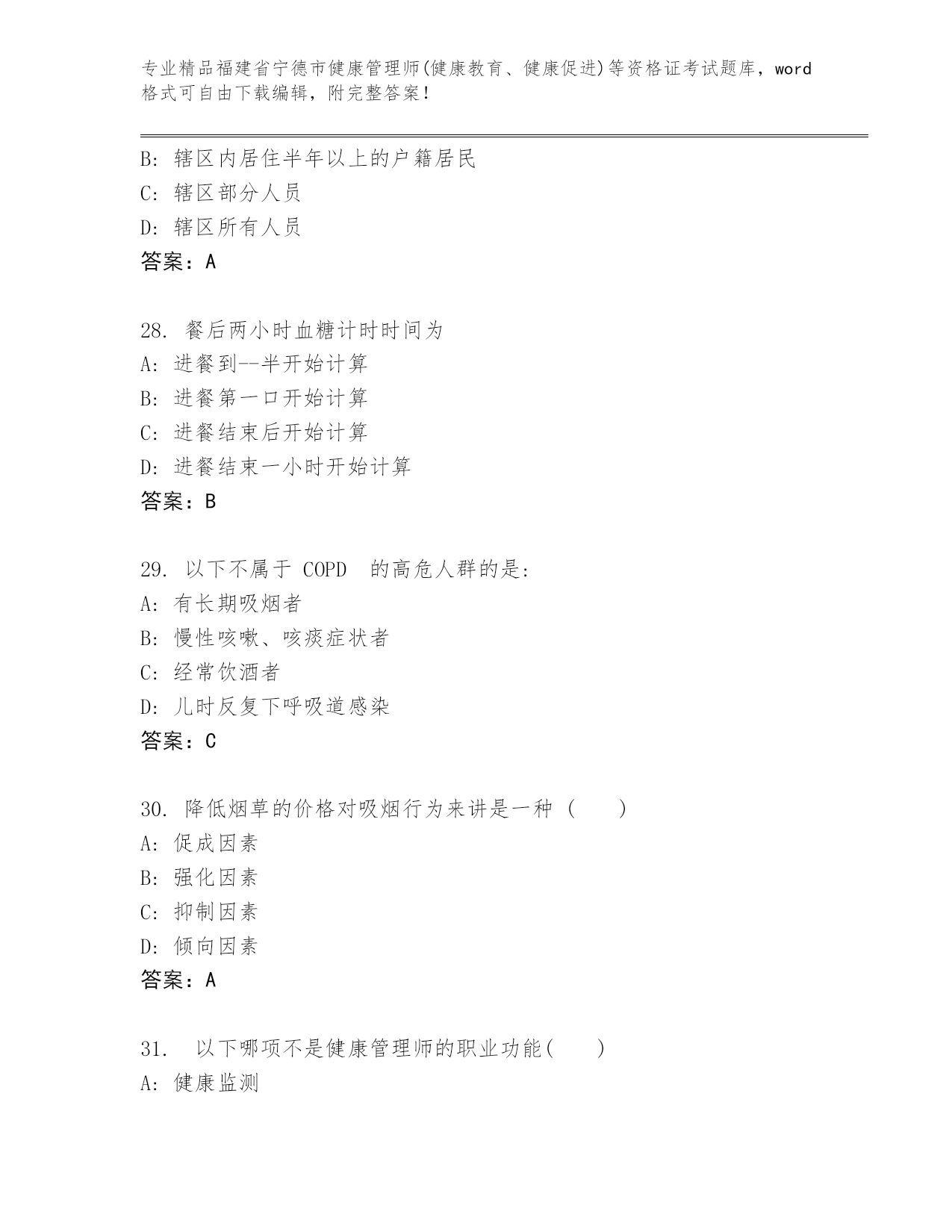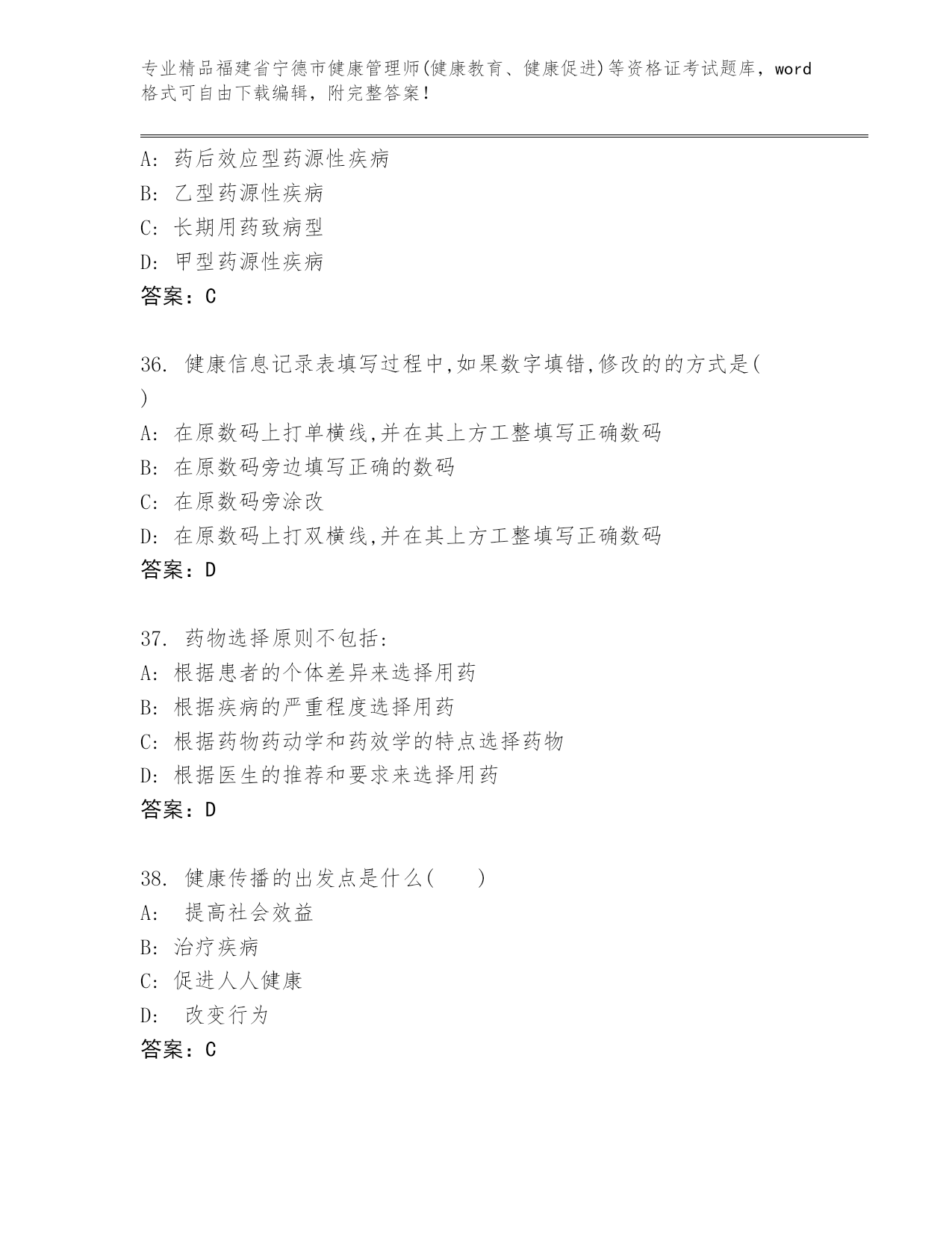 历年福建省宁德市健康管理师(健康教育、健康促进)等资格证考试精选题库(夺冠).docx