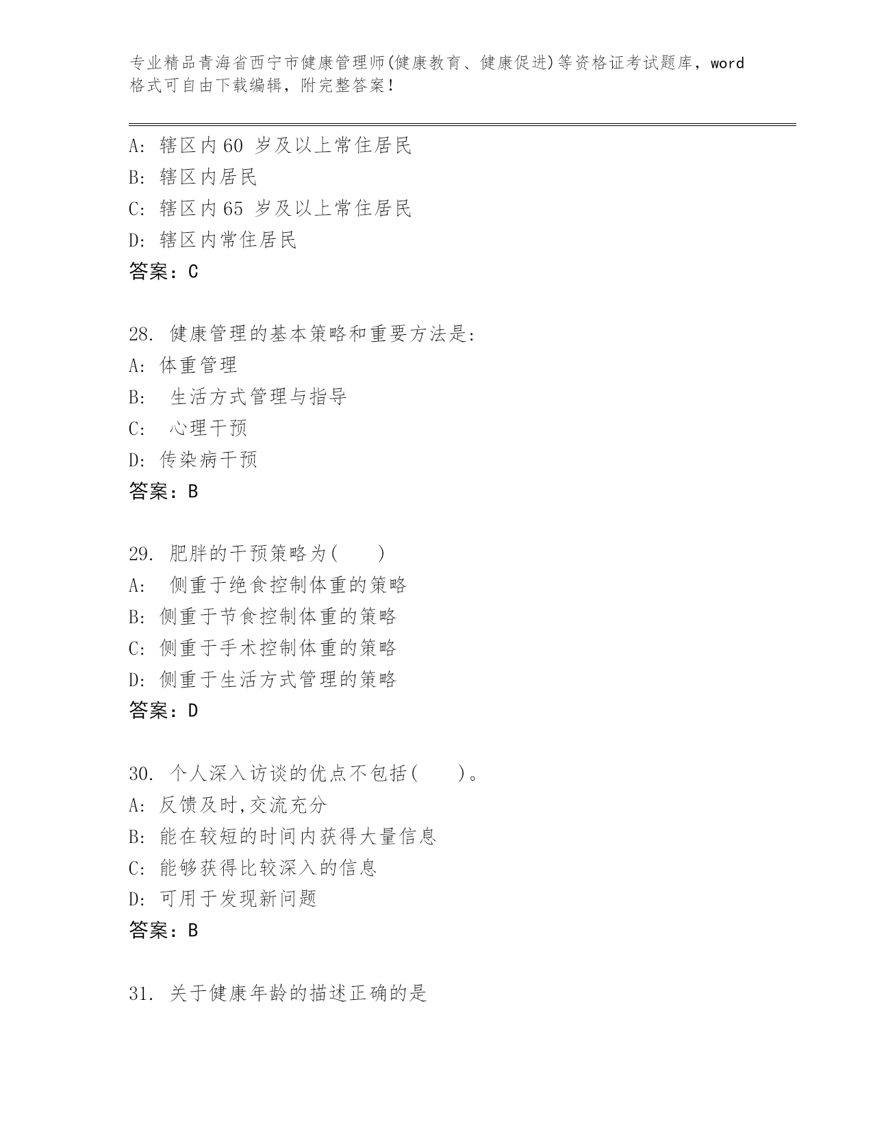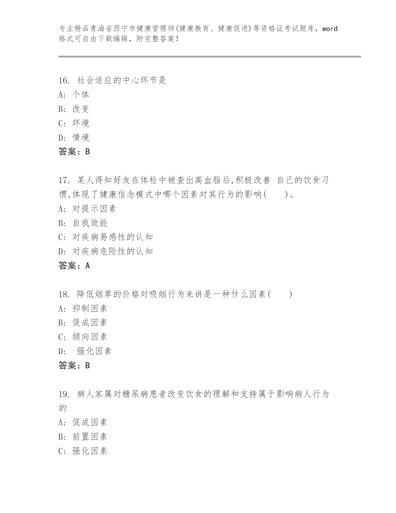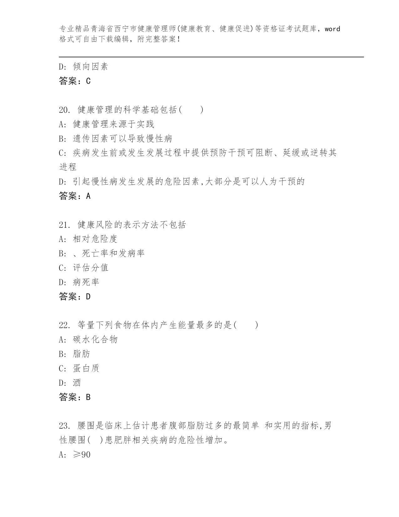 优选青海省西宁市健康管理师(健康教育、健康促进)等资格证考试带答案(基础题).docx