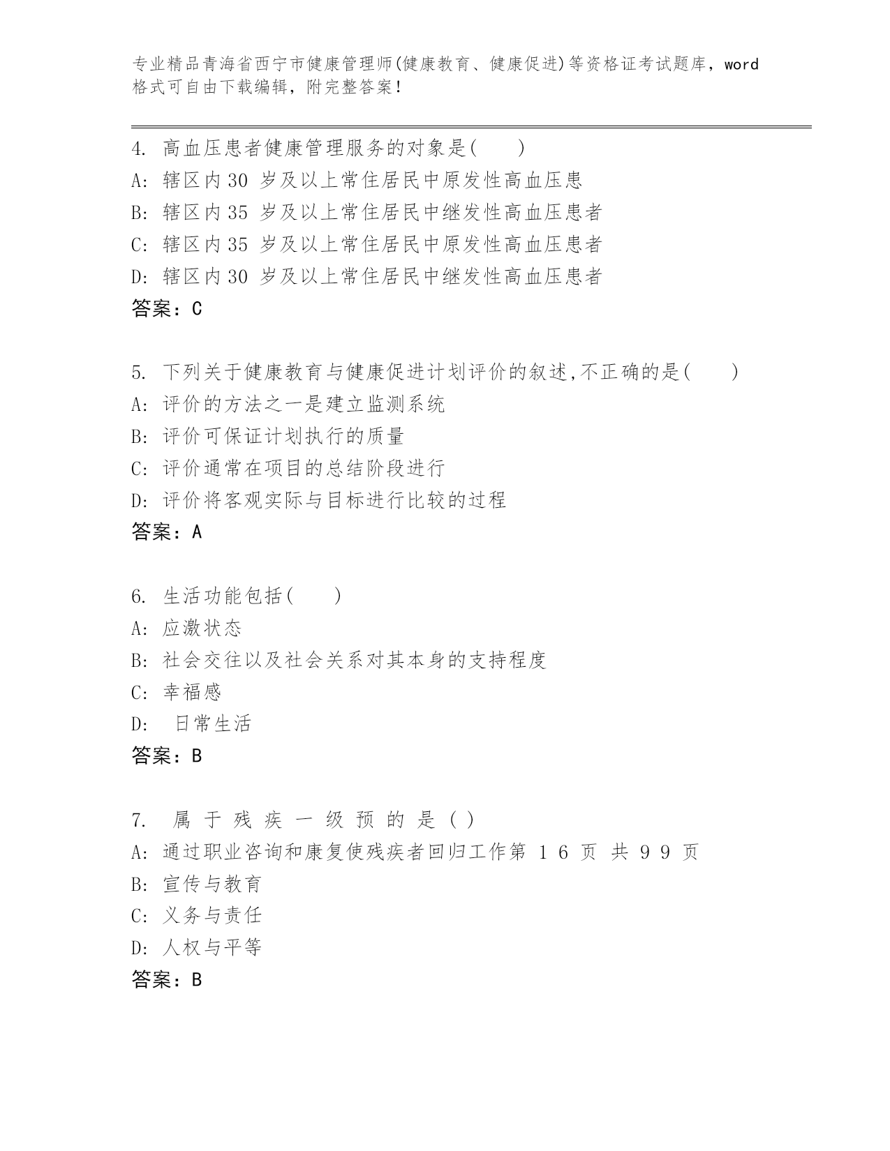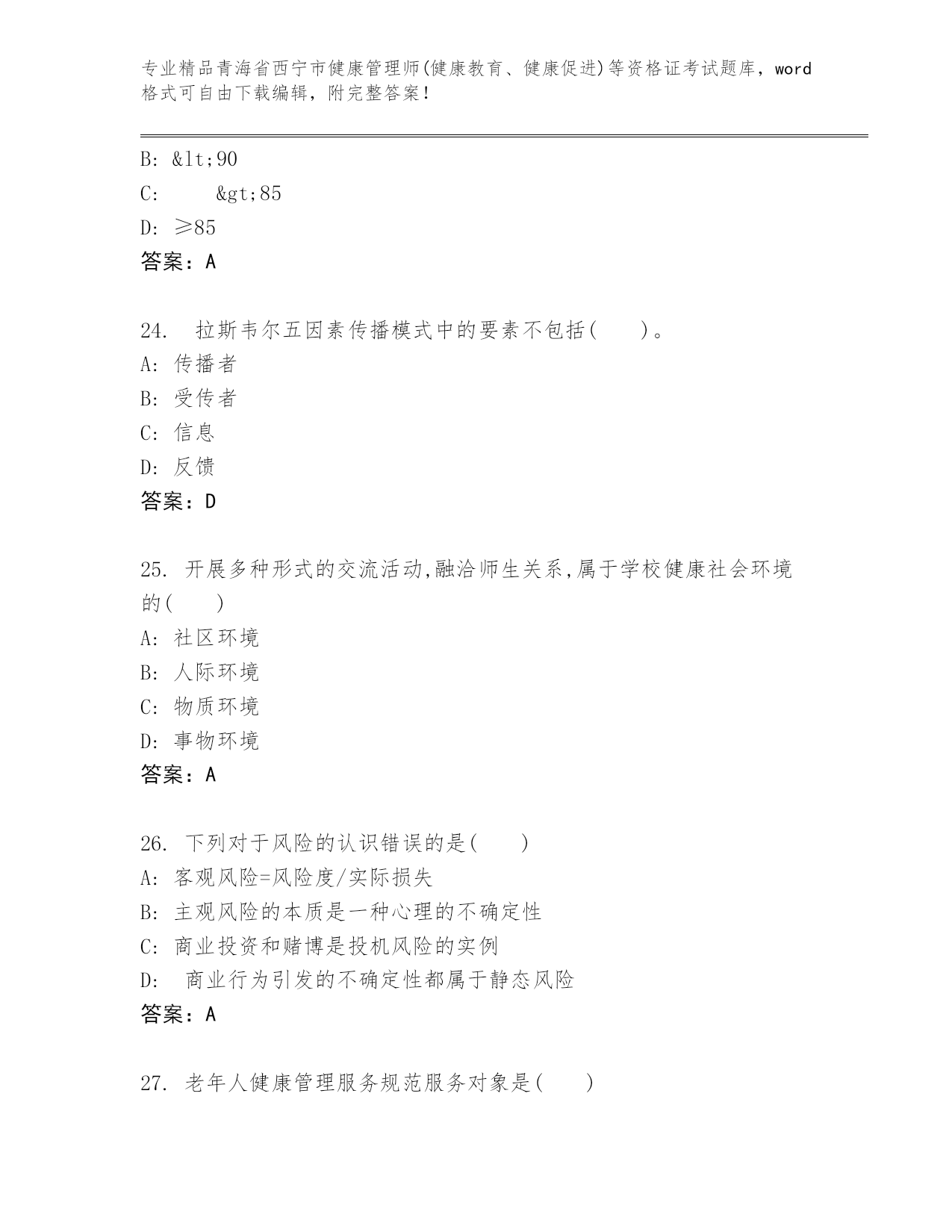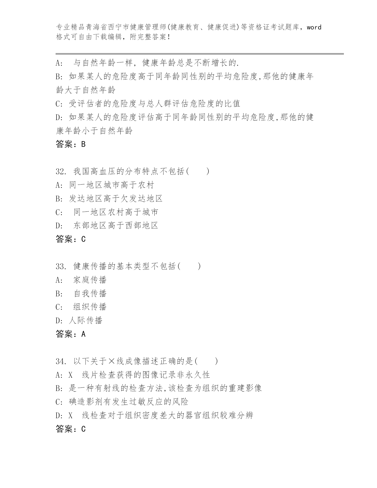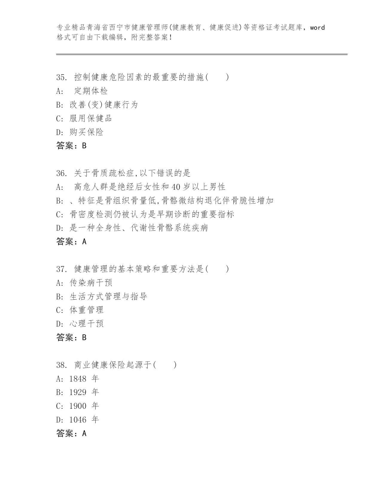 优选青海省西宁市健康管理师(健康教育、健康促进)等资格证考试带答案(基础题).docx