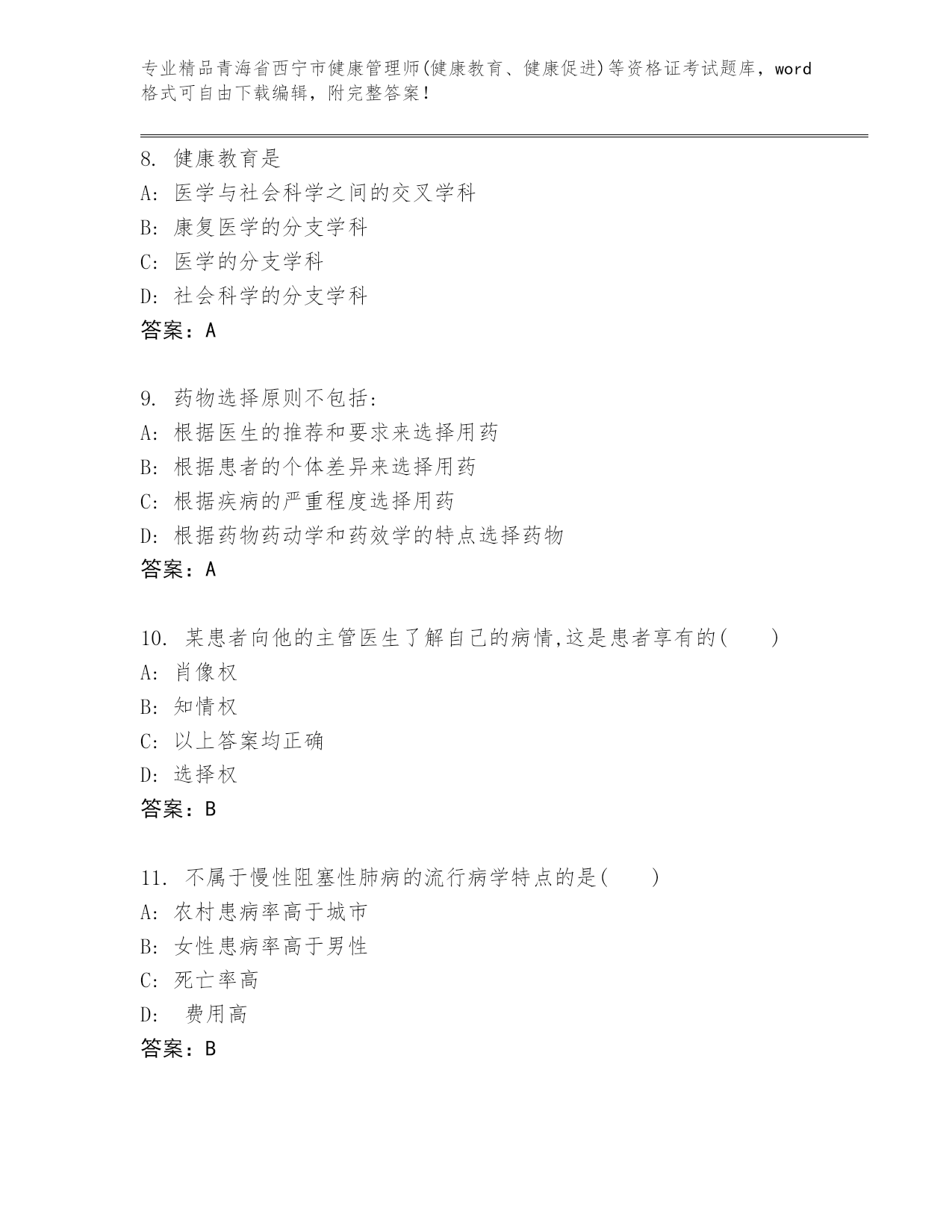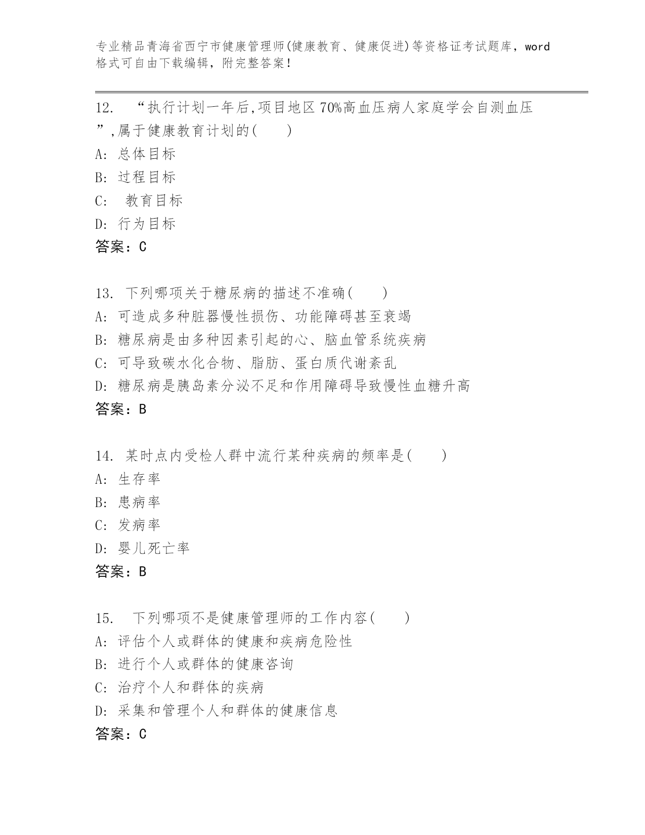 优选青海省西宁市健康管理师(健康教育、健康促进)等资格证考试带答案(基础题)