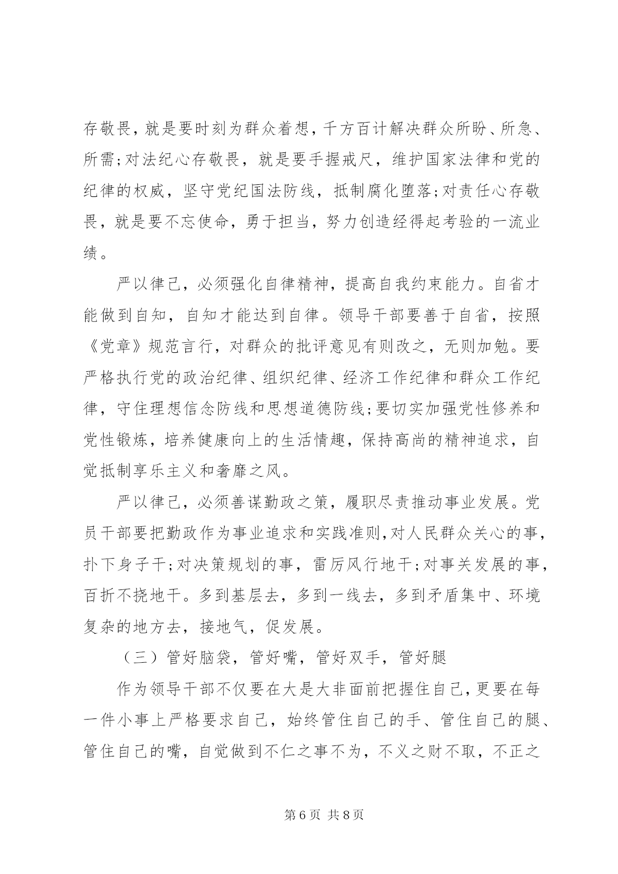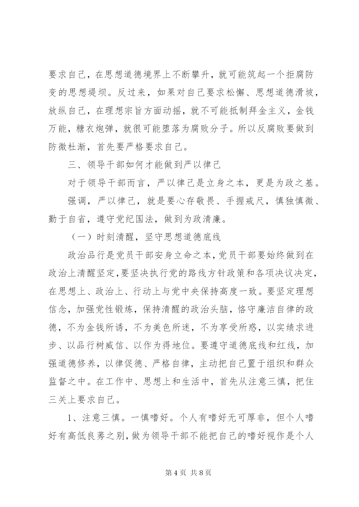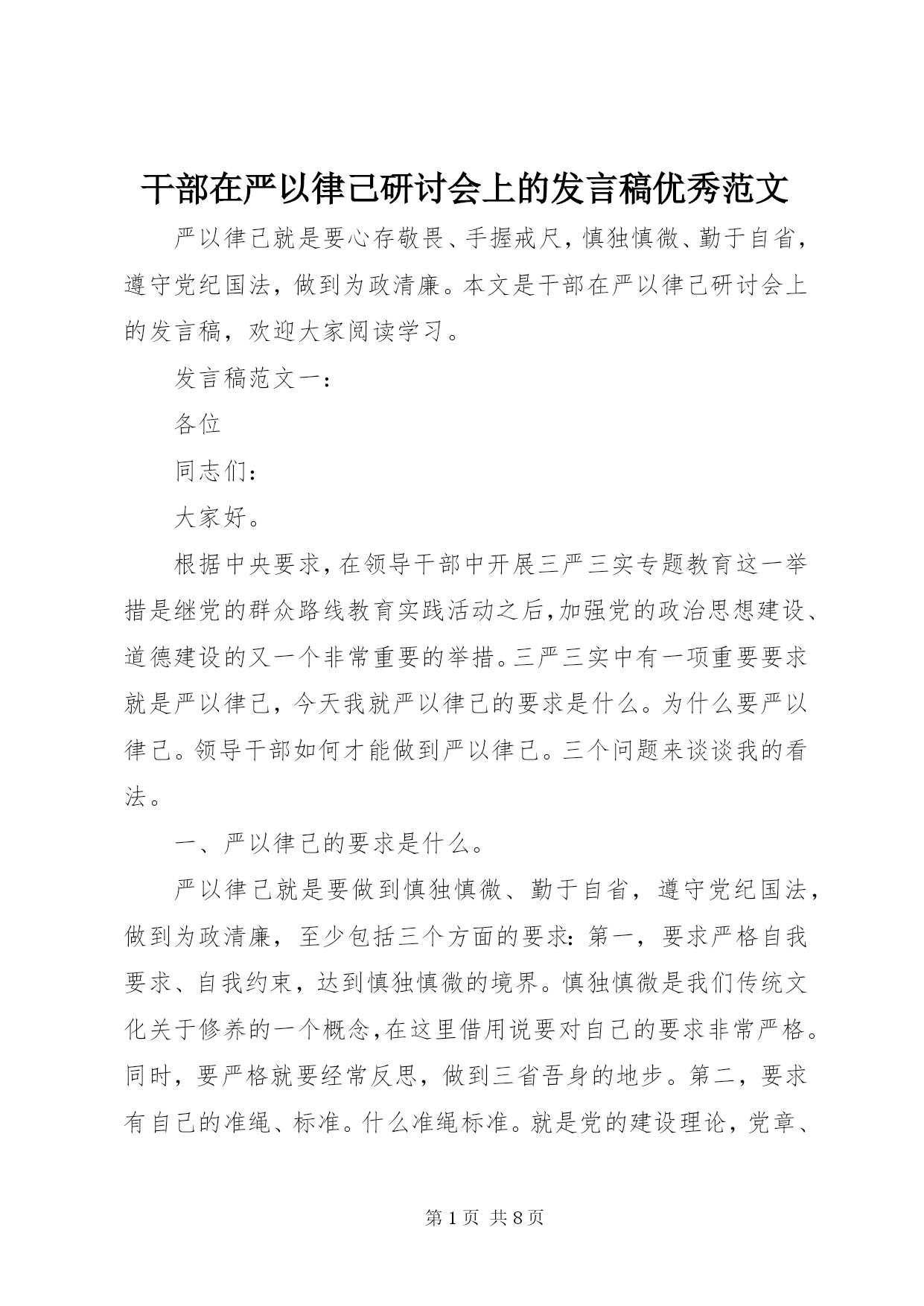 最新精编之干部在严以律己研讨会上的讲话稿优秀范文