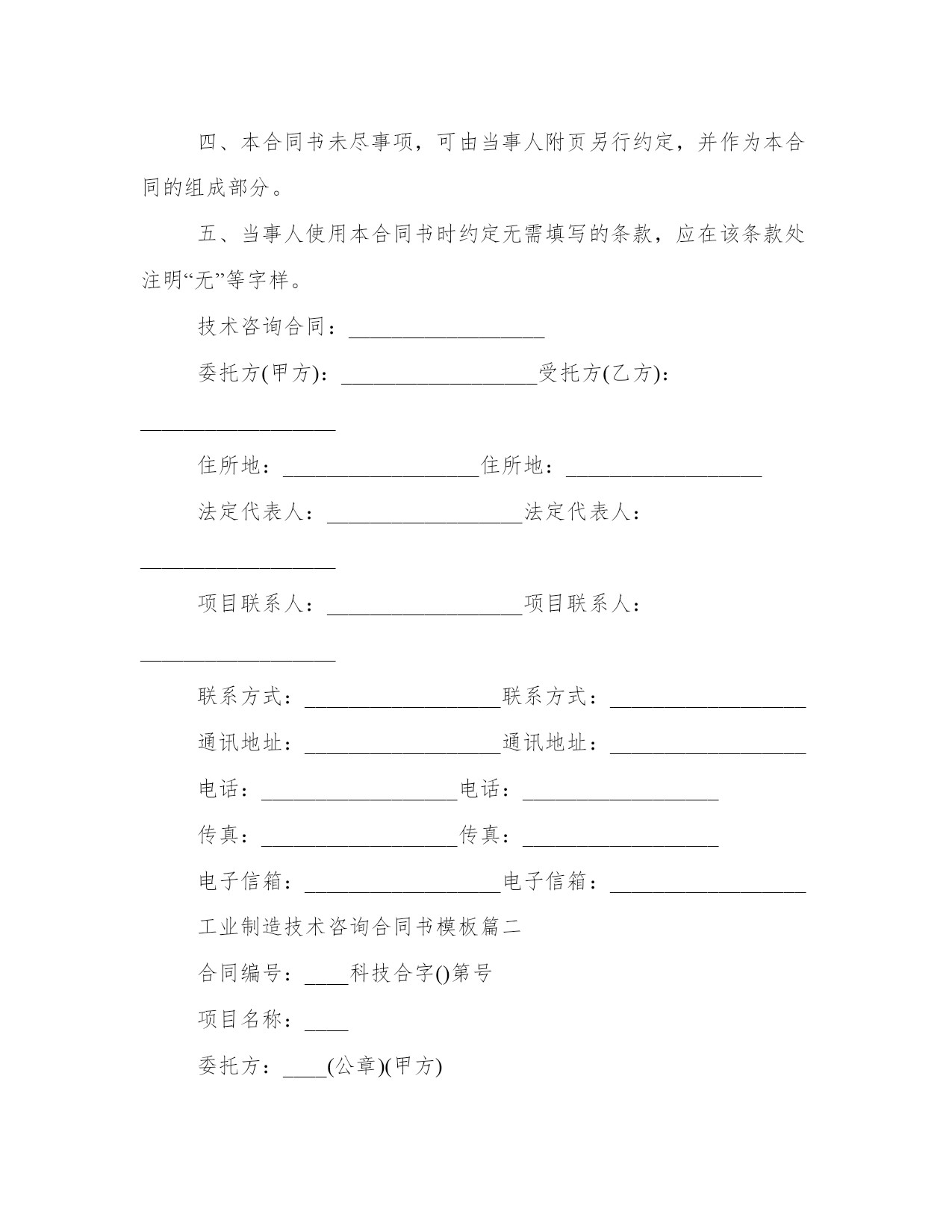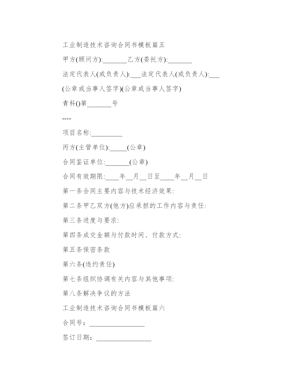 2024年工业制造技术咨询合同书模板(十二篇).docx