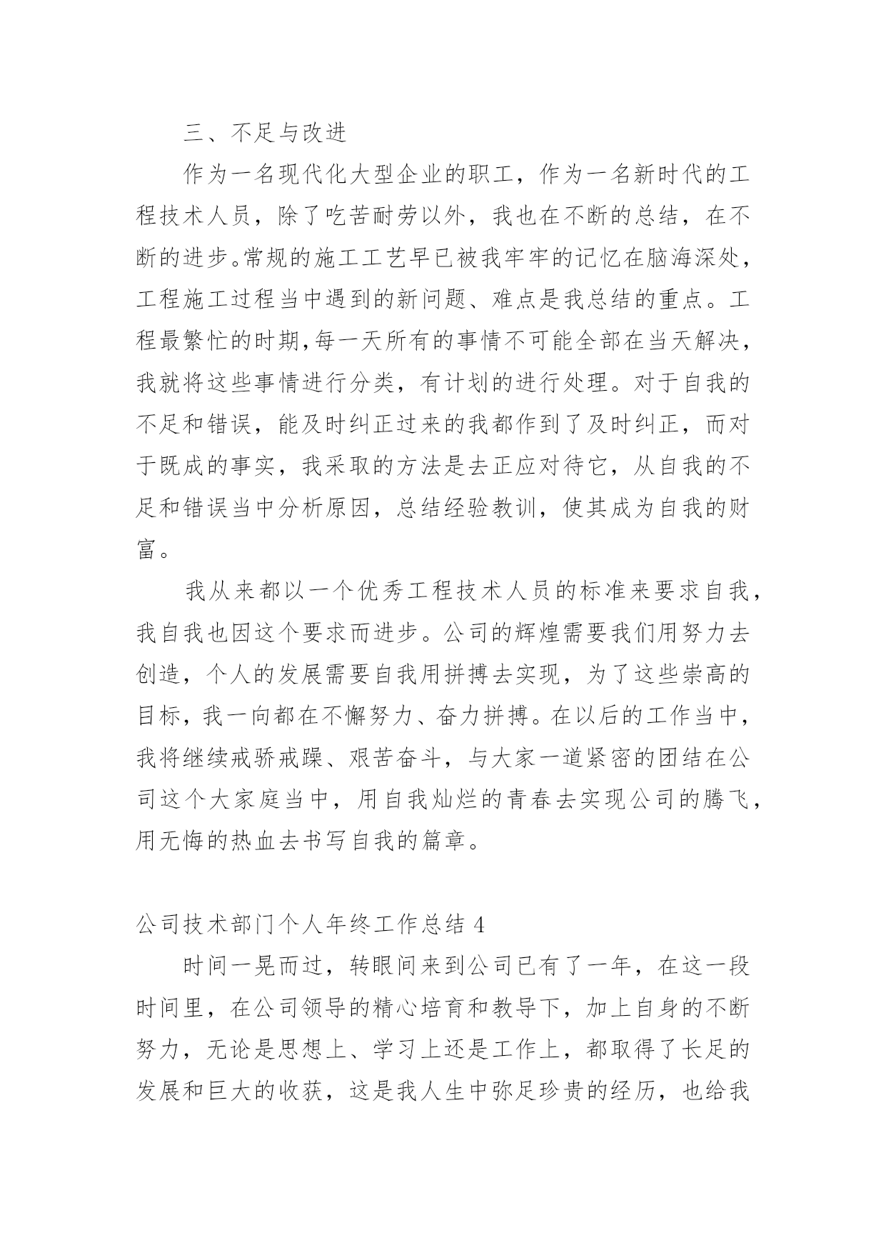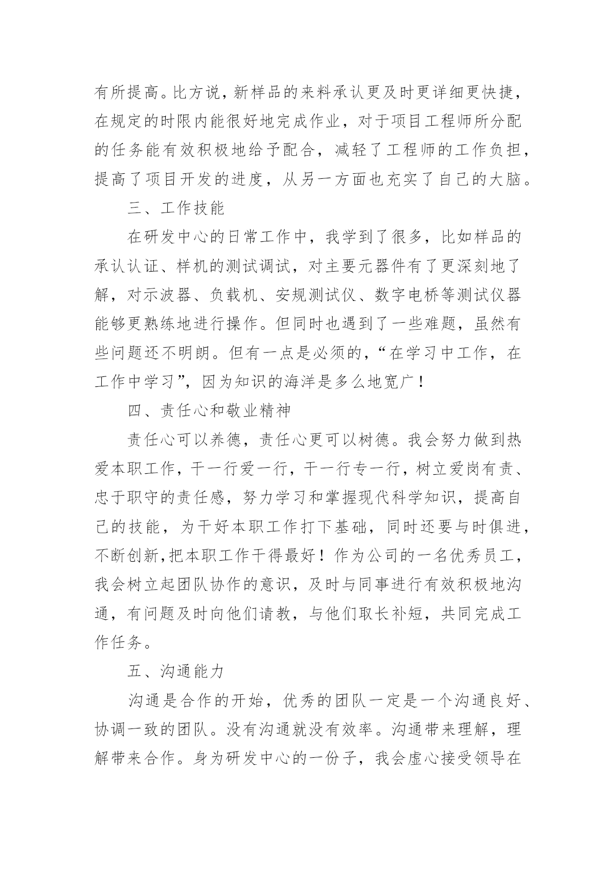公司技术部门个人年终工作总结总结在一个时期、一个年度、一个阶段对学习和工作生活等情况加以回顾和分析的一种书面材料,它可以给我们下一阶段的学习和工作生活做指导,为此我们要做好回顾,写好总结。总结怎么写才能发挥它的作用呢?以下是小编为大家整理的公司技术部门个人年终工作总结,欢迎阅读与收藏。公司技术部门个人年终工作总结1回顾这一年来的工作,我在公司领导及各位同事的支持和帮助下,严格要求自己,按照公司的要求,较好地完成了自己的本职工作。通过这一年来的学习与工作,工作模式上有了新的突破,工作方式有了较大的改变,现将这一年来的工作情况进行总结:一、工作量作为公司一名研发技术人员,我现在的本职工作是,对来料新品进行初步测试,主要元器件的样品承认,新机种样机的制作和测试以及测试报告的整理,有效积极地配合研发工程师的工作,对其项目资料进行交接和整理,对于样机测试过程中遇到的问题进行应对调试,指导新技术人员作业等。二、工作质量通过这一年的.锻炼,我现在可以很好地完成工作任务,严格遵守公司的规章制度、工作规范和流程,对客户的意见和建议也能够很好地考虑和分析,设计的样品质量也较以前有所提高。比方说,新样品的来料承认更及时更详细更快捷,在规定的时限内能很好地完成作业,对于项目工程师所分配的任务能有效积极地给予配合,减轻了工程师的工作负担,提高了项目开发的进度,从另一方面也充实了自己的大脑。三、工作技能在研发中心的日常工作中,我学到了很多,比如样品的承认认证、样机的测试调试,对主要元器件有了更深刻地了解,对示波器、负载机、安规测试仪、数字电桥等测试仪器能够更熟练地进行操作。但同时也遇到了一些难题,虽然有些问题还不明朗。但有一点是必须的,“在学习中工作,在工作中学习”,因为知识的海洋是多么地宽广!四、责任心和敬业精神责任心可以养德,责任心更可以树德。我会努力做到热爱本职工作,干一行爱一行,干一行专一行,树立爱岗有责、忠于职守的责任感,努力学习和掌握现代科学知识,提高自己的技能,为干好本职工作打下基础,同时还要与时俱进,不断创新,把本职工作干得最好!作为公司的一名优秀员工,我会树立起团队协作的意识,及时与同事进行有效积极地沟通,有问题及时向他们请教,与他们取长补短,共同完成工作任务。五、沟通能力沟通是合作的开始,优秀的团队一定是一个沟通良好、协调一致的团队。没有沟通就没有效率。沟通带来理解,理解带来合作。身为研发中心的一份子,我会虚心接受领导在工作上的指导和意见建议,及时与领导沟通,有问题及时向同事请教,积极地听取他们的意见和建议,不断努力学习,不断调高自己!当然,工作中有时也存在问题,相信在以后的工作中我会弥补这些不足,努力地提高我的专业技能,完善我的工作,为公司的发展尽自己的绵薄之力!公司技术部门个人年终工作总结2时间一晃而过,转眼间来到公司已有了一年,在这一段时间里,在公司领导的精心培育和教导下,加上自身的不断努力,无论是思想上、学习上还是工作上,都取得了长足的发展和巨大的收获,这是我人生中弥足珍贵的经历,也给我留下了精彩而美好的回忆。回顾这一年来的工作,我有很多的感想和体会。现总结如下一、思想方面刚加入公司,在公司领导和同事的指导下,使我在较短的时间内适应了公司的工作环境。在这一年的生活和工作中,我一直能够严格的要求自己,认真、细心且具有较强的责任心和进取心,富于工作热情与团队协作能力,确实完成领导交付的工作,和公司同事之间能够通力合作,关系相处融洽而和睦,一起配合成功地完成各项工作;积极学习新知识、技能,注重自身的发展和进步。领导的关爱与工作条件在不断改善给了我工作的动力;及其同事间的友情关怀与协作互助给了我工作的舒畅感和踏实感;更给了我工作的信心。二、工作不足当然,在平时的工作过程中,难免也会出现一些小差错;但前事之鉴,后事之师,这些经历也让我不断的成熟起来,在处理各种问题时考虑得更全面,杜绝类似失误的发生。处理问题的经验方面还要有待于提高;对工作的预见性和创造性还不够;专业知识方面掌握的还不够扎实等。在今后的工作和学习中,我会进一步的严格要求自己,虚心向领导、同事学习,我相信凭着自己高度的责任心和自信心,一定能够改正这些不足之处,争取在各方面取得更大的进步。同时我要特地感谢公司领导和同事们对我的`入职指引和帮助,感谢他们对我工作中出现的失误的提醒和指正。三、学习方面通过这一段时间来的学习、实践和对相关网络问题的处理,不管是测试方面还是处理网络问题和基站故障方面都取得了很大的进步,特别是基站故障处理和调整方面,与同事出去进行处理中,能够一起讨论一些相关性问题的处理方法,积累更多相关的经验;从中也了解和掌握了各种测试工具的使用及其出现故障进行处理的方法与技巧,领略更多的网络现象和对应的处理方法和技巧,根据不同的地理位置环境和当前网络的具体情况,