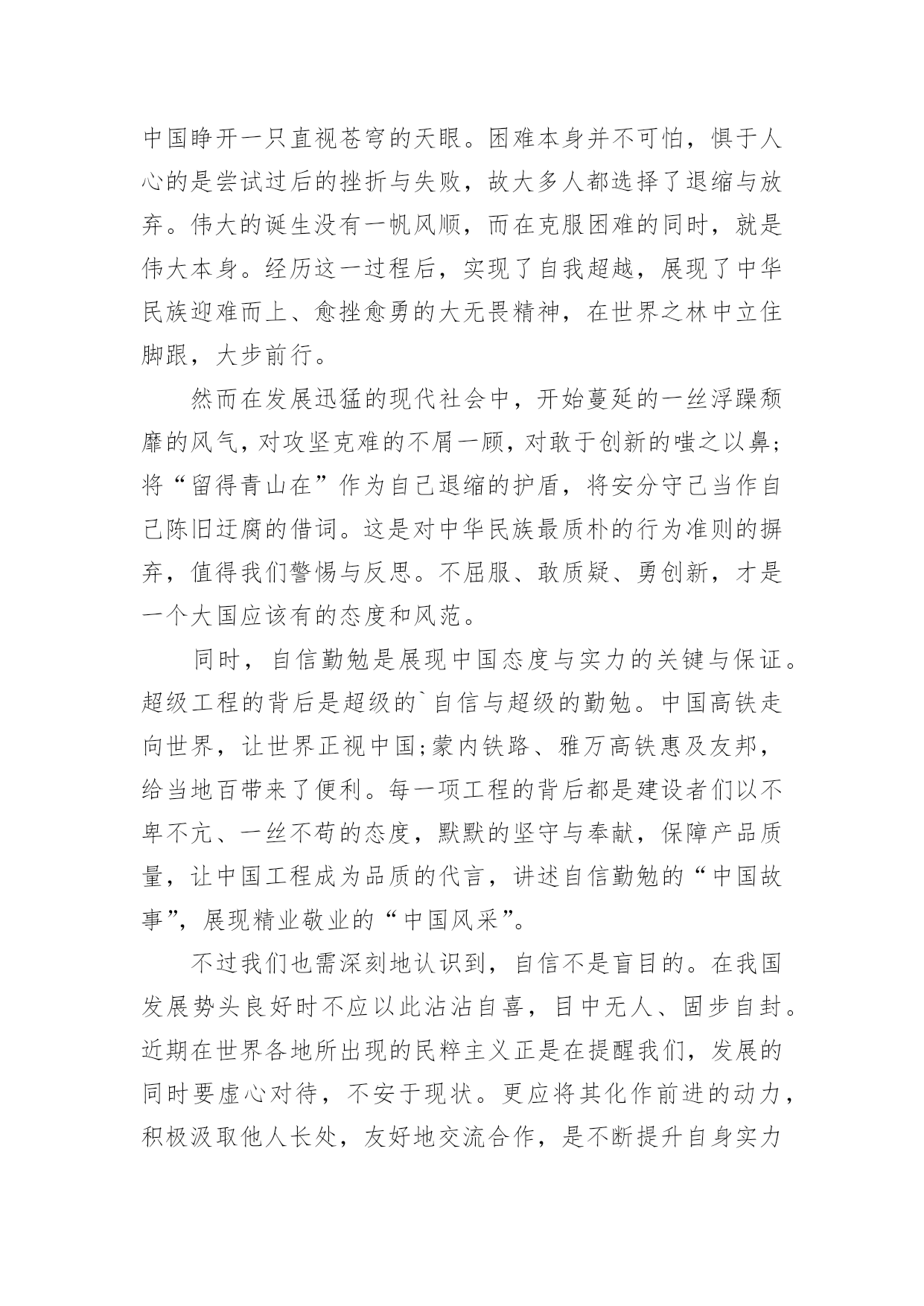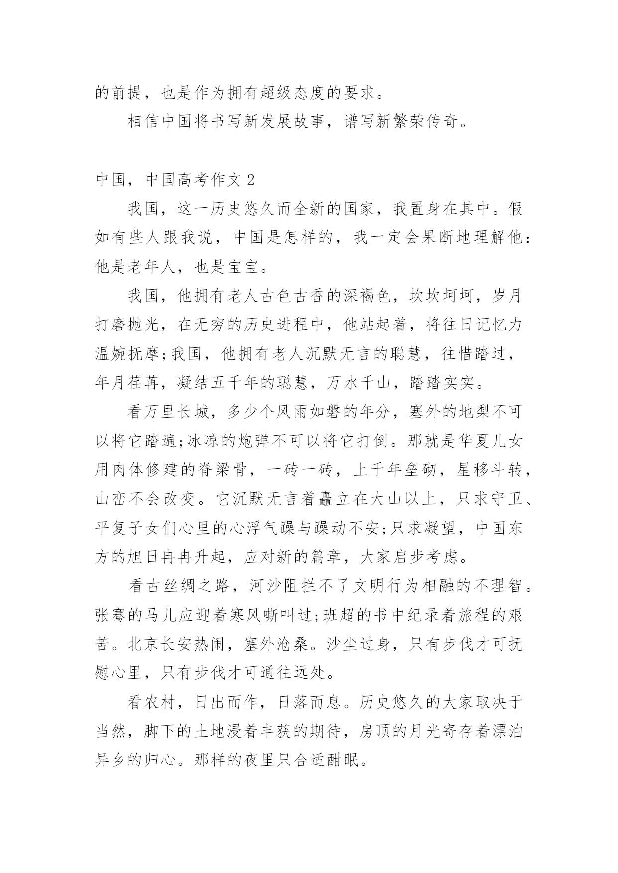 中国,中国高考作文在日常生活或是工作学习中,大家对作文都不陌生吧,借助作文可以提高我们的语言组织能力。一篇什么样的作文才能称之为优秀作文呢?下面是小编为大家整理的中国,中国高考作文,供大家参考借鉴,希望可以帮助到有需要的朋友。中国,中国高考作文1近年来,我国取得的一项项成就与创下的每一奇迹,无不让国民自豪、世界聚焦,共同展现出中国的态度与实力。勇挑重担,敢于攻关,是展现中国态度与实力的基石。自古以来,中华民族都有以天下为己任的美好传统。“天下兴亡,匹夫有责。”“天降大任于是人也”都在时刻告诫我们要心系家国,勇担重任。港珠澳大桥的建造,面对前无古人后无来者的施工地点及难度,面对国外许多的质疑与嘲讽声,林鸣及其团队用不屈的态度与顽强的信念,承担起这项艰巨的任务,实现一个个世界级的突破,让华夏蛟龙腾跃于大洋之上。向世人表明了中国的超级态度,证明了中国的超级实力。不畏艰难、不断创新,是展现中国态度与实力的阶梯。“天眼之父”南仁东倾尽所有,二十二载,将青丝熬成白发,将面容砺出沟壑,怀着对祖国的热爱以及对科学孜孜不倦的追求,在无数艰险与难题中,排除万难、敢于创新,最终让中国睁开一只直视苍穹的天眼。困难本身并不可怕,惧于人心的是尝试过后的挫折与失败,故大多人都选择了退缩与放弃。伟大的诞生没有一帆风顺,而在克服困难的同时,就是伟大本身。经历这一过程后,实现了自我超越,展现了中华民族迎难而上、愈挫愈勇的大无畏精神,在世界之林中立住脚跟,大步前行。然而在发展迅猛的现代社会中,开始蔓延的一丝浮躁颓靡的风气,对攻坚克难的不屑一顾,对敢于创新的嗤之以鼻;将“留得青山在”作为自己退缩的护盾,将安分守己当作自己陈旧迂腐的借词。这是对中华民族最质朴的行为准则的摒弃,值得我们警惕与反思。不屈服、敢质疑、勇创新,才是一个大国应该有的态度和风范。同时,自信勤勉是展现中国态度与实力的关键与保证。超级工程的背后是超级的`自信与超级的勤勉。中国高铁走向世界,让世界正视中国;蒙内铁路、雅万高铁惠及友邦,给当地百带来了便利。每一项工程的背后都是建设者们以不卑不亢、一丝不苟的态度,默默的坚守与奉献,保障产品质量,让中国工程成为品质的代言,讲述自信勤勉的“中国故事”,展现精业敬业的“中国风采”。不过我们也需深刻地认识到,自信不是盲目的。在我国发展势头良好时不应以此沾沾自喜,目中无人、固步自封。近期在世界各地所出现的民粹主义正是在提醒我们,发展的同时要虚心对待,不安于现状。更应将其化作前进的动力,积极汲取他人长处,友好地交流合作,是不断提升自身实力的前提,也是作为拥有超级态度的要求。相信中国将书写新发展故事,谱写新繁荣传奇。中国,中国高考作文2我国,这一历史悠久而全新的国家,我置身在其中。假如有些人跟我说,中国是怎样的,我一定会果断地理解他:他是老年人,也是宝宝。我国,他拥有老人古色古香的深褐色,坎坎坷坷,岁月打磨抛光,在无穷的历史进程中,他站起着,将往日记忆力温婉抚摩;我国,他拥有老人沉默无言的聪慧,往惜踏过,年月荏苒,凝结五千年的聪慧,万水千山,踏踏实实。看万里长城,多少个风雨如磐的年分,塞外的地梨不可以将它踏遍;冰凉的炮弹不可以将它打倒。那就是华夏儿女用肉体修建的脊梁骨,一砖一砖,上千年垒砌,星移斗转,山峦不会改变。它沉默无言着矗立在大山以上,只求守卫、平复子女们心里的心浮气躁与躁动不安;只求凝望,中国东方的旭日冉冉升起,应对新的篇章,大家启步考虑。看古丝绸之路,河沙阻拦不了文明行为相融的不理智。张骞的马儿应迎着寒风嘶叫过;班超的书中纪录着旅程的艰苦。北京长安热闹,塞外沧桑。沙尘过身,只有步伐才可抚慰心里,只有步伐才可通往远处。看农村,日出而作,日落而息。历史悠久的大家取决于当然,脚下的土地浸着丰获的期待,房顶的月光寄存着漂泊异乡的归心。那样的夜里只合适酣眠。当老人转过身,我国,他拥有宝宝的激情,时期恰好,变化众多,只有不断探寻、试着、提升,才可以维持生长发育繁盛的魅力。万里长城的烽火狼烟已随风吹雨打散去,现如今,仅有大雁掠过山上,仅有历史时间刻写在我们心里。正由于踏过艰辛之途,大家更为搞清楚友谊之宝贵,大家也更为高兴地说:我爱我的祖国。全球相连,沉寂了近百年的古丝绸之路再焕活力。发展前途依然不明,但宝宝的质量即取决于探寻,及其以诚相待。火车替代了马儿,互联网技术替代了文本,但无论以哪种状态,全球的中国东方与西方国家都是在召唤一个互利共赢的时期。思乡之情情丝,在工业文明时期好像一直敏感的。当摩天大厦冉冉升起,月光不会再浸着古砖上的绿苔,潮湿的农田变为硬实的混凝土,大家感慨,二者不能相溶吗?当然可以。历史悠久的季节依然存有,大家竖着一个一个的节令,春络绎不绝,看街巷烧开,大家依然在历史悠久的农田上辛勤耕耘、获得,以年青的容颜融进这世界。我国,这一历史悠久而全新的我国,我置