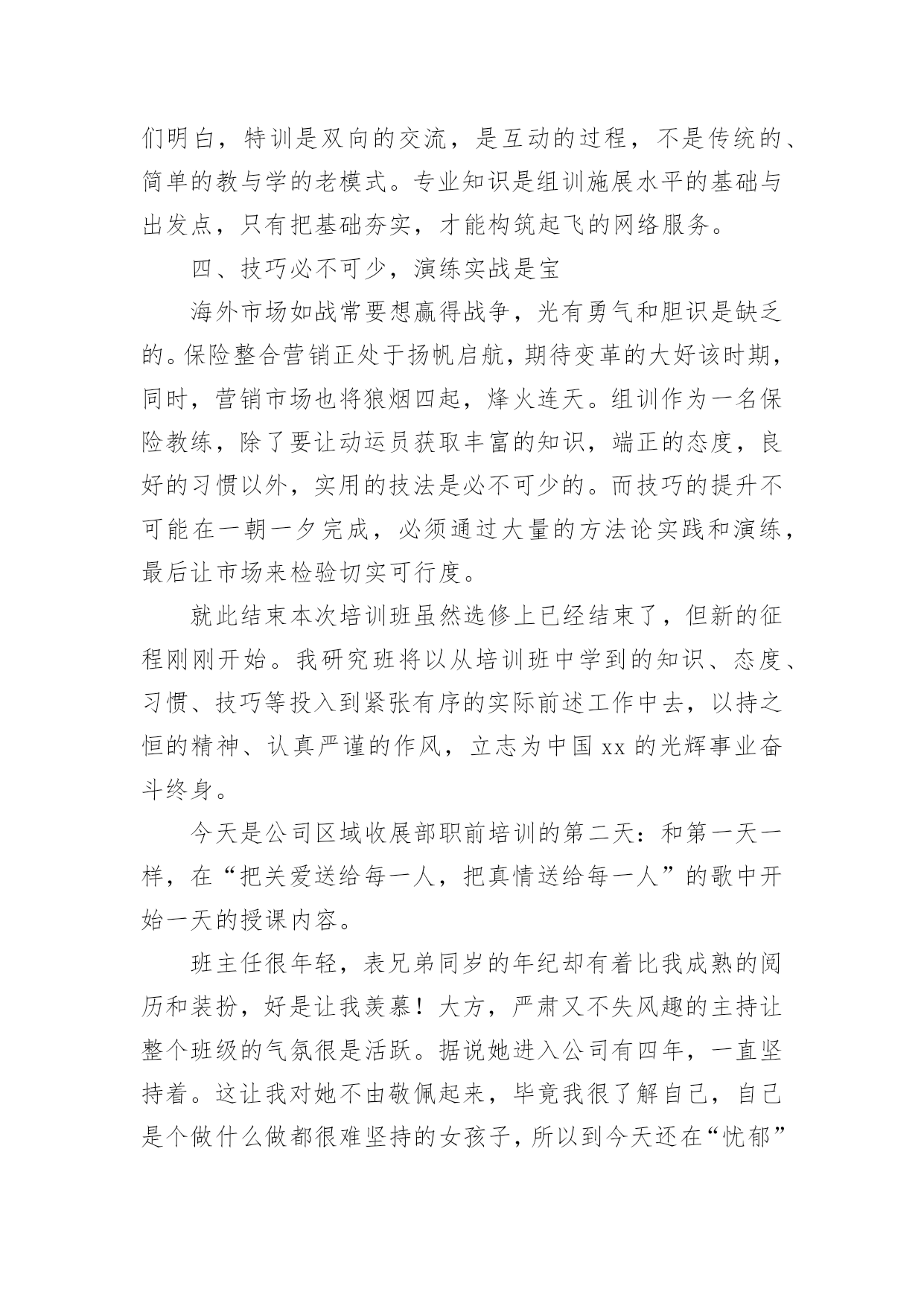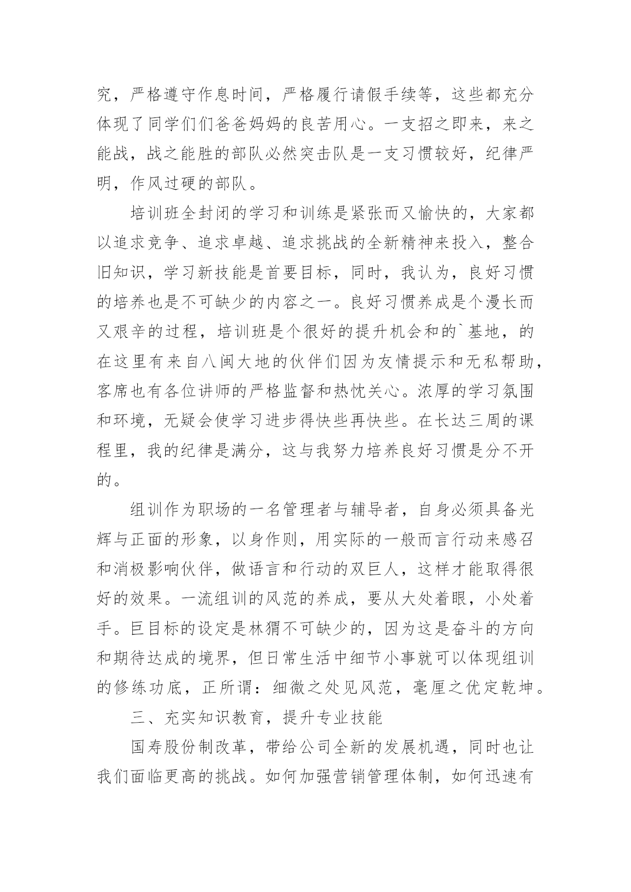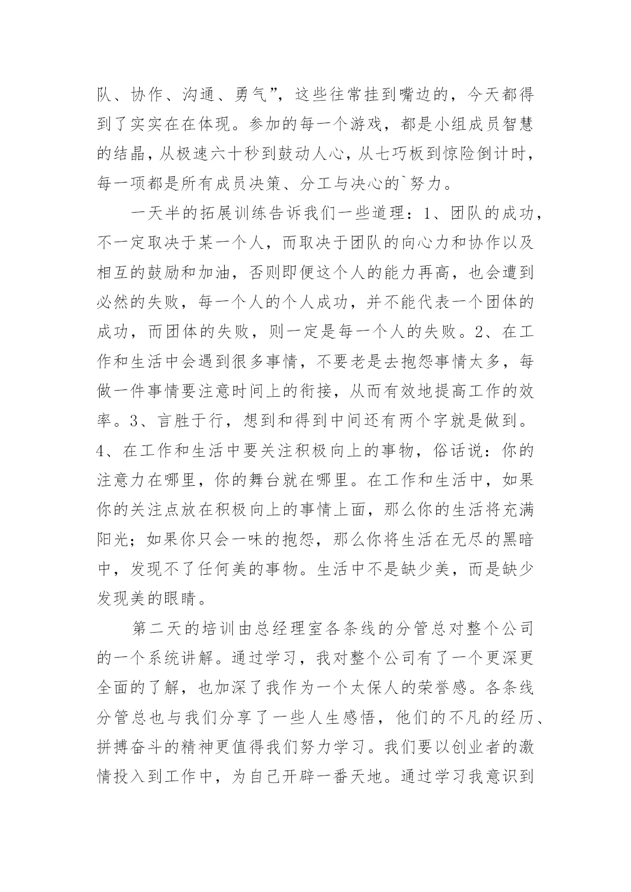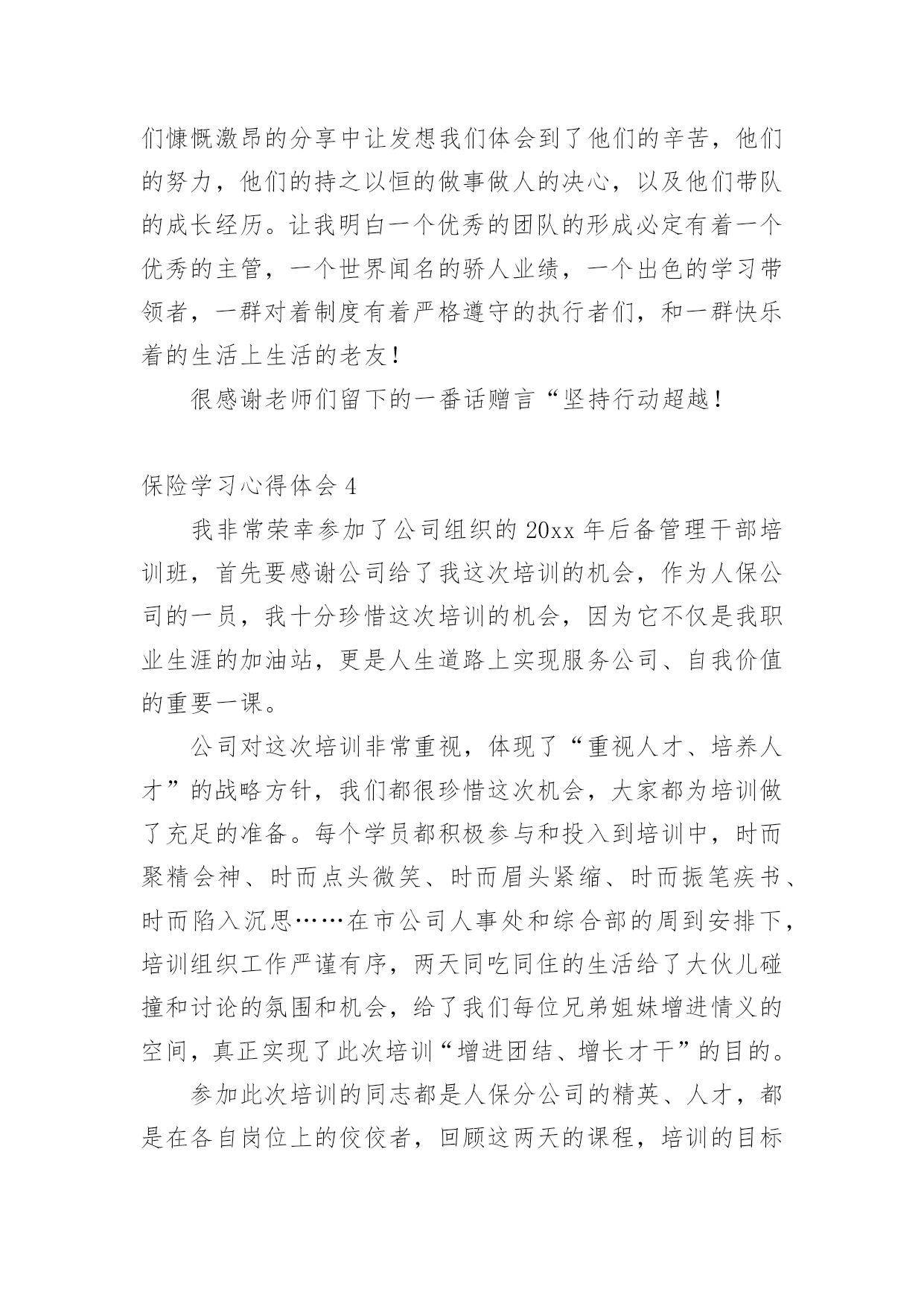 保险学习心得体会(必备)保险学习心得体会当我们对人生或者事物有了新的思考时,可以寻思将其写进心得体会中,如此就可以提升我们写作能力了。应该怎么写才合适呢?以下是小编帮大家整理的保险学习心得体会,供大家参考借鉴,希望可以帮助到有需要的朋友。保险学习心得体会1我很高兴能与大家分享我最近参加的保险培训的一些核心收获和感悟。这次的培训由我所在的公司组织,为期两周,地点在我们的总部。培训的主要目标是帮助我们更好地理解保险行业的最新动态,提升我们的专业技能,以及强化我们的服务理念。这次培训的内容涵盖了保险行业的各个方面,包括保险产品的设计、销售策略、风险评估,以及客户服务。我们通过讲座、小组讨论和实战演练等多种方式进行学习。讲座由公司的高级领导和行业专家主讲,他们深入浅出的讲解让我们对保险行业有了更深入的理解。小组讨论则让我们有机会分享自己的经验和观点,也使我们了解到其他团队的工作方式。实战演练则帮助我们在实际情况下应用我们所学的知识。在这次培训中,我最大的收获是对保险产品的设计和销售策略有了更深入的理解。同时,我也意识到了在保险行业中,良好的客户服务的重要性。此外,我也学到了如何更有效地进行风险评估。我认为这些收获将会对我未来的工作产生积极影响。在这次培训中,我也发现了一些需要改进的地方。例如,我对保险产品的理解还不够深入,需要进一步学习和研究。同时,我也需要提高我的`风险评估技能,以便更好地为客户提供服务。总的来说,这次保险培训对我来说是一次宝贵的学习经历。我对保险行业的理解得到了提升,也对未来的工作有了更清晰的规划。我深深地感受到了学习和成长的重要性,也明白了作为一名保险从业人员,我们需要不断提升自己,以满足客户的需求。我希望在未来的工作中,我能将所学应用到实际工作中,为我们的客户提供更好的服务。保险学习心得体会2时间急转流逝,从我成为xx保险公司大家族的一员到现在已经x个月了,作为一名四级机构的综合内勤,自己对一些专业性的知识和技能了解还不是很透彻,所以工作中遇到了不少问题。20xx年xx月xx日我有幸参加了xx保险股份有限公司xx分公司“启航五期“后援条线内勤培训班的学习。通过四天的培训,我对xx有了更进一步的了解,对自己的岗位职责也有了更清晰的认识。培训的第一天我们很有幸参加到人众人的素质拓展训练,虽然身体力行都感到疲惫,但却充满收获的喜悦,“团队、协作、沟通、勇气”,这些往常挂到嘴边的,今天都得到了实实在在体现。参加的每一个游戏,都是小组成员智慧的结晶,从极速六十秒到鼓动人心,从七巧板到惊险倒计时,每一项都是所有成员决策、分工与决心的`努力。一天半的拓展训练告诉我们一些道理:1、团队的成功,不一定取决于某一个人,而取决于团队的向心力和协作以及相互的鼓励和加油,否则即便这个人的能力再高,也会遭到必然的失败,每一个人的个人成功,并不能代表一个团体的成功,而团体的失败,则一定是每一个人的失败。2、在工作和生活中会遇到很多事情,不要老是去抱怨事情太多,每做一件事情要注意时间上的衔接,从而有效地提高工作的效率。3、言胜于行,想到和得到中间还有两个字就是做到。4、在工作和生活中要关注积极向上的事物,俗话说:你的注意力在哪里,你的舞台就在哪里。在工作和生活中,如果你的关注点放在积极向上的事情上面,那么你的生活将充满阳光;如果你只会一味的抱怨,那么你将生活在无尽的黑暗中,发现不了任何美的事物。生活中不是缺少美,而是缺少发现美的眼睛。第二天的培训由总经理室各条线的分管总对整个公司的一个系统讲解。通过学习,我对整个公司有了一个更深更全面的了解,也加深了我作为一个太保人的荣誉感。各条线分管总也与我们分享了一些人生感悟,他们的不凡的经历、拼搏奋斗的精神更值得我们努力学习。我们要以创业者的激情投入到工作中,为自己开辟一番天地。通过学习我意识到自己在工作中沟通不到位,人与人之间的沟通是很重要的,在工作中更是这样。同事之间要沟通、上下级之间也要沟通,许多工作沟通到位的话会变得相当简单。保险学习心得体会3怀着空杯的心态和期待的心情,我有幸参加了中国xx保险股份股份有限公司福建省分公司第4期组训培训班。通过20余天的积极参与和全心投入,我在对寿险的知识、态度、技巧和习惯等各个方面都取得了长足的进步和可喜的成绩,这一切的取得,与党政的帮助和指导是分不开的,如果没有领导的关心,我就没有名企机会参加这样国际级、高规格、超强度、超极限的提升班。在此领导向领导的关怀指出衷心的感谢!一、态度决定一切,理念产生力量第4期组训班有两条醒目的精神标语:一条是——寿险是人才的事业,金融人才是教育的事业,教育工作是培训的事业;另一条是——我为寿险而来,我为成功而来,我为理想而来。从培训班一开始我就把它们当做我的座右铭,时刻牢记在心,把首先起跑端正态度作为成功与收获的起步。米卢