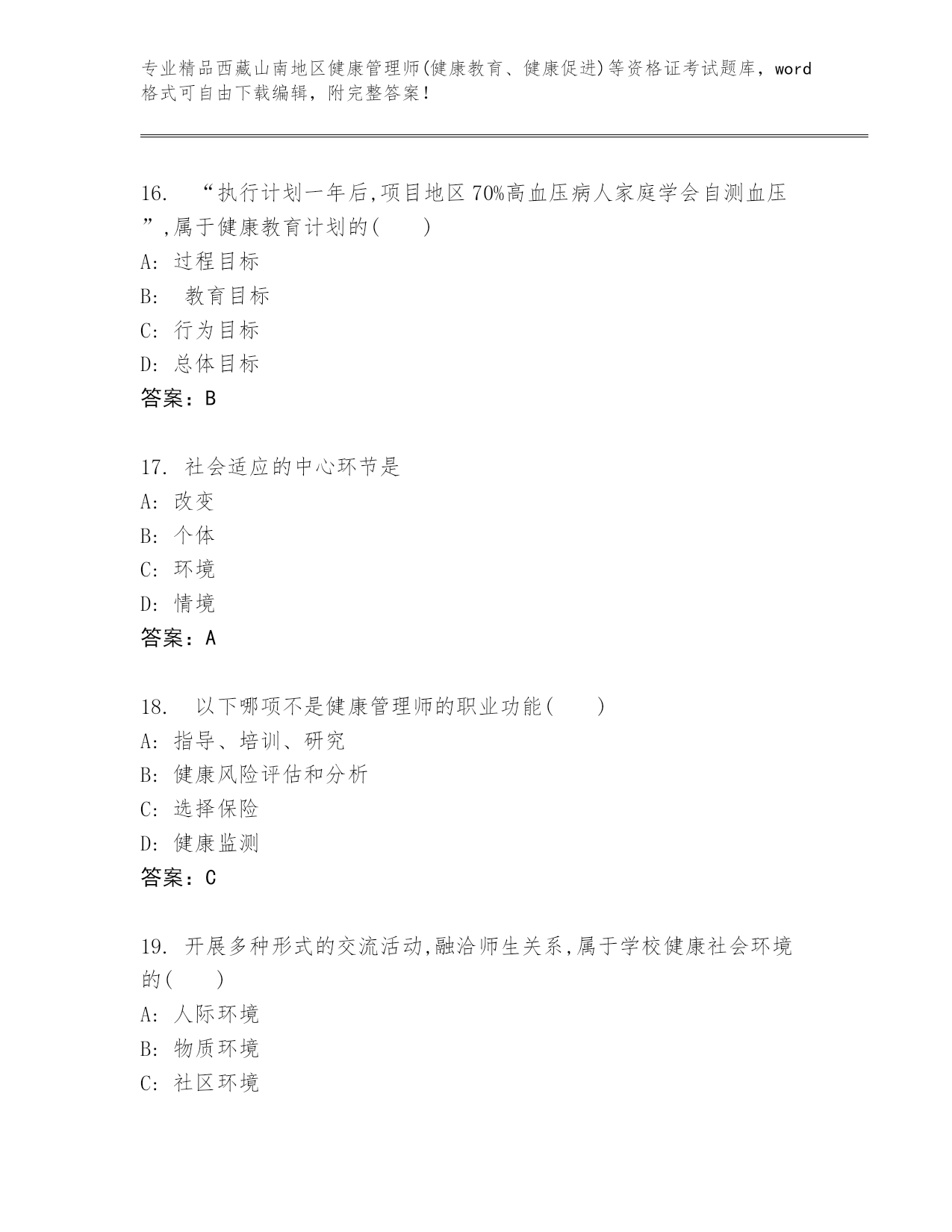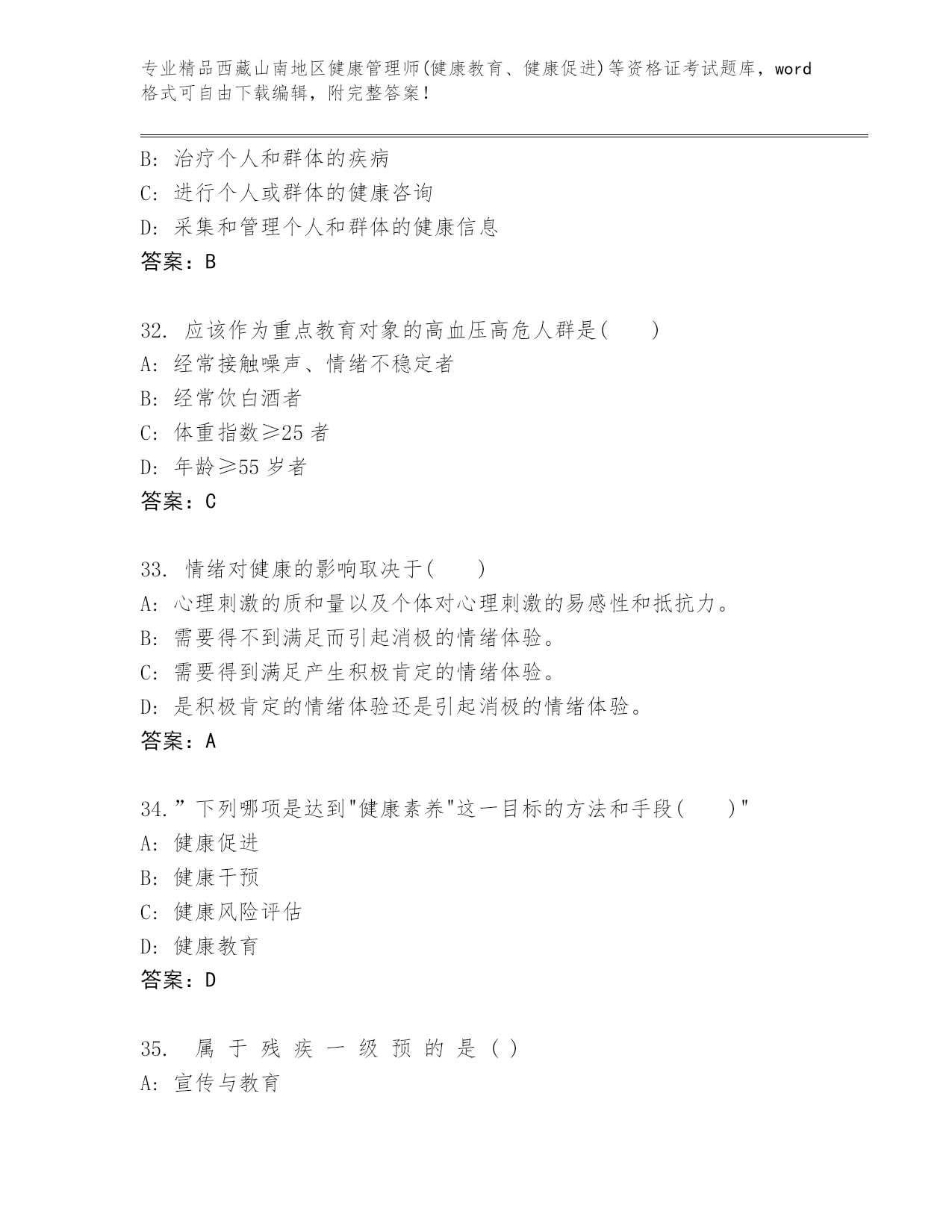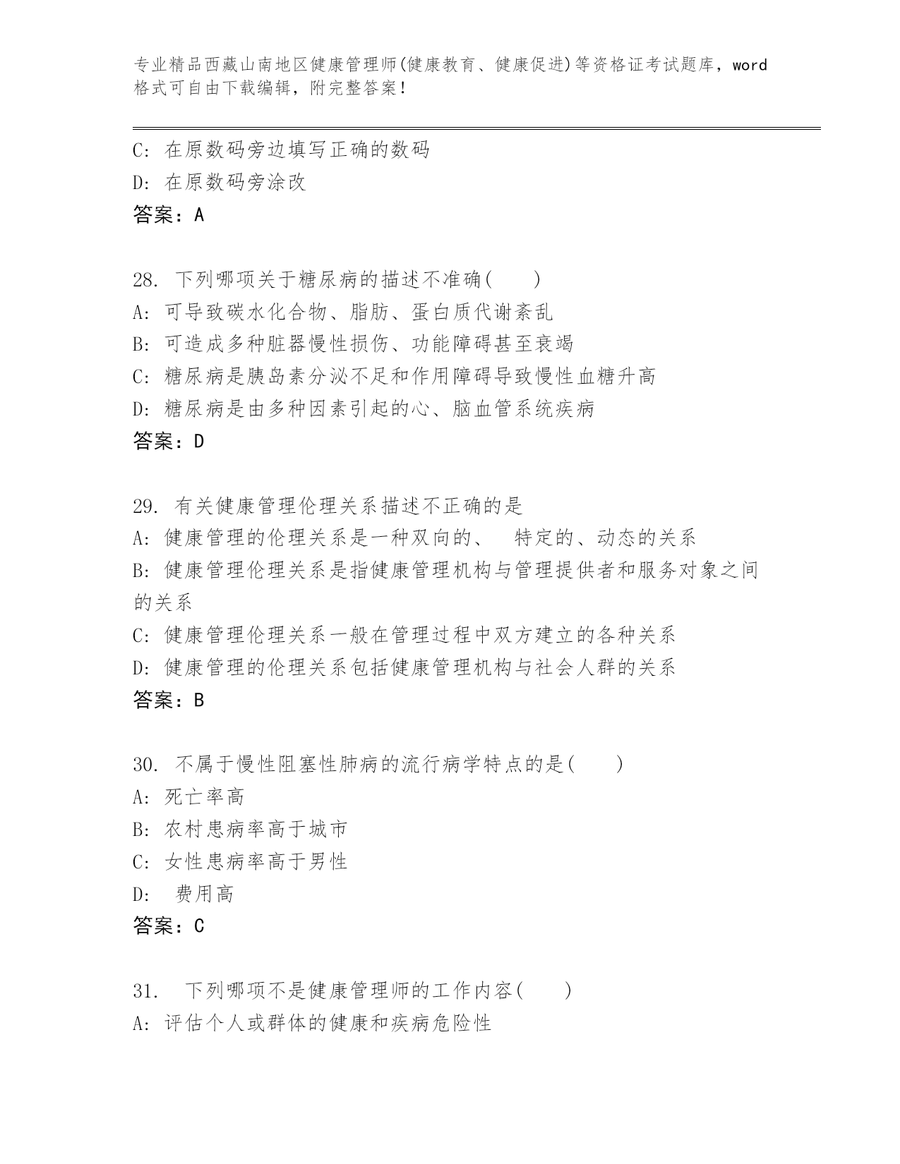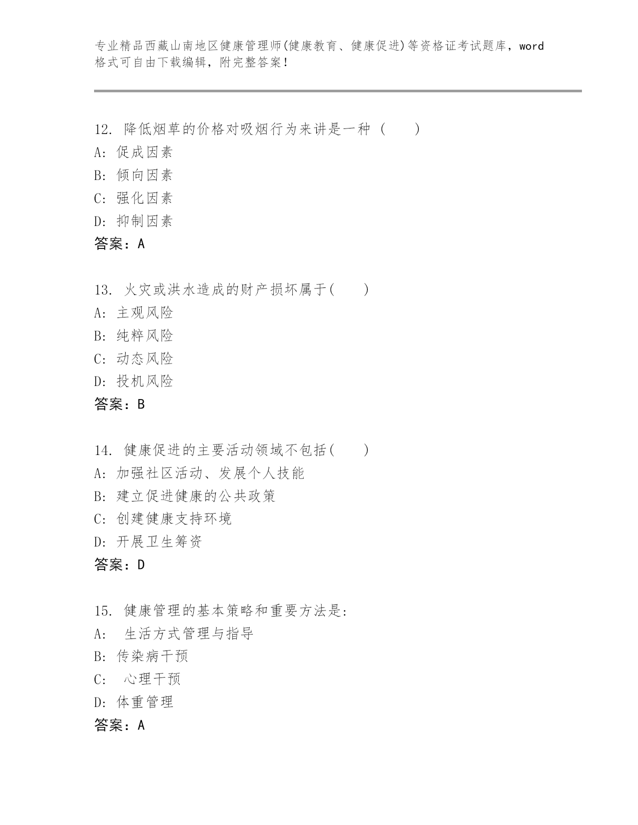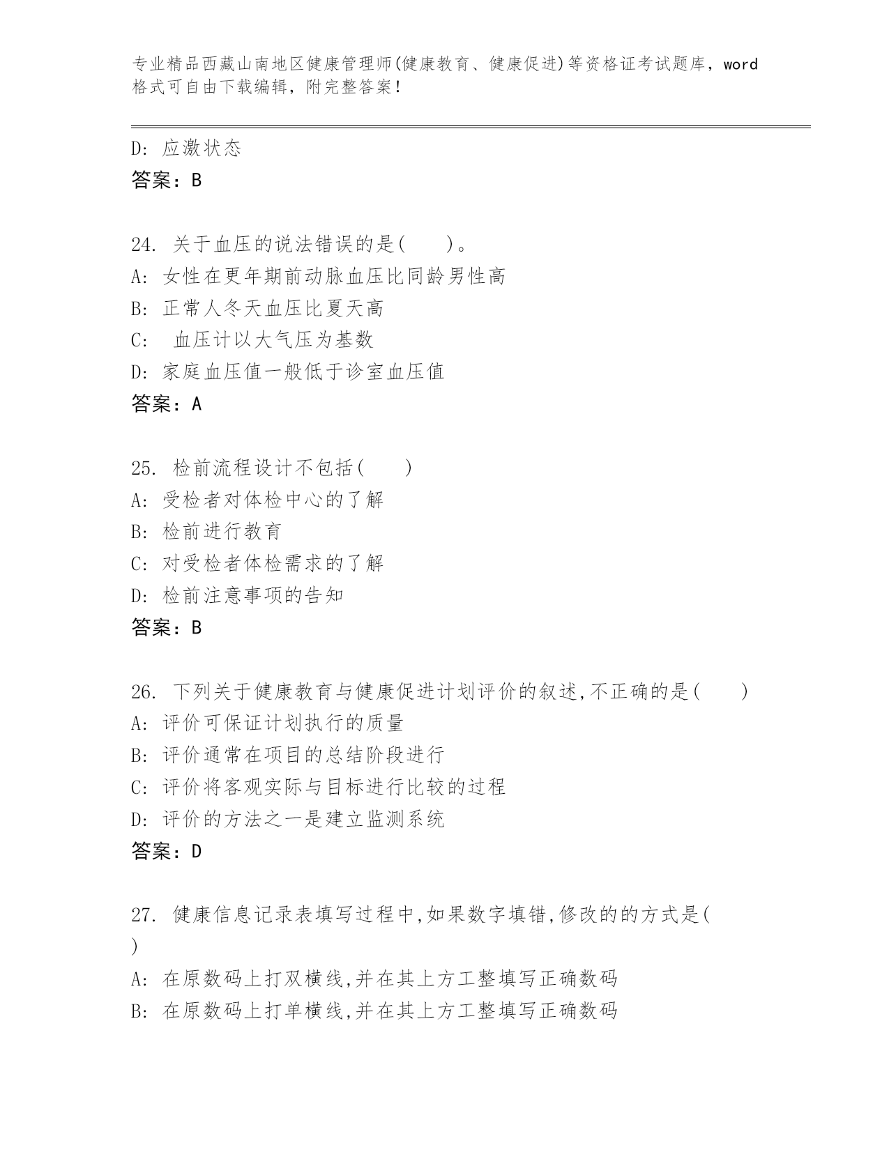 优选西藏山南地区健康管理师(健康教育、健康促进)等资格证考试王牌题库精品(各地真题)