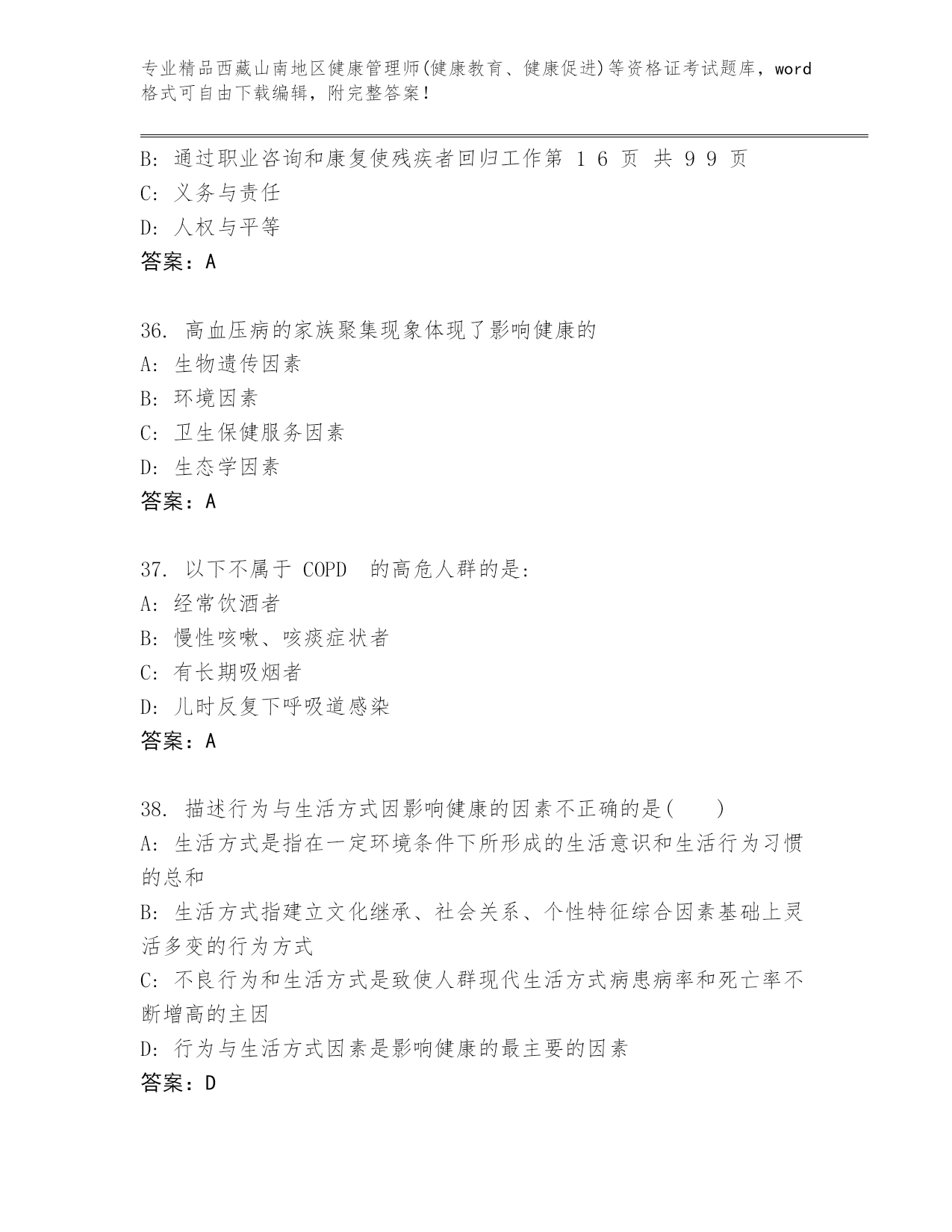 优选西藏山南地区健康管理师(健康教育、健康促进)等资格证考试王牌题库精品(各地真题).docx