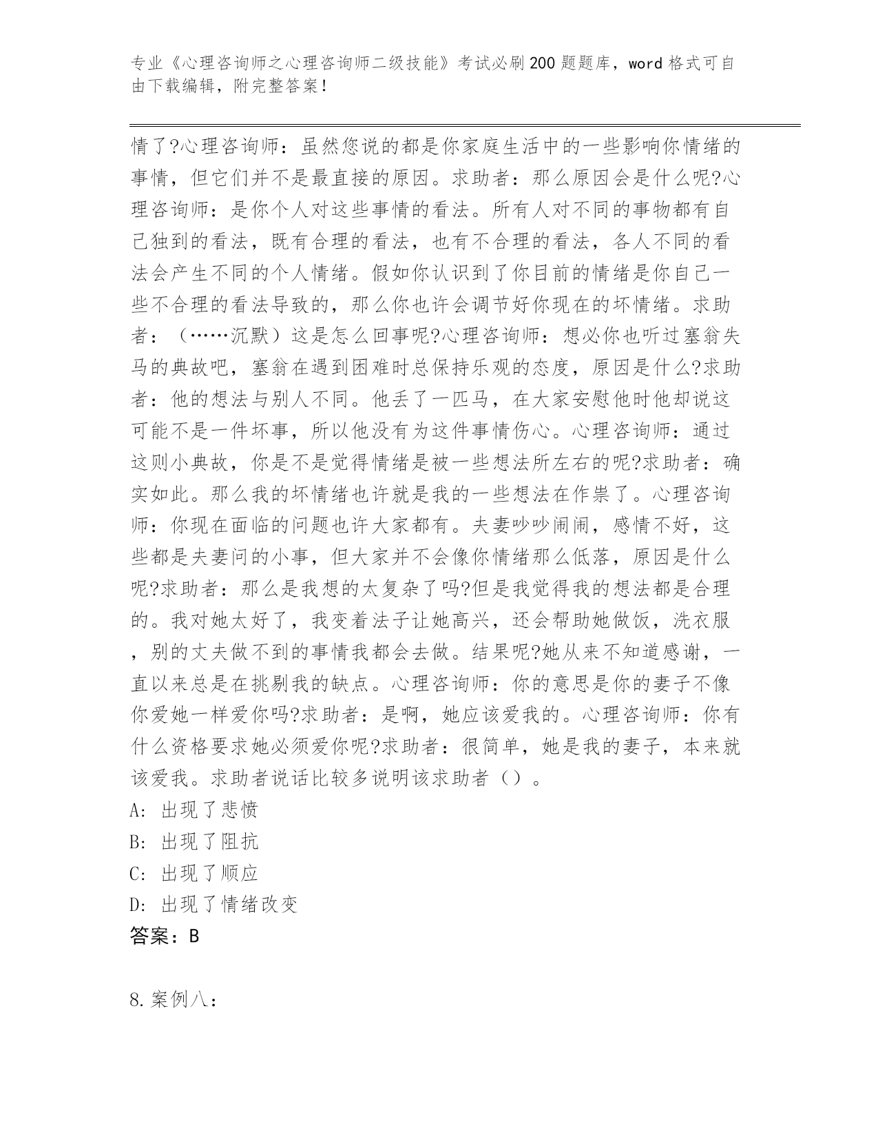 甘肃省2024年《心理咨询师之心理咨询师二级技能》考试必刷200题题库(必刷)