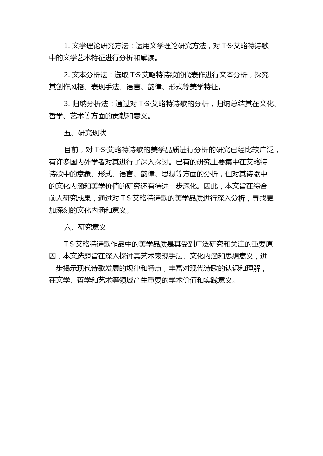 T·S艾略特诗歌的美学品质分析的开题报告.docx