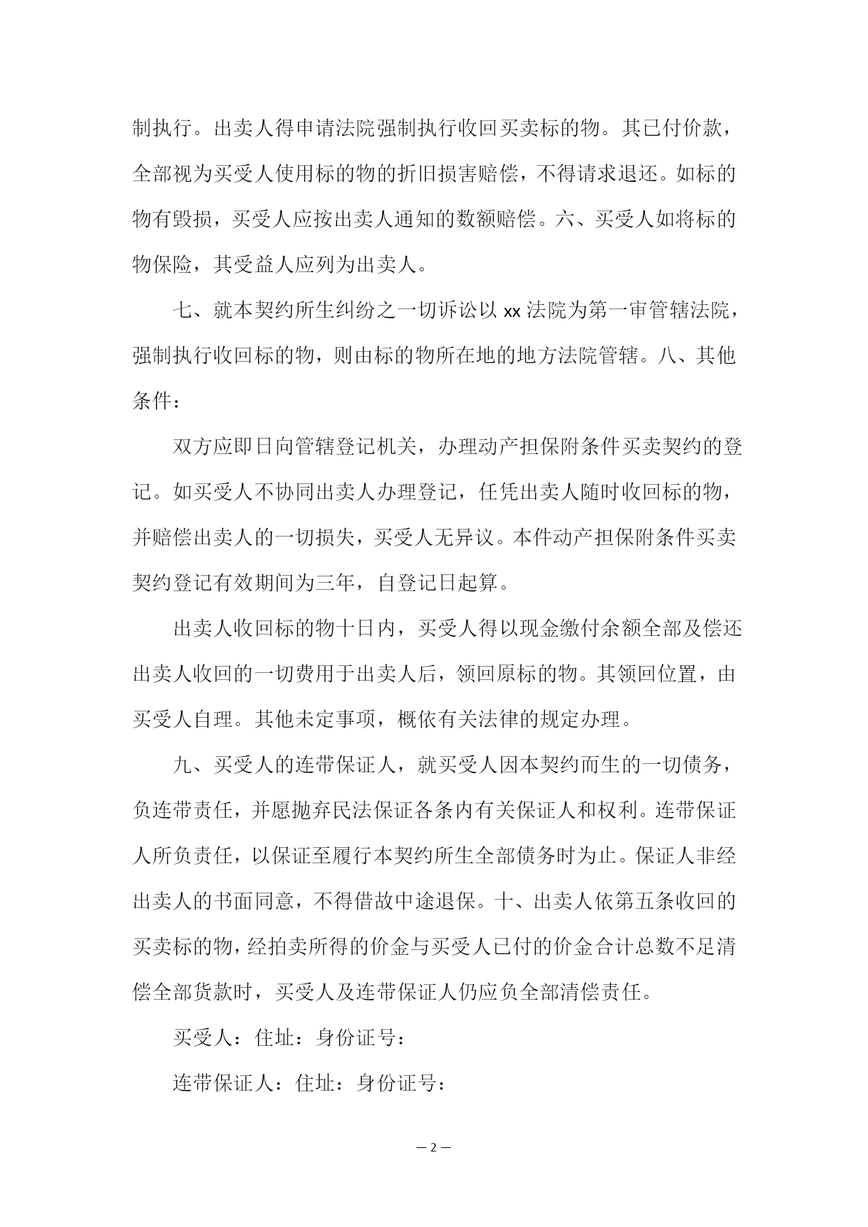 —PAGE\*MERGEFORMAT3—保险合同是附条件合同附条件买卖合同范本附条件买卖合同范本立契约书人买受人:xxx出卖人:xxx兹因买受人向出卖人购买附表一的标的物,依动产担保法规定,双方约定条款如下:一、买卖标的物:二、买卖标的物业已点交买受人占有使用,但买受人未付清全部价款之前功尽弃,出卖人保有标的物及其附件的所有权。买受人使用标的物,应遵守下列条件:标的物应置放于xx。买受人妥善保管维护使用。未经出卖人书面同意,不得将标的物移离上述地点。出卖人得随时派员至标的物所在地点,检查标的物的状况。买受人不得毁损标的物或涂灭标的物上名称、商标、厂牌与编号。标的物因火灾、盗窃以及天灾地变等不可抗力而发生的损失,概归买受人负担。买受人不得交标的物出借、让与、出质、出卖、提供担保或为其他任何处分。三、买卖人取得所有权的方法:四、买受人取得所有权的条件:买受人付清全部价格时,买受人始行取得标的物所有权。五、第三条所定付款,如买受人有任何一期未付情况,经出卖人以挂号函发信期限三日催告,买受人仍未清偿时,买受人并愿径受强制执行。出卖人得申请法院强制执行收回买卖标的物。其已付价款,全部视为买受人使用标的物的折旧损害赔偿,不得请求退还。如标的物有毁损,买受人应按出卖人通知的数额赔偿。六、买受人如将标的物保险,其受益人应列为出卖人。七、就本契约所生纠纷之一切诉讼以xx法院为第一审管辖法院,强制执行收回标的物,则由标的物所在地的地方法院管辖。八、其他条件:双方应即日向管辖登记机关,办理动产担保附条件买卖契约的登记。如买受人不协同出卖人办理登记,任凭出卖人随时收回标的物,并赔偿出卖人的一切损失,买受人无异议。本件动产担保附条件买卖契约登记有效期间为三年,自登记日起算。出卖人收回标的物十日内,买受人得以现金缴付余额全部及偿还出卖人收回的一切费用于出卖人后,领回原标的物。其领回位置,由买受人自理。其他未定事项,概依有关法律的规定办理。九、买受人的连带保证人,就买受人因本契约而生的一切债务,负连带责任,并愿抛弃民法保证各条内有关保证人和权利。连带保证人所负责任,以保证至履行本契约所生全部债务时为止。保证人非经出卖人的书面同意,不得借故中途退保。十、出卖人依第五条收回的买卖标的物,经拍卖所得的价金与买受人已付的价金合计总数不足清偿全部货款时,买受人及连带保证人仍应负全部清偿责任。买受人:住址:身份证号:连带保证人:住址:身份证号:出卖人:住址:身份证号:了解更多法律知识请上网进行专业咨询。—PAGE\*MERGEFORMAT1—此文档下载后,可根据您的需要随意编辑修改,欢迎您下载使用。