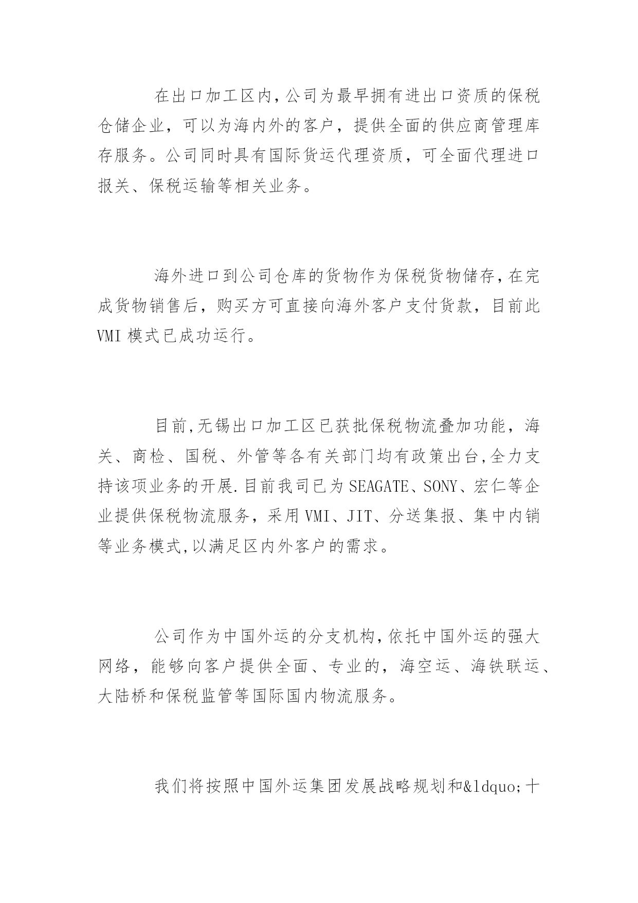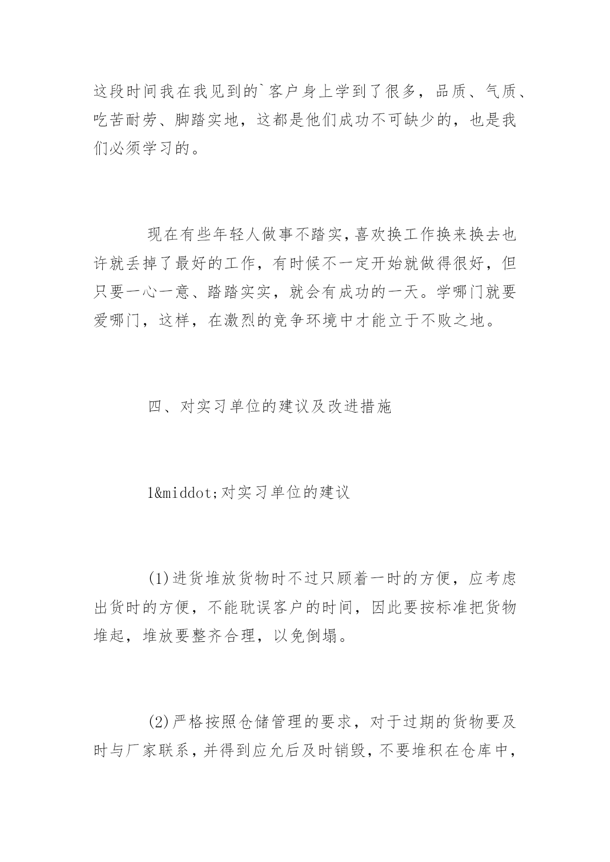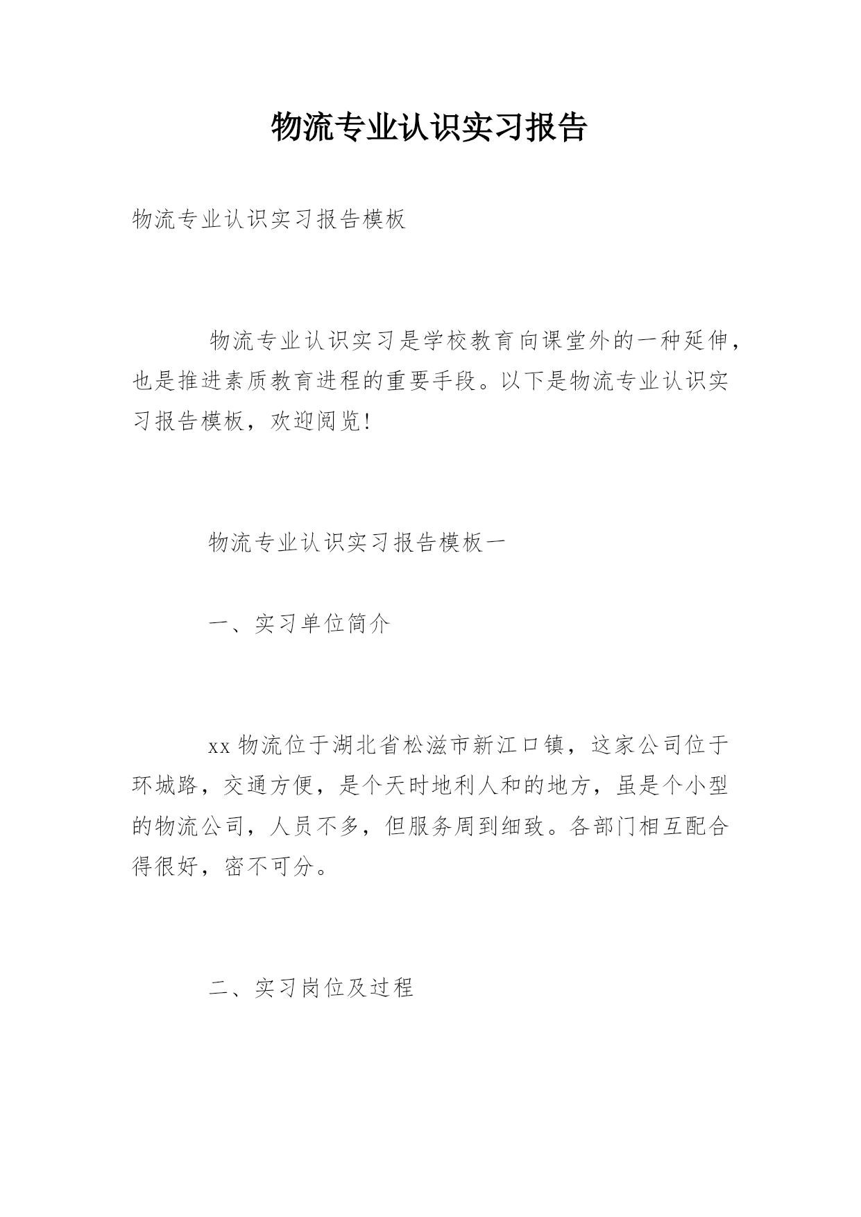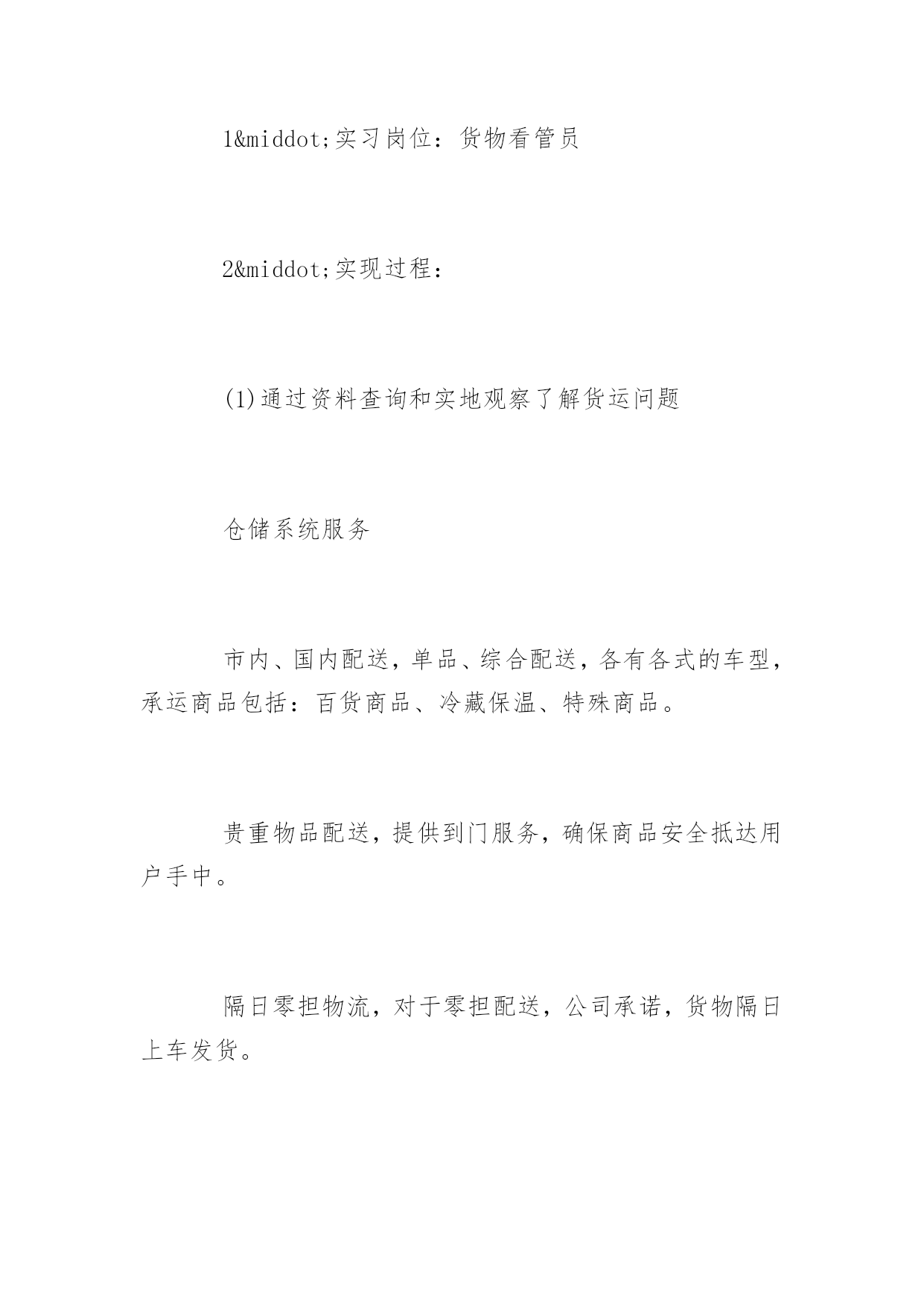 物流专业认识实习报告物流专业认识实习报告模板物流专业认识实习是学校教育向课堂外的一种延伸,也是推进素质教育进程的重要手段。以下是物流专业认识实习报告模板,欢迎阅览!物流专业认识实习报告模板一一、实习单位简介xx物流位于湖北省松滋市新江口镇,这家公司位于环城路,交通方便,是个天时地利人和的地方,虽是个小型的物流公司,人员不多,但服务周到细致。各部门相互配合得很好,密不可分。二、实习岗位及过程1·实习岗位:货物看管员2·实现过程:(1)通过资料查询和实地观察了解货运问题仓储系统服务市内、国内配送,单品、综合配送,各有各式的车型,承运商品包括:百货商品、冷藏保温、特殊商品。贵重物品配送,提供到门服务,确保商品安全抵达用户手中。隔日零担物流,对于零担配送,公司承诺,货物隔日上车发货。上架陈列,对于市内各商场、各类超市、连锁网点的配送服务,公司还提供协助客户商品上架陈列的服务。常温、恒温仓库存储,高层、堆垛货架存储存货及时控制,有效地货卡登记制度,可随时了解库存商品的数量,确保商品质量,随时检查,出现问题及时上报调整。定时观察库房条件,确保库房内温,温度不超标。加工调整,提供完善的分炼、换包装等加工服务。订单处理,对订单处理要求做到及时准确、高效。退货处理,全力协助货主公司通行退货收获作业,并填写好单据,及时反馈货主公司,一边货主公司尽快对退货做出处理。信息系统服务物流信息系统设计,分析客户物流流程,提供物流系统设计,系统咨询,依据客户对仓储条件的要求和储存商品的特点,进行仓储管理系统化,个性化设计。运输配送管理系统设计,针对不同配送系统,专门设计了配套送订单管理系统,以适应各种客户配送的要求。其他信息管理要求秉承客户至上的服务理念提供全方位的系统服务。(2)在货运信息部了解情况并实际工作信息管理应该是物流管理很关键的一部分,要及时处理好物流相关信息才能辅助的把其他事情做好,这份工作需要细心认真才能避免货物的损坏和利润下降。3·工作职责(1)在货运信息部了解如何进行信息处理,并做一些简单的实践工作。(2)在其他部门稍做了些了解。三、实习心得和体会通过这段时间的学习我受益匪浅,我不仅把我所学的知识与实践相结合,同时也我学到了书本上学不到的东西,这对于我来说是一个很好的补充,对于我们今后是有很大的帮助的。在实习的过程中我也懂得如何与人交往是很重要的,刚去那的时候,我也觉得很拘束,不喜欢和别人主动打交道,特别是面对客户,非常的紧张,但是学会这一点是有必要的。这段时间我在我见到的`客户身上学到了很多,品质、气质、吃苦耐劳、脚踏实地,这都是他们成功不可缺少的,也是我们必须学习的。现在有些年轻人做事不踏实,喜欢换工作换来换去也许就丢掉了最好的工作,有时候不一定开始就做得很好,但只要一心一意、踏踏实实,就会有成功的一天。学哪门就要爱哪门,这样,在激烈的竞争环境中才能立于不败之地。四、对实习单位的建议及改进措施1·对实习单位的建议(1)进货堆放货物时不过只顾着一时的方便,应考虑出货时的方便,不能耽误客户的时间,因此要按标准把货物堆起,堆放要整齐合理,以免倒塌。(2)严格按照仓储管理的要求,对于过期的货物要及时与厂家联系,并得到应允后及时销毁,不要堆积在仓库中,浪费仓库容积,更不要和正常商品同放一起,带给人一种杂乱无章的感觉,应该另外准备一间仓库,使那些一时无法销毁的商品有地方存储。(3)目前物流中心正面临许多问题。批次越来越多而批量却越来越小,造成物流管理上的一个难点。国内的物流利润太低,如何把利润搞上去。面临一系列的难题,物流中心还得借鉴国外的物流策略,提高自己企业的效益。(4)仓库高层货架的利用率过低,野蛮装卸导致货损、货差率过高。(5)加强各部门之间的沟通和联系力度,合理分配各部门之间的物流作业,有效利用物流配送中心的作业区域,利用空间、设备、人员和能源;最大限度的减少物料搬运;简化作业流程;缩短生产周期;力求投资最低;为职工提供方便、舒适、安全和卫生的工作环境。五、致谢首先,感谢xx物流公司给我这次实习的机会,在这期间可能给公司带来许多麻烦,在这里深感抱歉。其次,我还感谢这里的员工给了我许多温暖和帮助,我在他们身上学到了很多东西,也留下了美好的回忆。再次,我要感谢这里的指导老师给我们的细心教导,让我们顺利完成了实习报告。物流专业认识实习报告模板二一:公司简介:江苏富昌中外运物流有限公司,注册资本1600万元人民币,总资产5800万元人民币的现代综合物流企业,特殊监管区域首家获得A类企业资质,通过了ISO9001:2008和ISO14001:2004认证.公司位于无锡新区出口加工区A区锡钦路1号