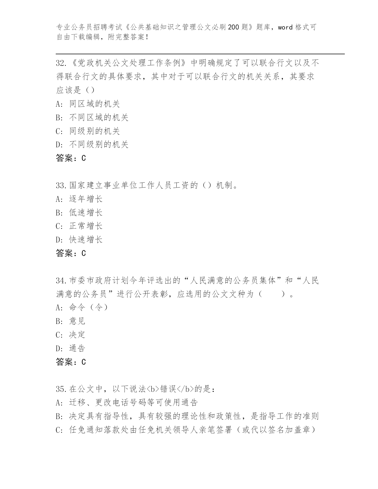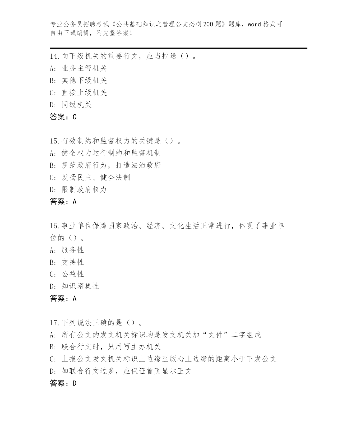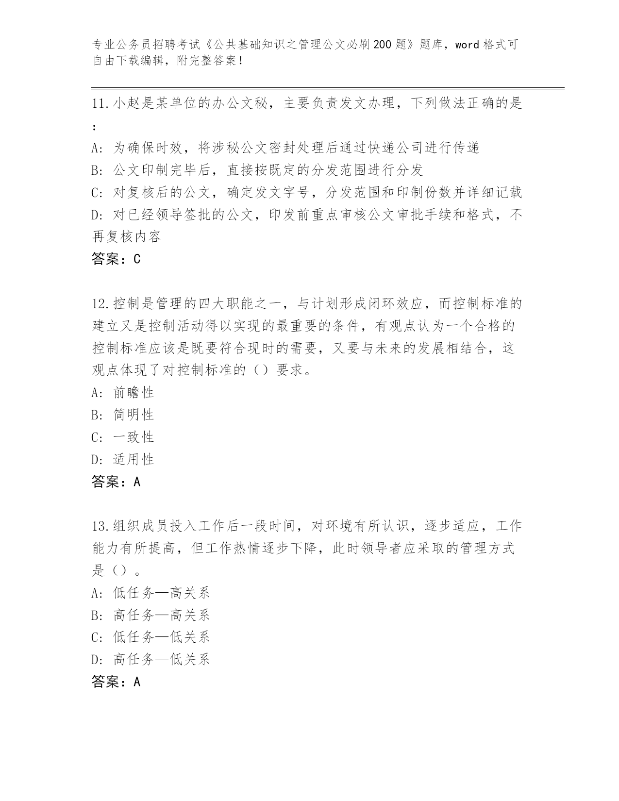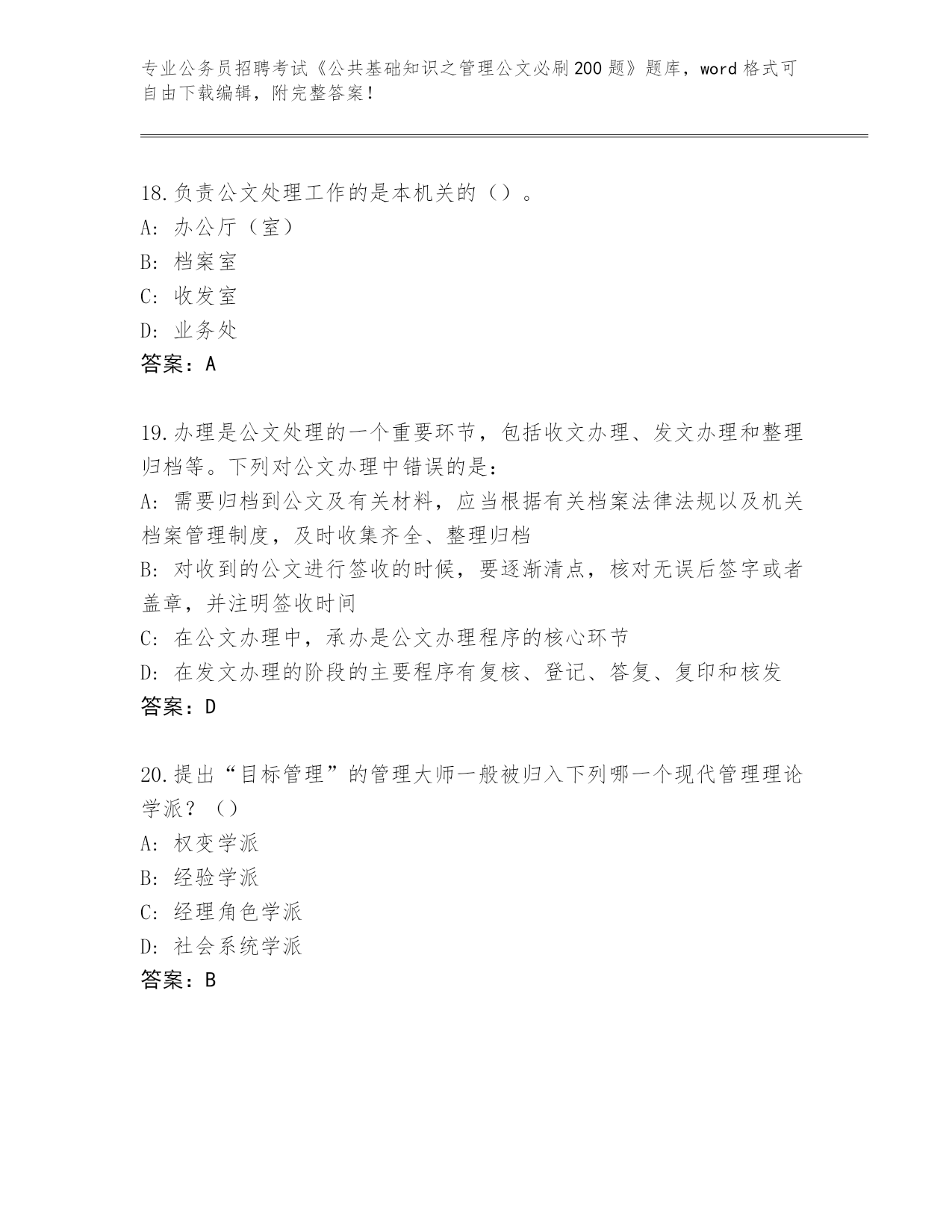 甘肃省宁县公务员招聘考试《公共基础知识之管理公文必刷200题》完整题库及答案【历年真题】