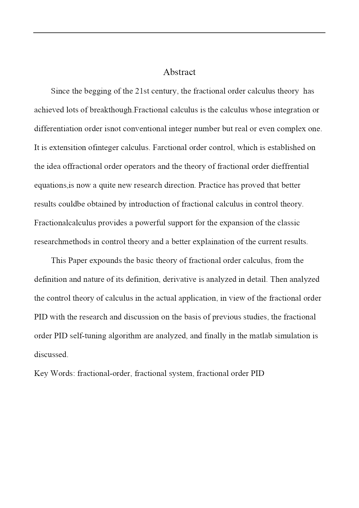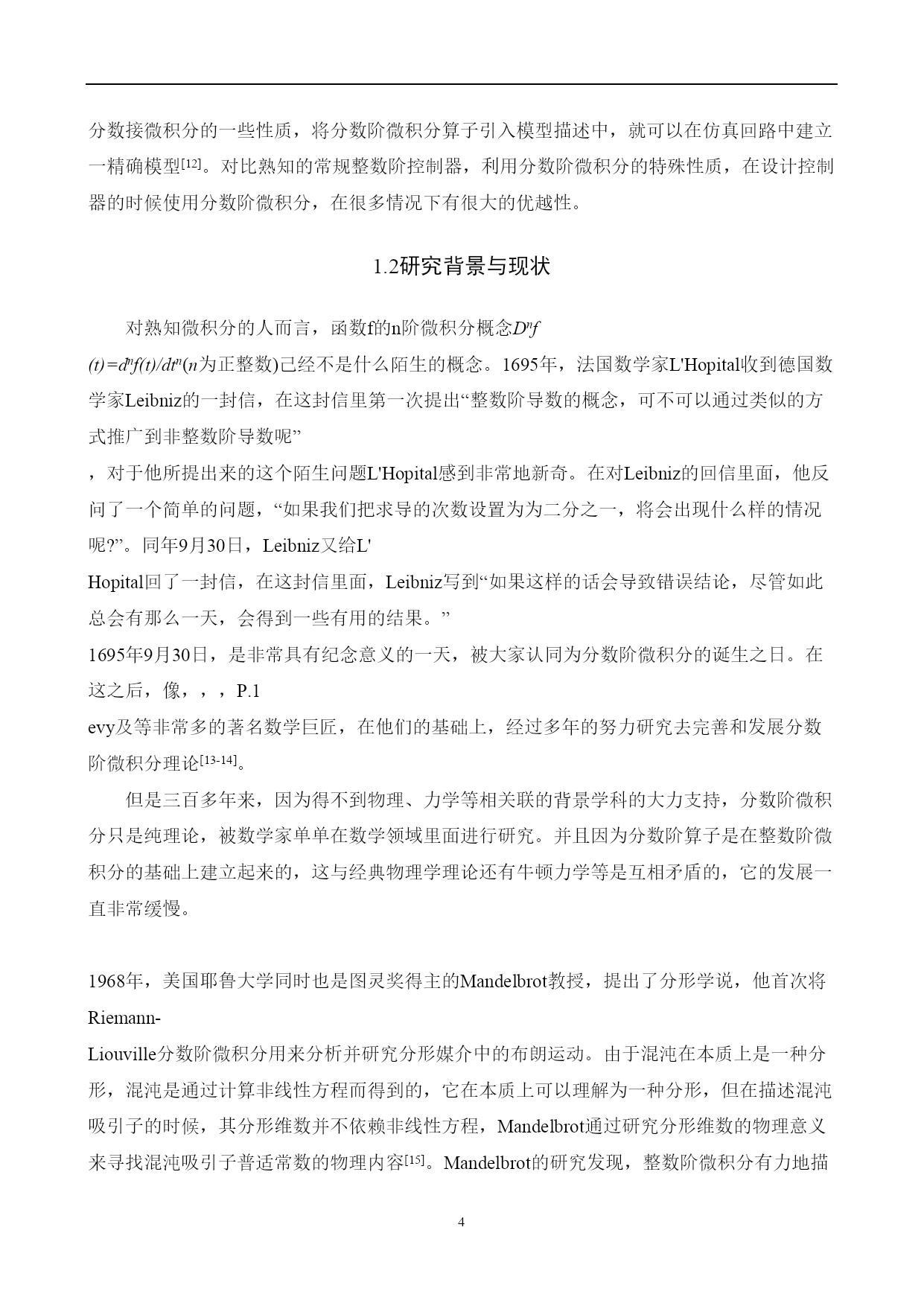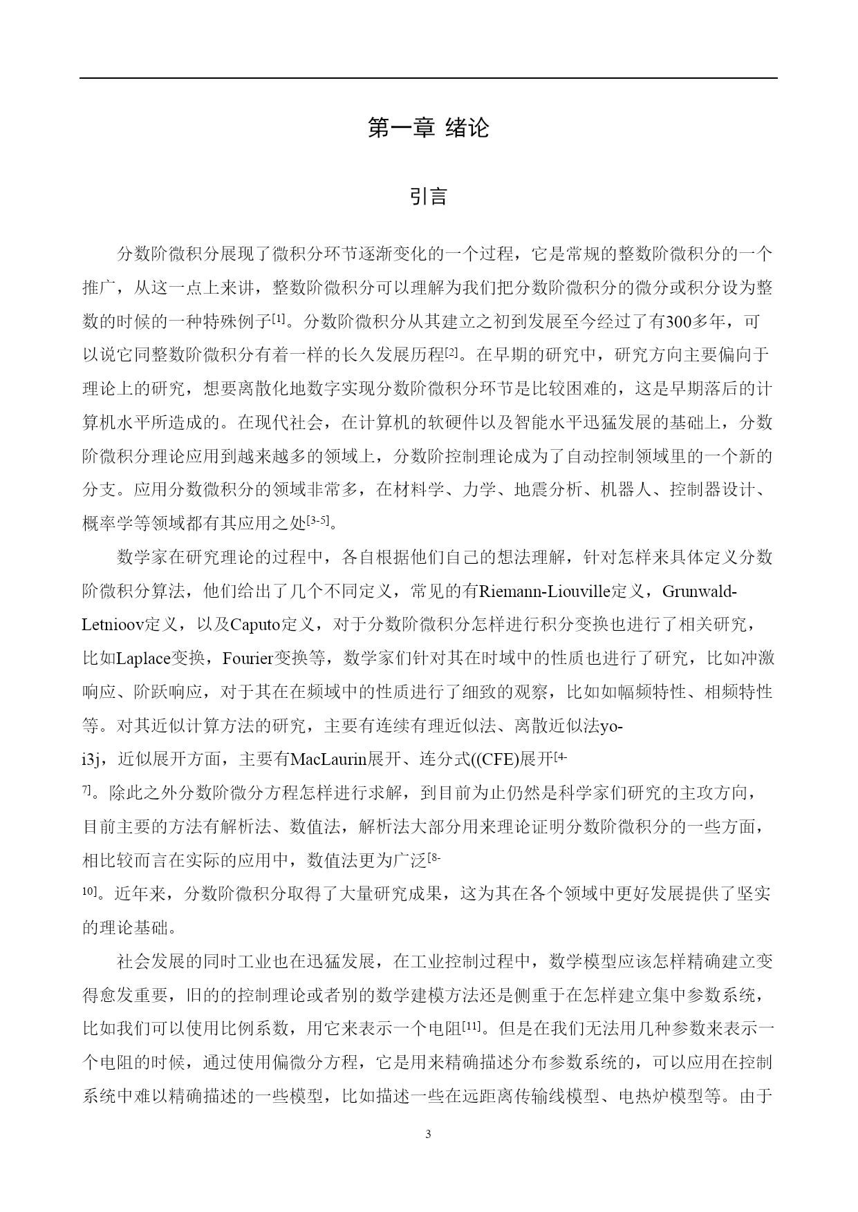 分数阶控制理论研究摘要进入21世纪以来,随着分数阶微积分理论研究不断取得突破,控制领域中的新的研究热点就是对其进行理论研究,分数阶微积分是整数阶微积分的推广,将微积分阶次从我们熟知的整数域推广到实数域,甚至复数域。其理论基础是分数阶微积分算子及方程,这是一个新的研究方向。大量的实践已经证明,在控制理论中应用分数阶微积分,相比整数阶微积分,具有更好的效果。在扩展控制理论的经典研究方法方面,在解释现有结果方面,分数阶微积分都为之提供了非常强劲的支持。论文阐述了分数阶微积分的基本理论,从其定义、导数定义以及性质进行了分析了详细说明。接下来分析了微积分控制理论在实际中的应用,针对分数阶PID进行了研究讨论,在前人研究基础上,对于分数阶PID自整定算法进行了研究分析,最后在matlab里进行仿真讨论。关键词:分数阶,分数系统,分数阶PIDAbstractSincethebeggingofthe21stcentury,thefractionalordercalculustheoryhasachievedlotsofbreakthough.Fractionalcalculusisthecalculuswhoseintegrationordifferentiationorderisnotconventionalintegernumberbutrealorevencomplexone.Itisextensitionofintegercalculus.Farctionalordercontrol,whichisestablishedontheideaoffractionalorderoperatorsandthetheoryoffractionalorderdieffrentialequations,isnowaquitenewresearchdirection.Practicehasprovedthatbetterresultscouldbeobtainedbyintroductionoffractionalcalculusincontroltheory.Fractionalcalculusprovidesapowerfulsupportfortheexpansionoftheclassicresearchmethodsincontroltheoryandabetterexplainationofthecurrentresults.ThisPaperexpoundsthebasictheoryoffractionalordercalculus,fromthedefinitionandnatureofitsdefinition,derivativeisanalyzedindetail.Thenanalyzedthecontroltheoryofcalculusintheactualapplication,inviewofthefractionalorderPIDwiththeresearchanddiscussiononthebasisofpreviousstudies,thefractionalorderPIDself-tuningalgorithmareanalyzed,andfinallyinthematlabsimulationisdiscussed.KeyWords:fractional-order,fractionalsystem,fractionalorderPIDPAGE\*MERGEFORMATII目录TOC\o"1-2"\h\z\u\t"标题3,3"HYPERLINK\l"_Toc385119023"第一章绪论PAGEREF_Toc385119023\h3HYPERLINK\l"_Toc385119024"引言PAGEREF_Toc385119024\h3HYPERLINK\l"_Toc385119025"研究背景与现状PAGEREF_Toc385119025\h4HYPERLINK\l"_Toc385119026"第二章分数阶微积分基本理论PAGEREF_Toc385119026\h6HYPERLINK\l"_Toc385119027"分数阶微积分的定义PAGEREF_Toc385119027\h6HYPERLINK\l"_Toc385119028"2.2.1Gamma函数PAGEREF_Toc385119028\h6HYPERLINK\l"_Toc385119029"2.2.2Mittag-Leffler函数PAGEREF_Toc385119029\h6HYPE