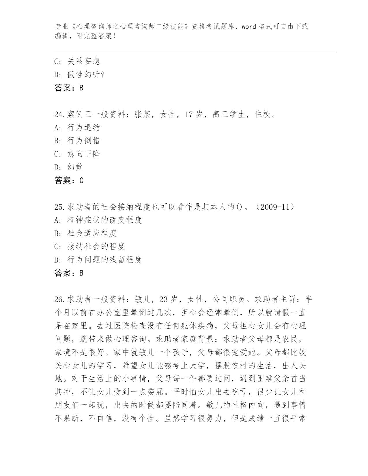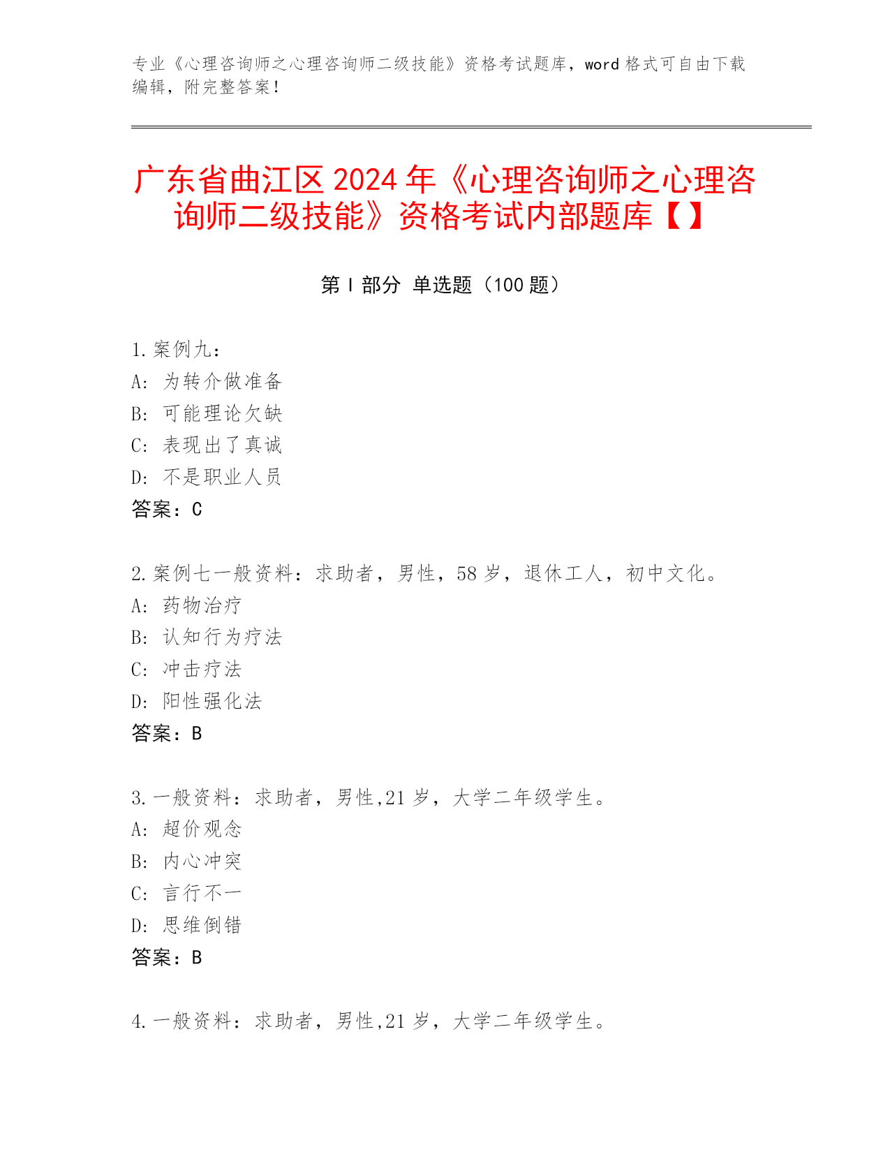 广东省曲江区2024年《心理咨询师之心理咨询师二级技能》资格考试内部题库【】
