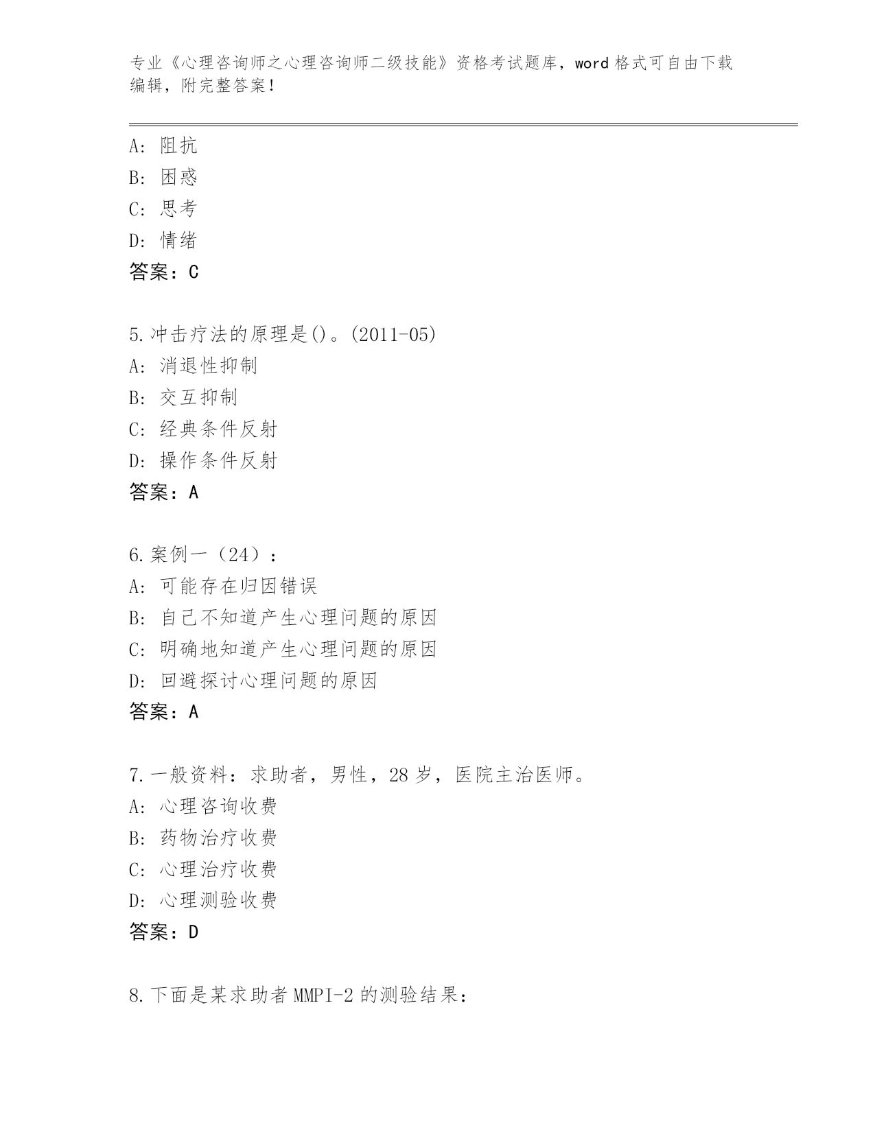 广东省内部使用《心理咨询师之心理咨询师二级技能》资格考试通关秘籍题库(名校卷)