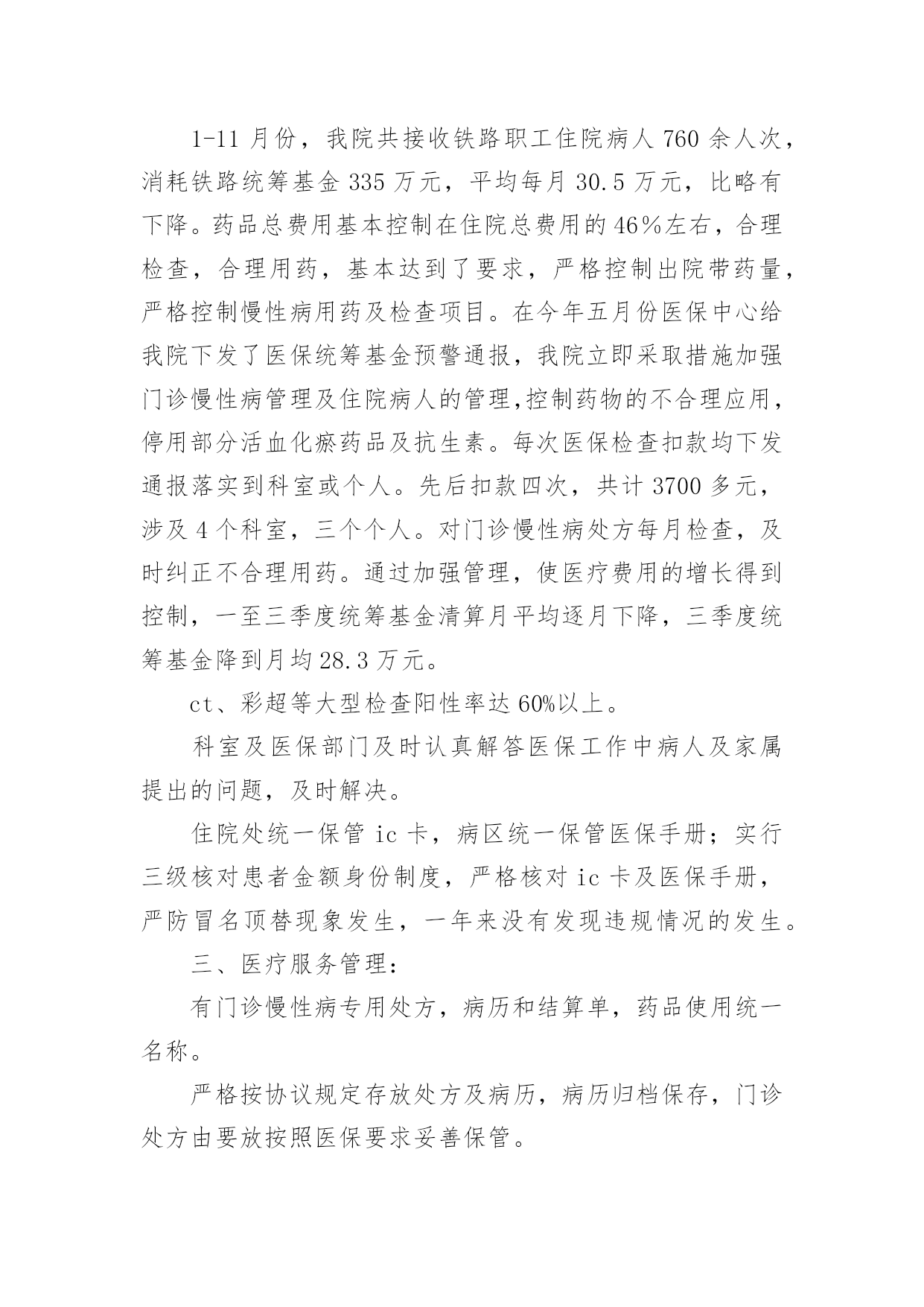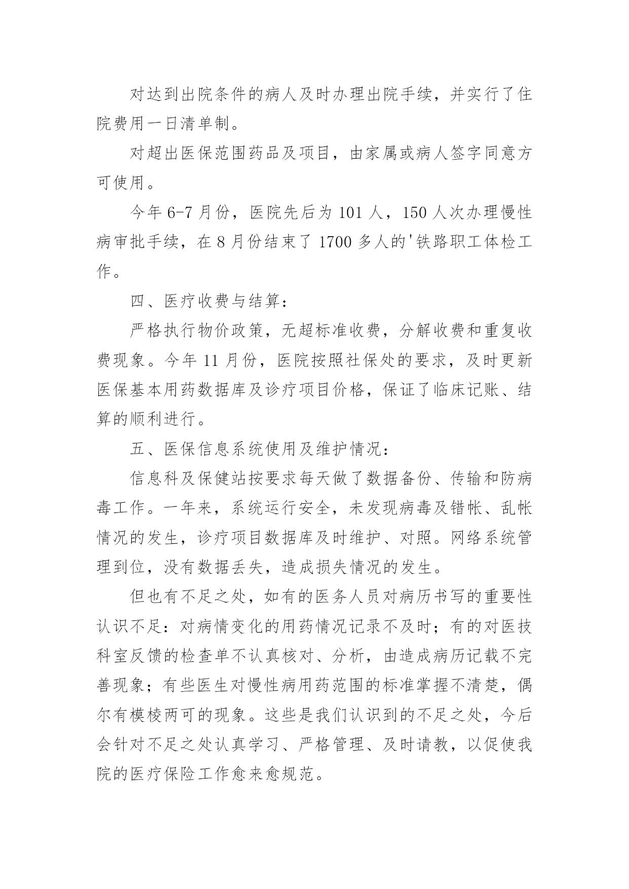 保险年度工作总结保险年度工作总结总结是把一定阶段内的有关情况分析研究,做出有指导性的经验方法以及结论的书面材料,它可以有效锻炼我们的语言组织能力,因此,让我们写一份总结吧。总结怎么写才能发挥它的作用呢?以下是小编收集整理的保险年度工作总结,欢迎阅读,希望大家能够喜欢。保险年度工作总结1省社会医疗保险中心铁路管理处:我院根据铁路局职工家属基本医疗保险定点医疗机构服务协议的规定,认真开展工作,作出了一定的成效,但也存在一定的不足,针对医疗保险医疗定点医疗机构服务质量监督考核内容,总结如下:一、医疗保险组织管理:有健全组织。业务院长分管医保工作,有专门的医保机构及医保管理,网络管理等主要制度,有考核管理办法并定期考核。设有医保政策宣传栏,意见箱,导医图及医保政策主要内容。公布了常用药品及诊疗项目价格,按时参加医保培训,有特殊材料、职工家属转诊转院审批记录。二、医疗保险政策执行情况:1-11月份,我院共接收铁路职工住院病人760余人次,消耗铁路统筹基金335万元,平均每月30.5万元,比略有下降。药品总费用基本控制在住院总费用的46%左右,合理检查,合理用药,基本达到了要求,严格控制出院带药量,严格控制慢性病用药及检查项目。在今年五月份医保中心给我院下发了医保统筹基金预警通报,我院立即采取措施加强门诊慢性病管理及住院病人的管理,控制药物的不合理应用,停用部分活血化瘀药品及抗生素。每次医保检查扣款均下发通报落实到科室或个人。先后扣款四次,共计3700多元,涉及4个科室,三个个人。对门诊慢性病处方每月检查,及时纠正不合理用药。通过加强管理,使医疗费用的增长得到控制,一至三季度统筹基金清算月平均逐月下降,三季度统筹基金降到月均28.3万元。ct、彩超等大型检查阳性率达60%以上。科室及医保部门及时认真解答医保工作中病人及家属提出的问题,及时解决。住院处统一保管ic卡,病区统一保管医保手册;实行三级核对患者金额身份制度,严格核对ic卡及医保手册,严防冒名顶替现象发生,一年来没有发现违规情况的发生。三、医疗服务管理:有门诊慢性病专用处方,病历和结算单,药品使用统一名称。严格按协议规定存放处方及病历,病历归档保存,门诊处方由要放按照医保要求妥善保管。对达到出院条件的病人及时办理出院手续,并实行了住院费用一日清单制。对超出医保范围药品及项目,由家属或病人签字同意方可使用。今年6-7月份,医院先后为101人,150人次办理慢性病审批手续,在8月份结束了1700多人的'铁路职工体检工作。四、医疗收费与结算:严格执行物价政策,无超标准收费,分解收费和重复收费现象。今年11月份,医院按照社保处的要求,及时更新医保基本用药数据库及诊疗项目价格,保证了临床记账、结算的顺利进行。五、医保信息系统使用及维护情况:信息科及保健站按要求每天做了数据备份、传输和防病毒工作。一年来,系统运行安全,未发现病毒及错帐、乱帐情况的发生,诊疗项目数据库及时维护、对照。网络系统管理到位,没有数据丢失,造成损失情况的发生。但也有不足之处,如有的医务人员对病历书写的重要性认识不足:对病情变化的用药情况记录不及时;有的对医技科室反馈的检查单不认真核对、分析,由造成病历记载不完善现象;有些医生对慢性病用药范围的标准掌握不清楚,偶尔有模棱两可的现象。这些是我们认识到的不足之处,今后会针对不足之处认真学习、严格管理、及时请教,以促使我院的医疗保险工作愈来愈规范。保险年度工作总结2很快xx年就要结束了,我也在银行保险部工作了1年,银保部的工作在周总的领导下,在各位同事的帮助和鼓励下,边学习,边工作,逐渐在部门的工作中逐步转入正轨,现就接手后的如下:一是短期内迅速熟悉新岗位的工作方式、工作流程。进入本部门后,在周总的领导下,在公司各位同事的帮助下,快速适应新的工作环境,在新岗位,转变工作思路,强化服务意识,树立新的工作作风,认真完成了各项工作任务。二是在提高业务上下功夫,增强工作的指导性。实践中认识到,缺乏业务知识,超前意识,工作被动应付,是影响工作上质量、求实效的一个重要因素。业精于勤荒于嬉,克服懒惰思想,锐意进取,就必须发挥工作的主动性、能动性,力争在某些情况的把握上能够合理适度,做事有分寸,力求让上级放心让下级满意。在主动服务上跟上领导决策的节拍,做到与时俱进。三是在工作中边学习,边总结。在工作中不断完善自己,改正不良的工作习惯,将自己的职业生涯和公司的发展紧密联系在一起,遇到挫折不气馁,吃一堑,长一智,不断改正缺点完善自我,与时俱进。以上是对20xx年工作的简单总结,眼间又要进入20xx年了,新的一年对我们来说是一个充满挑战、机遇、希望与压力开始的一年,也是我非常重要的一年。我尚有不足之处,需要继续加强学习,给自己充电,努力的去充实完善自己,以便使自己在新的一年里有更大的进步和成绩。一