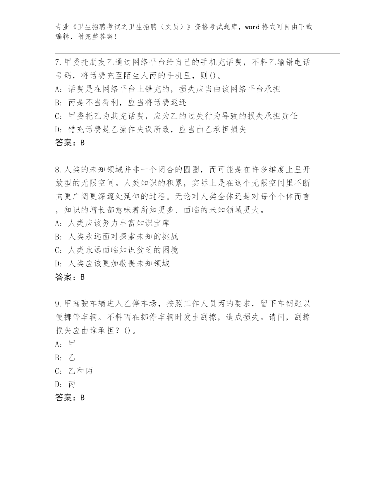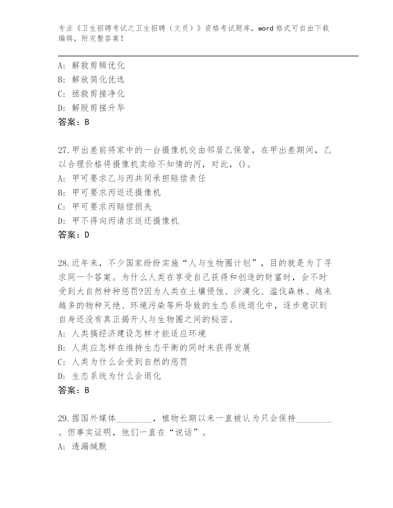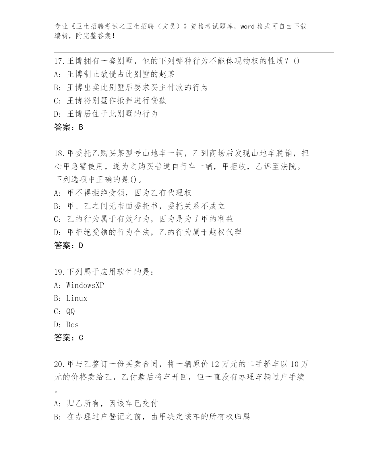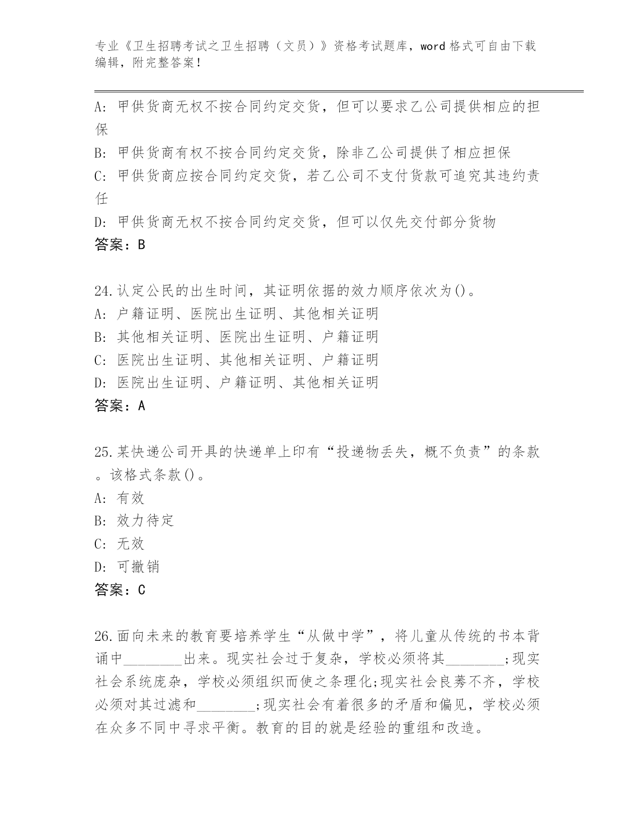 山东省青州市2024《卫生招聘考试之卫生招聘(文员)》资格考试完整题库及答案