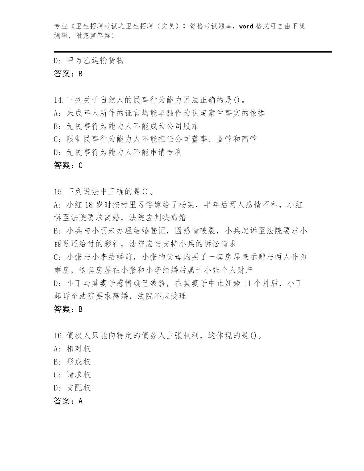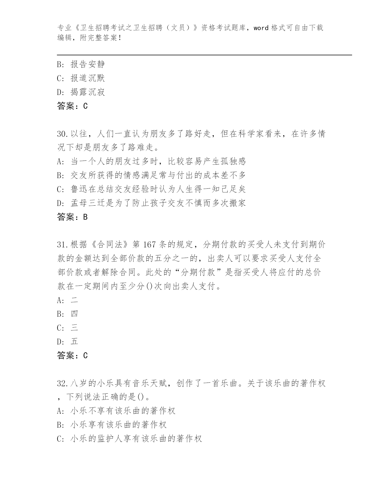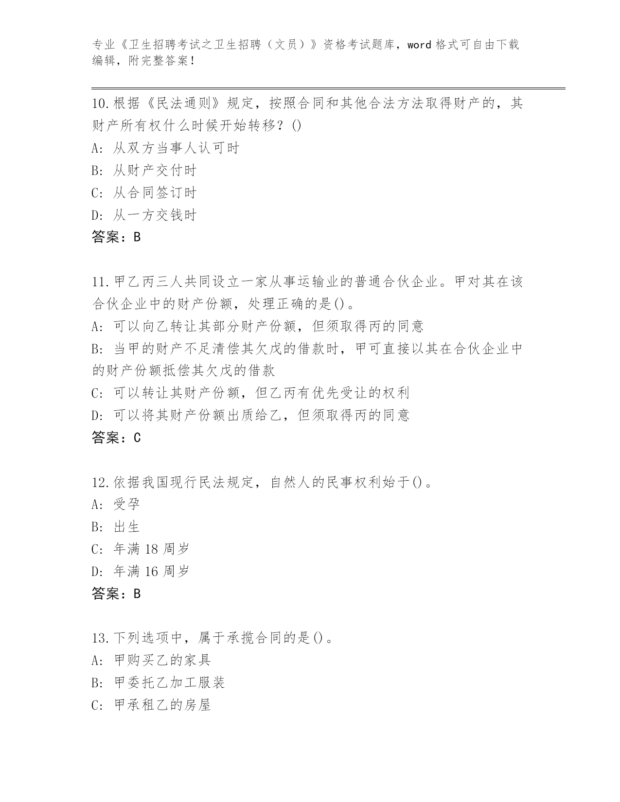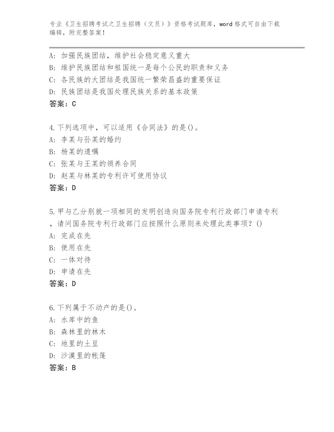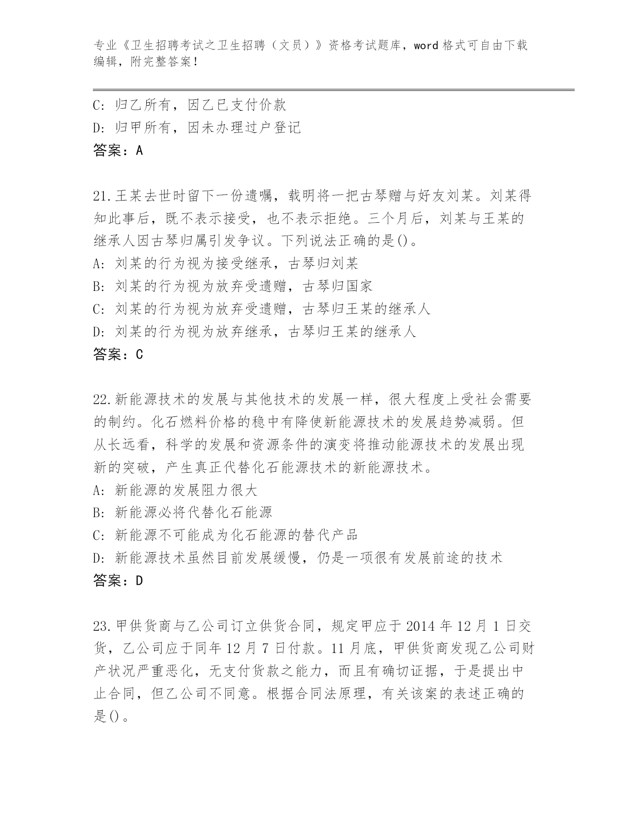 山东省青州市2024《卫生招聘考试之卫生招聘(文员)》资格考试完整题库及答案