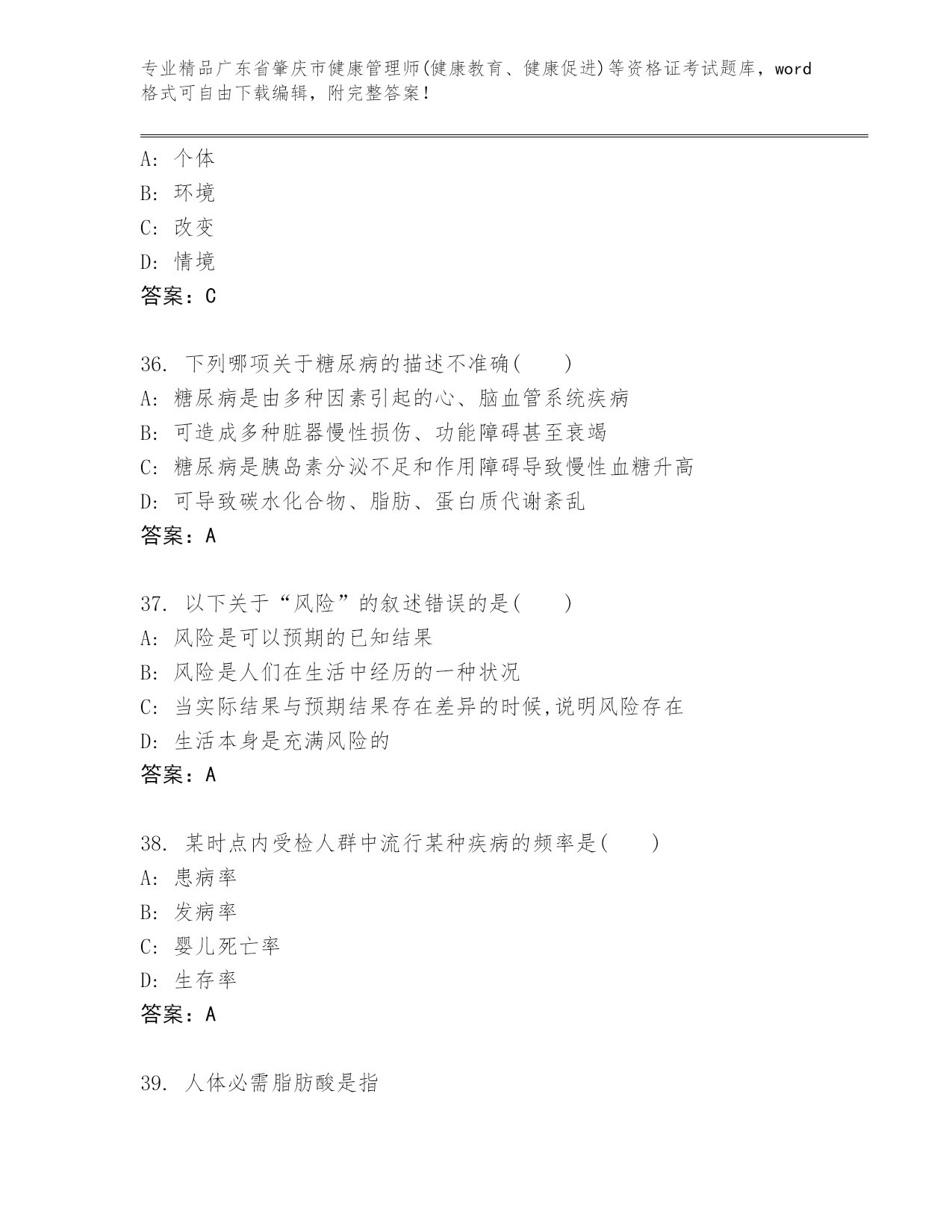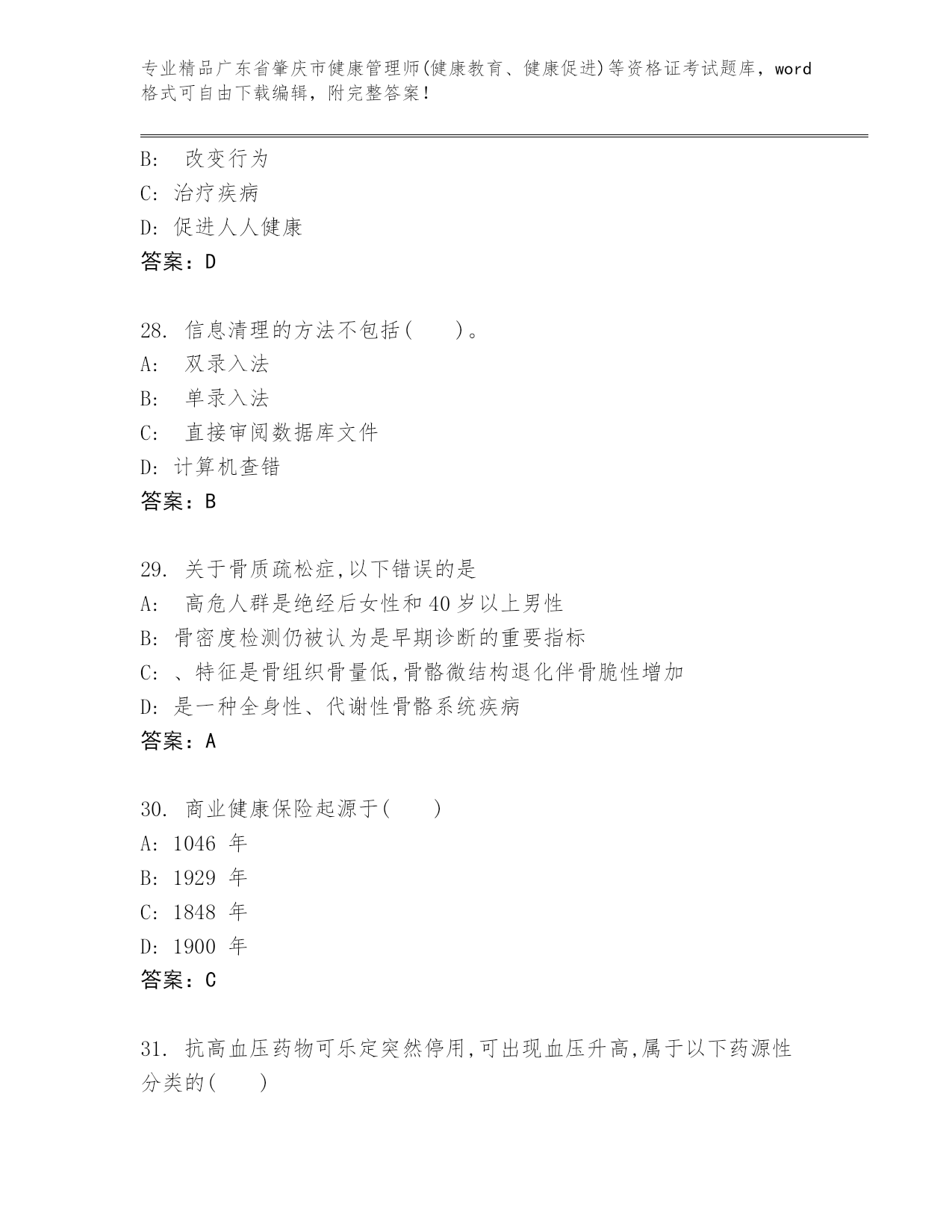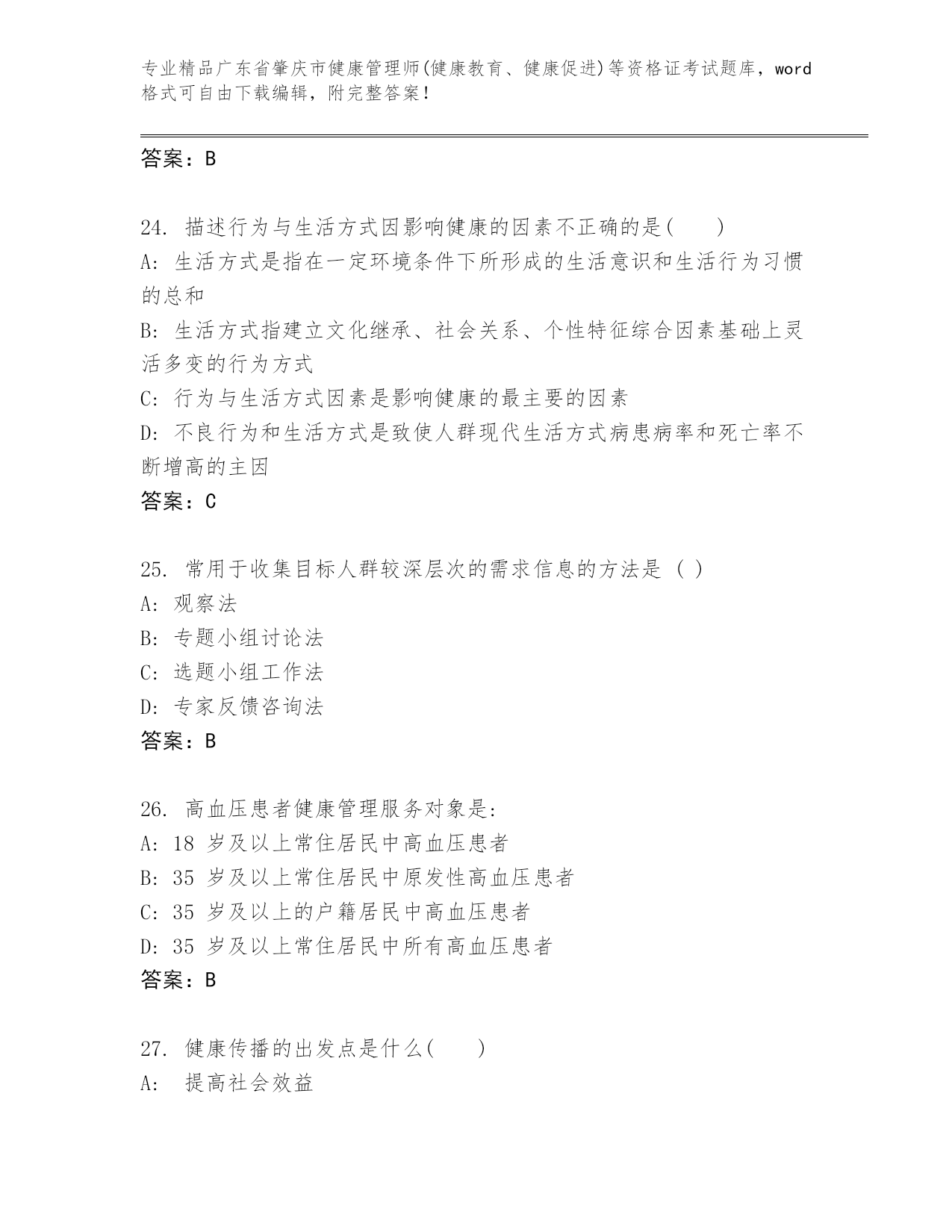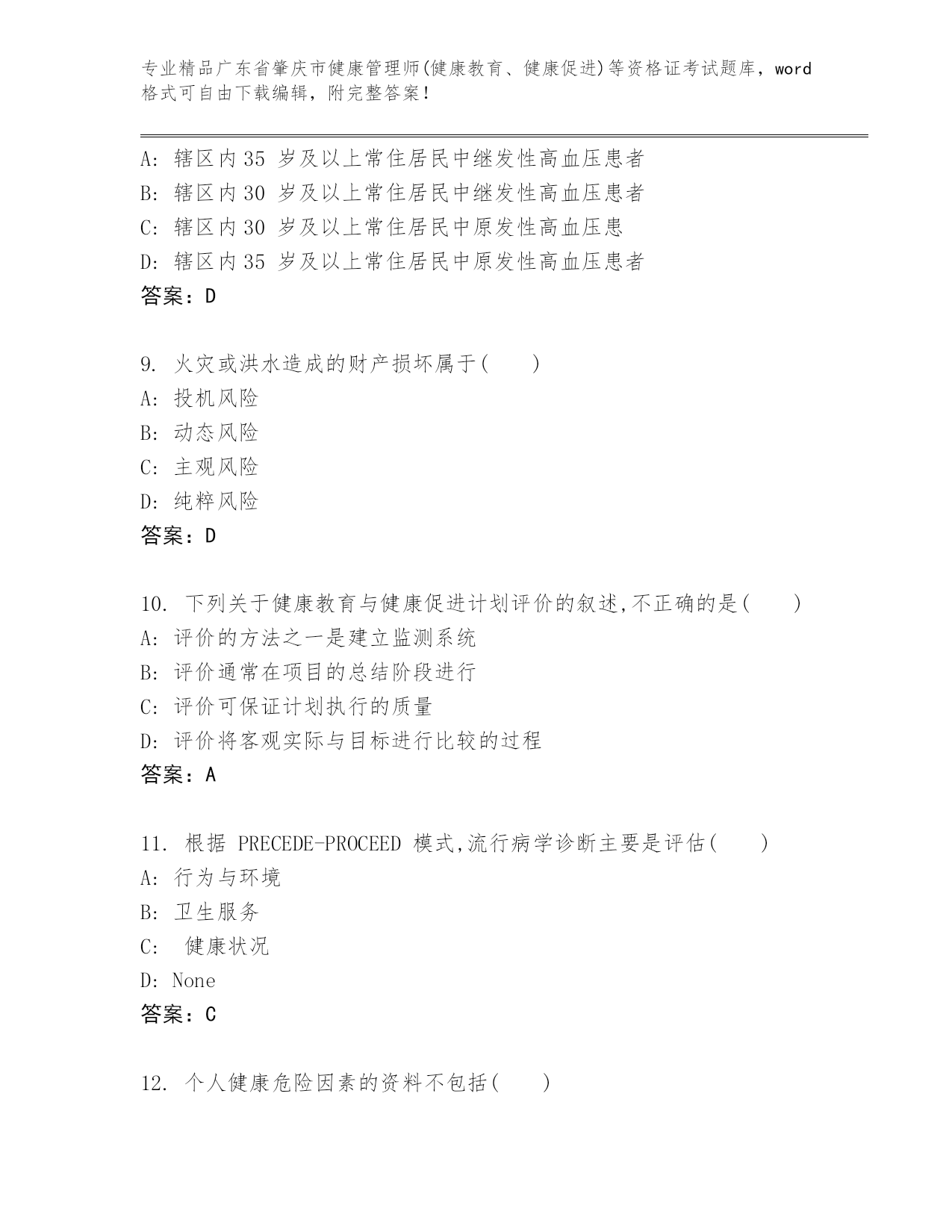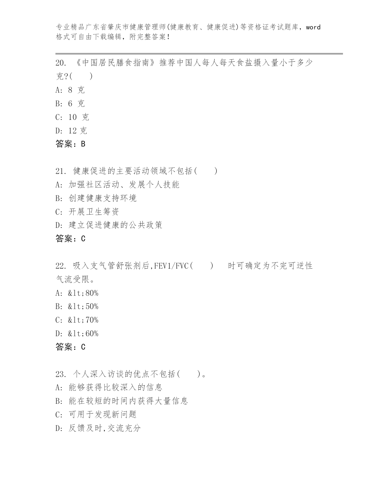 内部培训广东省肇庆市健康管理师(健康教育、健康促进)等资格证考试王牌题库推荐.docx