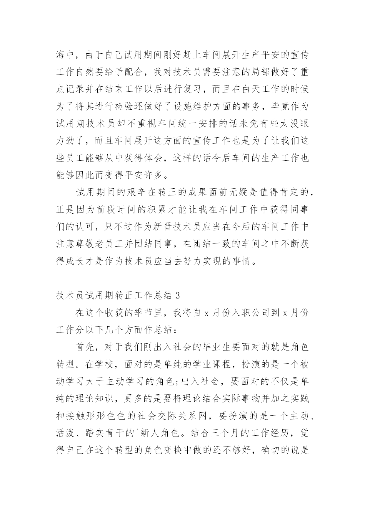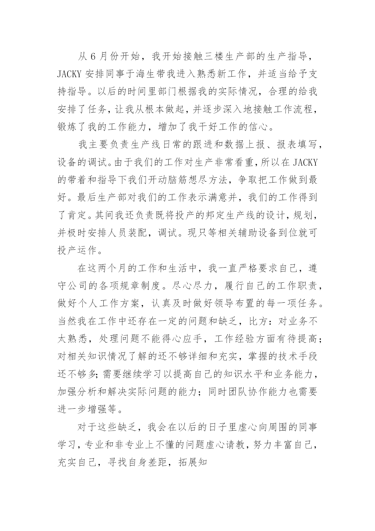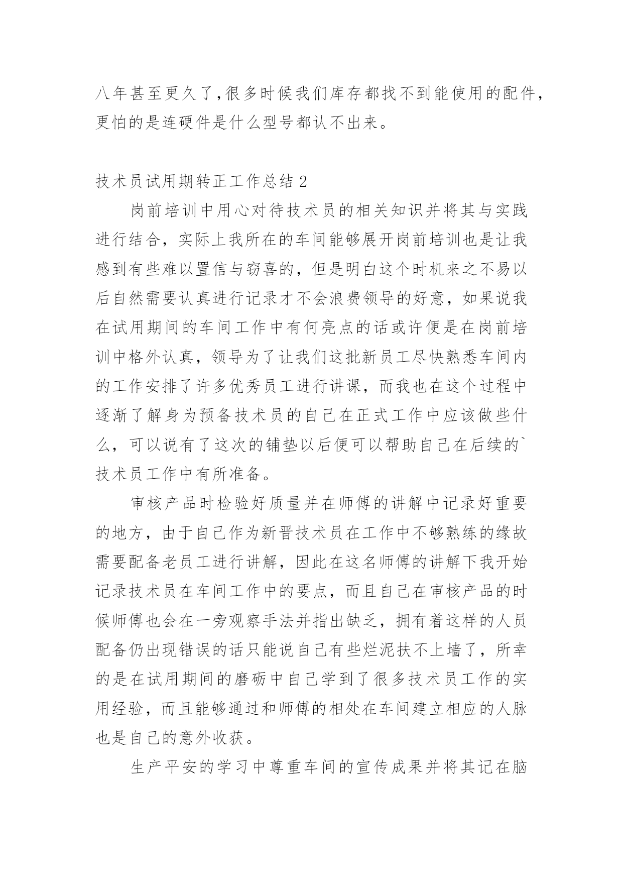 技术员试用期转正工作总结总结是指社会团体、企业单位和个人对某一阶段的学习、工作或其完成情况加以回顾和分析,得出教训和一些规律性认识的一种书面材料,它可以帮助我们总结以往思想,发扬成绩,因此我们需要回头归纳,写一份总结了。总结怎么写才能发挥它的作用呢?以下是小编为大家收集的技术员试用期转正工作总结,供大家参考借鉴,希望可以帮助到有需要的朋友。技术员试用期转正工作总结1我是xx电脑公司的一名技术人员,负责进行电脑的维修工作。前段时间,我才刚刚参加xx公司里工作,但因为我的技术很不错,且办事效率高,公司决定提前将我转正,下面我将谈谈我这段时间里的工作情况,并做一下总结。一、工作经历对于电脑的维修这份工作,我个人是非常喜欢的,我本人是一位电脑硬件发烧友,我喜欢去了解各种电脑里的硬件产品。闲暇之余,就是拼装各种电脑,虽然配件都一样,组装方法也差不多,但是不同的电脑之间所用到的硬件型号却不一样,因此很多时候都会有差异。有些装配起来很简单,而有些那么很麻烦。在我工作的`这段时间里,有一次让我印象很深刻的经历。那户人家购置了我们公司的整机,这户人家购置了我们的电脑整机后,觉得不太好用,于是自作主张又换一块处理器。但是装这个处理器的人也是个半吊子水,或者说,没有考虑一些常见的问题的问题。客户新换的处理器比他之前使用的要高出好几个档次,但是这块处理器却坏掉了,因为那个人在给他装配的时候,没有处理好静电的问题,结果静电导致内部元件短路,而损坏了主板,连带着处理器也损坏了。其实按照规定,用户私自拆装并更改内部配件,我们是不用负责的。但是看在他这一下损失了近万块的份上。我还是给更换了一下主板,并且把之前的那块处理器也装上去了。我和那个客户讲了一下出现问题的原因,他还一脸不信的样子。我耐心跟他沟通,但他还是一副我们公司卖的是劣质产品的脸色,让我相当无语。除了电脑的维修之外,我还负责电脑的组装工作。有一次,一个客户在我们这买了很多电脑配件后,想让我们组装。但是我们这个组装是要额外收费的,而且价格视情况而定。这个客户是觉得我们出价比拟贵,但是他的电脑使用的是水冷散热。这种电脑组装起来非常麻烦,要更换很多配件。在我们商量了半天之后,我们把价格从八百减到了六百,他才肯罢休,还总觉得我们赚了他的大廉价。二、不断学习我们最维修工作的,很多时候要与时俱进,但很多时候也要学会去“了解历史〞。对于最新的一些电脑硬件知识我们需要了解,但以前的老古董们同样也要了解。很多人七、八年不换电脑,每一年电脑配件都有很大的提升,更别说七八年甚至更久了,很多时候我们库存都找不到能使用的配件,更怕的是连硬件是什么型号都认不出来。技术员试用期转正工作总结2岗前培训中用心对待技术员的相关知识并将其与实践进行结合,实际上我所在的车间能够展开岗前培训也是让我感到有些难以置信与窃喜的,但是明白这个时机来之不易以后自然需要认真进行记录才不会浪费领导的好意,如果说我在试用期间的车间工作中有何亮点的话或许便是在岗前培训中格外认真,领导为了让我们这批新员工尽快熟悉车间内的工作安排了许多优秀员工进行讲课,而我也在这个过程中逐渐了解身为预备技术员的自己在正式工作中应该做些什么,可以说有了这次的铺垫以后便可以帮助自己在后续的`技术员工作中有所准备。审核产品时检验好质量并在师傅的讲解中记录好重要的地方,由于自己作为新晋技术员在工作中不够熟练的缘故需要配备老员工进行讲解,因此在这名师傅的讲解下我开始记录技术员在车间工作中的要点,而且自己在审核产品的时候师傅也会在一旁观察手法并指出缺乏,拥有着这样的人员配备仍出现错误的话只能说自己有些烂泥扶不上墙了,所幸的是在试用期间的磨砺中自己学到了很多技术员工作的实用经验,而且能够通过和师傅的相处在车间建立相应的人脉也是自己的意外收获。生产平安的学习中尊重车间的宣传成果并将其记在脑海中,由于自己试用期间刚好赶上车间展开生产平安的宣传工作自然要给予配合,我对技术员需要注意的局部做好了重点记录并在结束工作以后进行复习,而且在白天工作的时候为了将其进行检验还做好了设施维护方面的事务,毕竟作为试用期技术员却不重视车间统一安排的话未免有些太没眼力劲了,而且车间展开这方面的宣传工作也是为了让我们这些员工能够从中获得体会,这样的话今后车间的生产工作也能够因此而变得平安许多。试用期间的艰辛在转正的成果面前无疑是值得肯定的,正是因为前段时间的积累才能让我在车间工作中获得同事们的认可,只不过作为新晋技术员应当在今后的车间工作中注意尊敬老员工并团结同事,在团结一致的车间之中不断获得成长才是作为技术员应当去努力实现的事情。技术员试用期转正工作总结3在这个收获的季节里,我将自x月份入职公司到x月份工作分以下几个方面作总结:首先,对于我们刚出入社会的毕业生要面对的就是角色转型。在学校,面对的是单纯的学业课