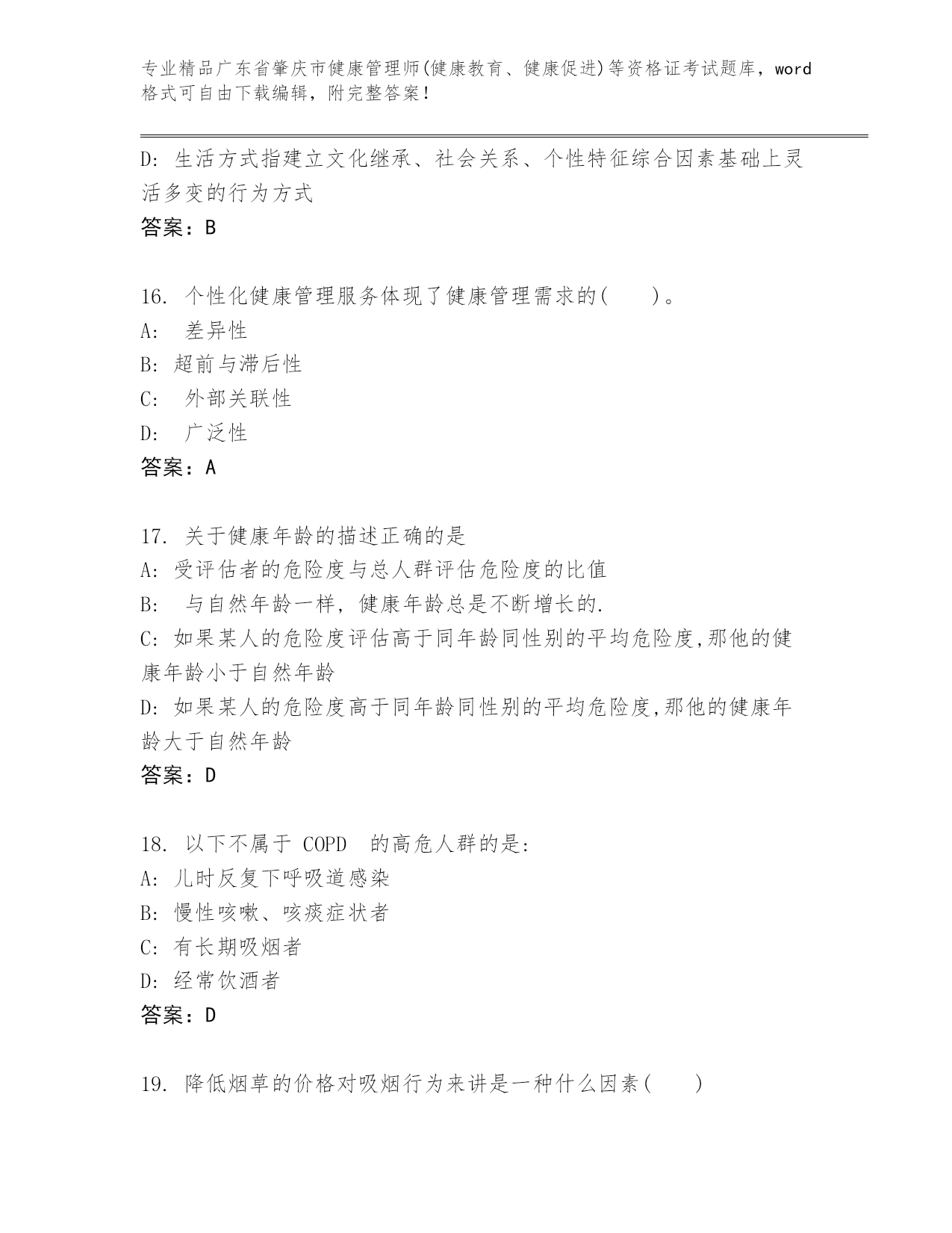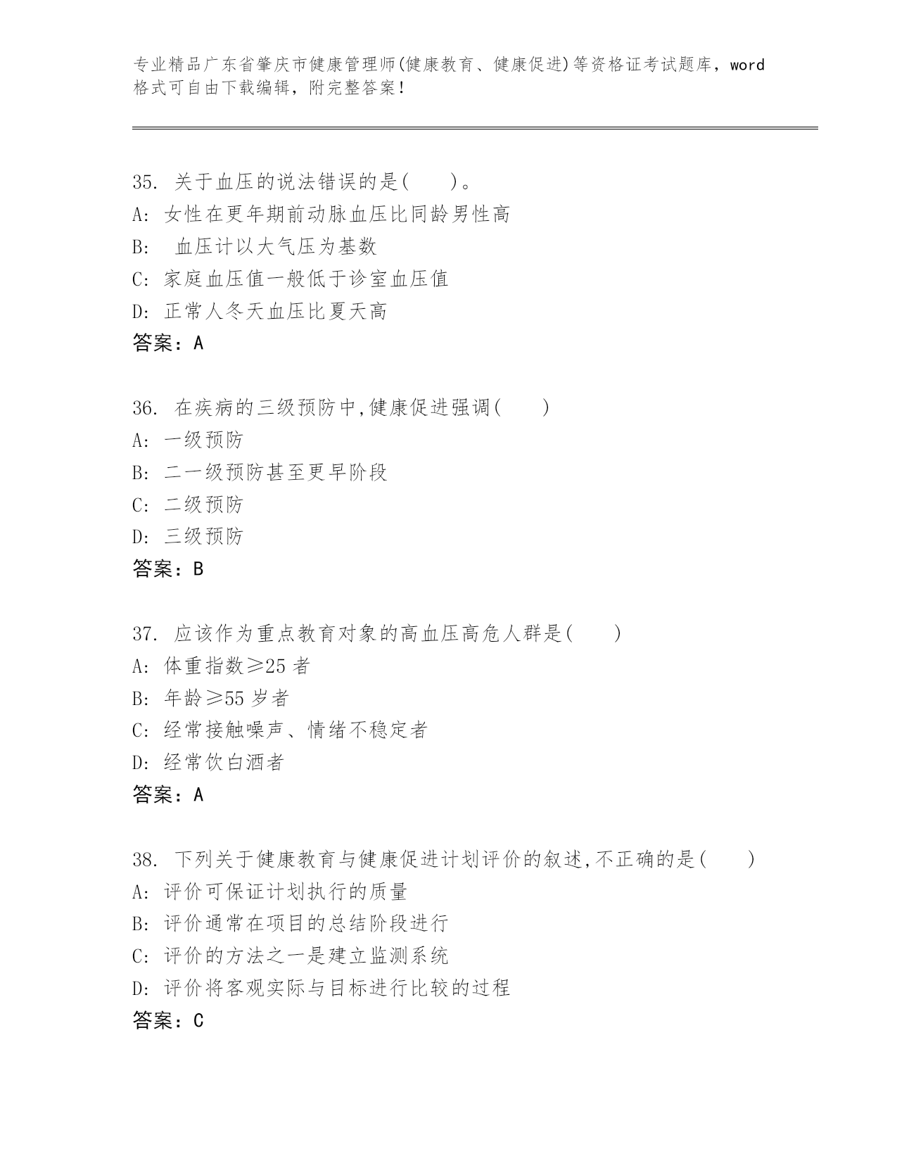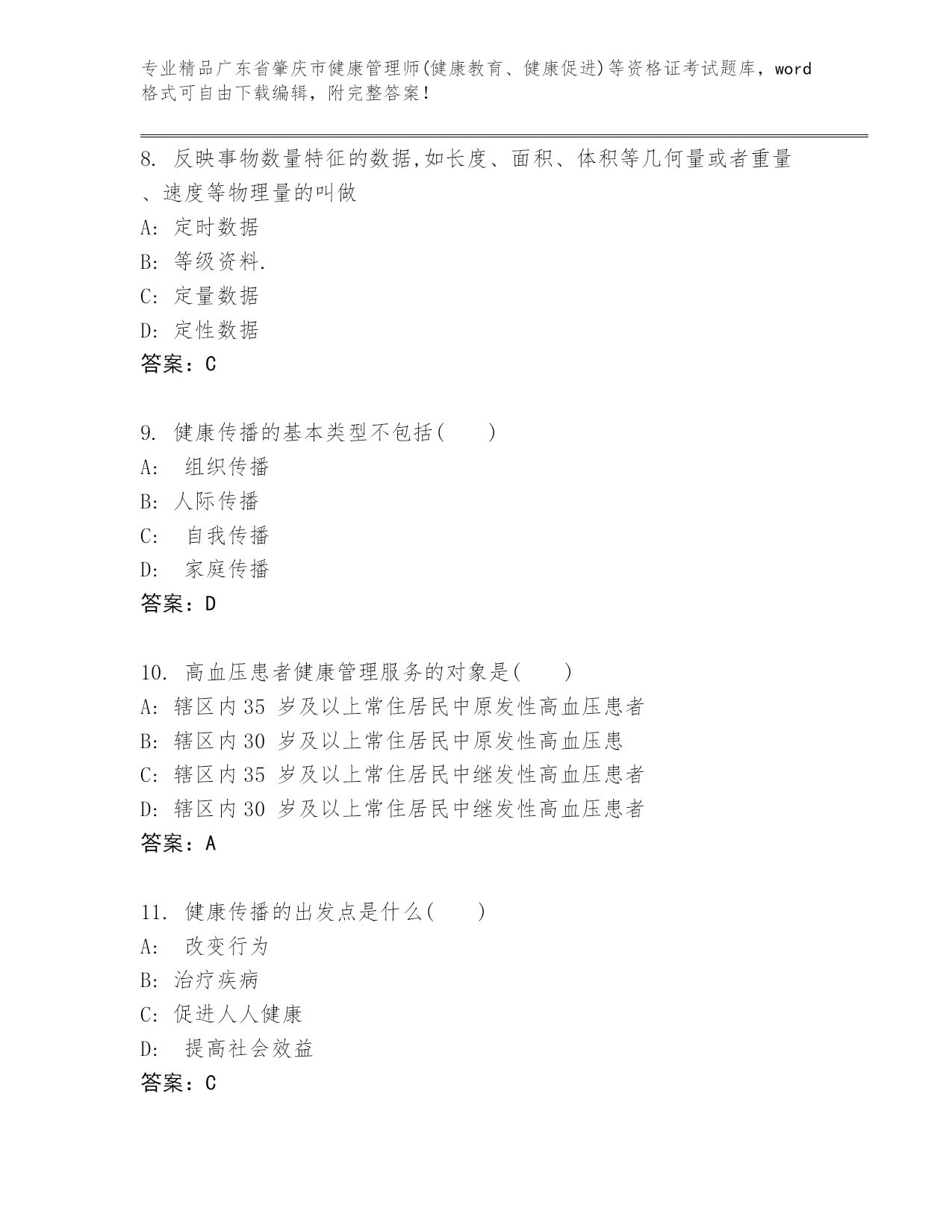 内部培训广东省肇庆市健康管理师(健康教育、健康促进)等资格证考试大全及答案(夺冠).docx