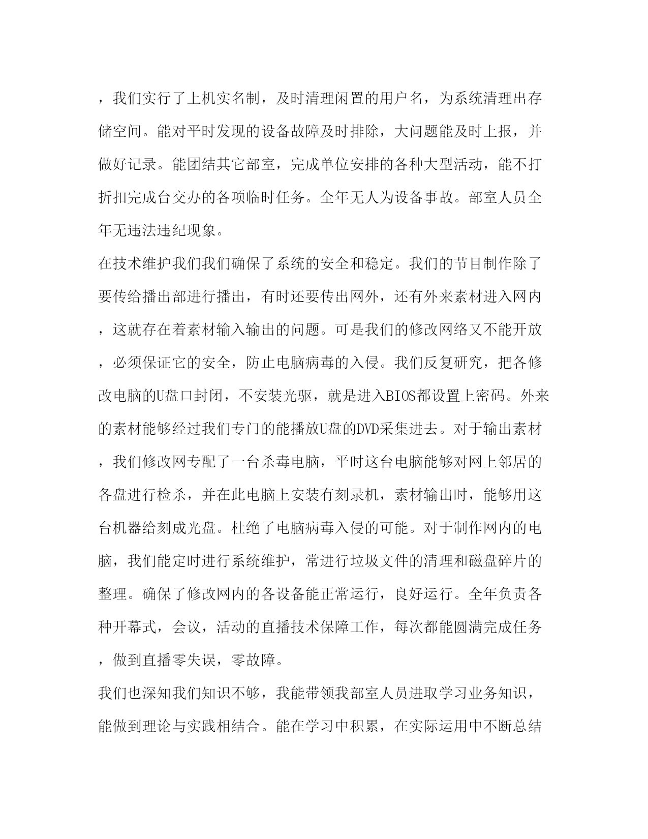 PAGE此资料由网络收集而来,如有侵权请告知上传者立即删除。资料共分享,我们负责传递知识。技术部工作总结,优选1合集技术部工作总结优选15篇由会员“莎莎莎”整理投稿精心推荐,小编希望对你的学习工作能带来参考借鉴作用。篇1:技术部工作总结篇2:技术部工作总结篇3:技术部工作总结篇4:技术部工作总结篇5:技术部工作总结篇6:技术部工作总结篇7:技术部工作总结篇8:技术部工作总结篇9:技术部工作总结篇10:技术部工作总结篇11:技术部工作总结篇12:技术部工作总结篇13:技术部工作总结篇14:技术部工作总结篇15:技术部工作总结在过去的一年中,生产部在上级领导的大力支持和各部门的密切配合与部门全体员工的共同努力下,顺利地完成了公司下达的各项生产任务。在此,我对生产部门一年来的工作予以回顾和总结,同时祈愿我们公司明年更完美!1、产品产量方面过去的一年里,生产部门力挑重担,在产品型号多变、批量小、技术资料不完善的情景下,进行了一些工艺上新摸索与试验,克服了材料质量波动,客户质量标准大幅提高、订单紧且不稳定等困难,共完成成品灯具入库9500余盏(路灯1331盏、隧道灯153盏、庭院灯93盏、景观灯1629盏、室内灯6354盏),光源成品59586只。为到达客户在产量和质量上的要求,生产部合理调整生产计划,利用有限资源,及时满足客户交期,为今后公司产品多元化打下了良好的基础。2、产品质量方面本人今年1-8月负责品质工作,在该部门期间,除带领部门员工把好产品进货、制造、出厂各环节质量关以外,另编制施行了质检各环节的质量记录,留下了真实全面的质量检验数据,申报取得了6种产品的ce认证,协作完善了各款产品的铭牌、说明书,及时向营销部供给了各种产品的检验及测试报告等。接手生产管理工作以后,在完成生产任务的同时,我们生产部门同样高度重视产品质量,严把生产工序的每一个质量控制关,做到每月成品交验合格率都在98%以上。虽负责的工作主角进行了转换,但我们始终坚信产品质量是设计、生产出来的,只要生产部的每一个员工都有高度的质量意识,并付诸于生产操作的每一环节中,产品质量将会稳步提高,从而实现成品交验合格率逐年递增0.2%的目标。3、机器设备管理方面在过去的`一年里,公司各种生产设备运转完好率到达100%,尚未出现一齐因设备原因影响生产的事故。能够说是因为大部分设备都是新设备,故障率较低。但我们设备维护还是按照iso9000设备维护保养的相关文件进行定期检修保养,全年安排且有相应的文件记录,有力地保障了设备的正常运转,进而确保了生产运行的稳定。4、人员管理方面201x年9月,是我接手生产部管理工作的开始,也是生产任务逐月递增的开始,在管理人员变动和生产线员工极不稳定的情景下、这无疑于给生产管理带来极大压力,但就在这样的压力推动下,本部门各车间还是坚定地进行员工岗前岗中培训,保证新进员工的顺利进入岗位主角,做到基本胜任轮换岗位工作。在那里我得感激几位车间主管和各个车间一线的组长,是他们的鼎力支持和配合才使得生产部有了如今的良好局面。5、安全生产方面在过去的一年里,生产部门将安全生产纳入日常的管理工作之中,做到随时对各车间员工进行安全知识的教育,并监督检查及时消除各车间存在的安全隐患,同时加强了对生产现场劳动纪律和劳保用品佩戴的监管,保证了生产车间的有序运行,全年度未发生一齐人身伤害、设备损坏之类的安全事故。生产部门在过去的一年里虽然做了很多的工作,也取得了必须的成绩,但也还存在较多的问题,主要有以下方面的不足:1、质量管理方面1).员工质量意识淡薄:目前在部分员工身上还存在质量事不关己,漠然置之的态度,工作总结《技术部年终工作总结范文》。这与培养员工质量意识,树立质量危机感,落实产品质量职责制做得不好,不到位有很大关系。2).缺乏全员参与质量管理理念:我们此刻缺乏的就是全员参与质量意识,有时会出现一个真空地带,谁都管谁都不管的局面(72w投光灯打胶和144w投光灯包装就是一个很好的例子),并且在有的时候,生产现场有管而执行不到位的现象。我个人感觉,有时候靠一个部门来管这种事,想做的尽善尽美是不可能的,这必须与我们全体员工以及各级管理人员的进取配合是密不可分的,没有员工的配合和管理人员的齐抓共管是完成不了的。3).缺乏质量记录意识:产品在整个制造过程中,如何完整记录产品过程质量状态显得尤为重要,如果有了完善的质量记录,它将为产品设计更改、技术分析、数据查寻等供给准确的依据。虽然这方面在逐步改善,但离我们质量管理体系所要求的写我们所做,做我们所写,记我们所做的还差较远!由于我们是订单式生产模式,订单的连续性怎样直接影响到生产管理的诸多方面,有时任务不足也致生产现场管理松懈,员工的精神面貌和紧张感缺乏,在这方面