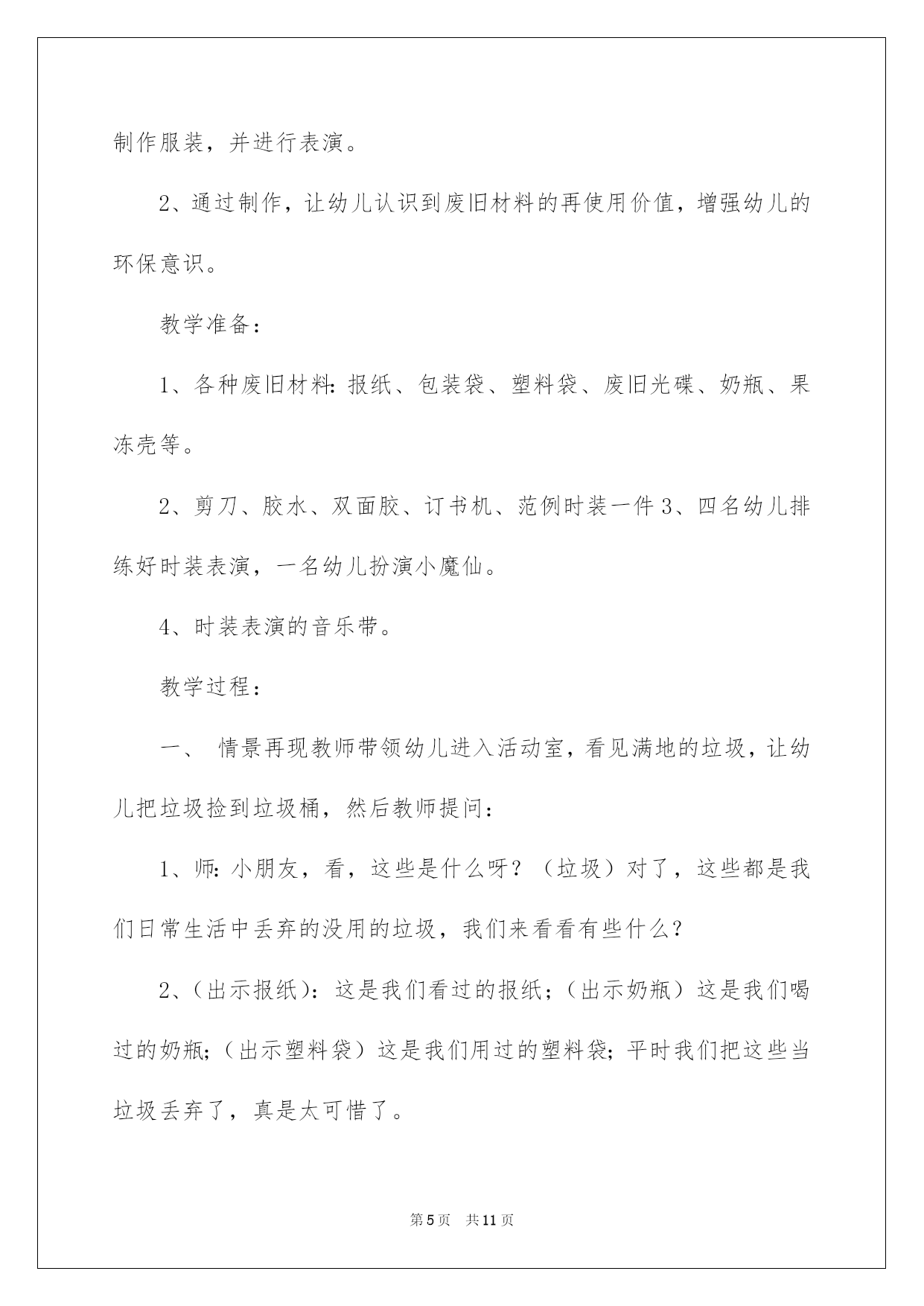 第PAGE\*Arabic\*MERGEFORMAT11页共NUMPAGES\*Arabic\*MERGEFORMAT11页第PAGE\*MERGEFORMAT11页共NUMPAGES\*MERGEFORMAT11页第PAGE\*MERGEFORMAT11页共NUMPAGES\*MERGEFORMAT11页第PAGE\*MERGEFORMAT11页共NUMPAGES\*MERGEFORMAT11页第PAGE\*MERGEFORMAT11页共NUMPAGES\*MERGEFORMAT11页第PAGE\*MERGEFORMAT11页共NUMPAGES\*MERGEFORMAT11页第PAGE\*MERGEFORMAT11页共NUMPAGES\*MERGEFORMAT11页第PAGE\*MERGEFORMAT11页共NUMPAGES\*MERGEFORMAT11页第PAGE\*MERGEFORMAT11页共NUMPAGES\*MERGEFORMAT11页第PAGE\*MERGEFORMAT11页共NUMPAGES\*MERGEFORMAT11页第PAGE\*MERGEFORMAT11页共NUMPAGES\*MERGEFORMAT11页2022环保教案3篇环保教案3篇作为一名优秀的教育工作者,就不得不需要编写教案,教案是备课向课堂教学转化的关节点。那么问题来了,教案应该怎么写?以下是我帮大家整理的环保教案3篇,欢迎阅读,希望大家能够喜欢。环保教案篇1一.设计意图:瓶子在幼儿的生活中随处可见,我们常常看见幼儿抱瓶子、滚瓶子、推瓶子、踢瓶子等,他们对用各种各样的瓶子玩游戏亲睐有加。同时,我们把废弃的各种瓶子用于游戏,可让幼儿知道废旧物可以再利用的道理,从而增加幼儿对环境保护的意识。因此,我从幼儿的兴趣出发,挖掘出瓶子对幼儿的教育价值和潜能,设计了本次活动。二、活动目标:1.引导幼儿在各种形式的活动中获得多方面的知识经验,感受玩瓶子所带来的乐趣。2.培养幼儿运用已有的知识经验,解决在活动过程中出现的问题的能力。3.鼓励幼儿乐于参与操作、游戏等活动,能大方地与同伴和老师交往。4.知道废旧物还可以用来玩游戏,初步培养幼儿的环保意识。三.活动准备:1.知识经验准备:A:幼儿已经有过各种玩瓶子的经验。B:学会演唱歌曲《大猫小猫》。2.教、学具准备:A:各种透明瓶子人手一个,瓶子上贴1~4个圆点,瓶盖、珠子若干:纸棍,系有皮筋的彩带若干;自制房子2个。B:背景音乐和歌曲磁带《大猫小猫》。四.活动过程:一.导入活动,引发幼儿的兴趣。教师:今天天气真好,猫宝宝们,你们想不想跟着妈妈一起做游戏啊?1.选瓶:幼儿选择一个喜欢的瓶子做好朋友。2.瓶子操:幼儿抱着瓶子(没有瓶盖)做操:变高、变矮、变胖、变瘦。二.引导幼儿和瓶宝宝做各种游戏,启发幼儿运用已有的知识经验,解决在活动过程中出现的问题。1.喂瓶宝宝吃豆(珠子)。引导幼儿先正确点数瓶子上圆点的数量,然后根据圆点的数量往瓶子里投放相应数量的豆子(珠子)。2.盖瓶盖。引导幼儿为瓶子选择合适的瓶盖盖好,并通过彩色的瓶盖认识一些基本的颜色。3.瓶乐会。鼓励幼儿自由摇晃瓶子,初步感知用力的大小和声音的大小的关系,尝试用瓶子来演奏歌曲《大猫小猫》,提高幼儿用力的大小要与歌词相匹配。三.游戏活动送瓶宝宝回家。启发幼儿想出各种送瓶宝宝回家的方法,并大胆地尝试游戏,最后把瓶宝宝送回它们的家里。活动小结:选择的活动内容贴近幼儿的生活,符合孩子的年龄特点,整个活动游戏化,符合幼儿身心发展特点,易于幼儿在轻松愉快的气氛中接受。环保教案篇2设计意图:环境问题已成为现代社会普遍关心的问题,人类每天都要产生大量的垃圾这其中包括生活垃圾工业危废医疗垃圾其他固废(核废料等)我们每个人都有不同的身份,但有一个身份是相同的,那就是:垃圾制造者;每天有很多事情被我们重视,但有一件事却常常被忽视,那就是:每天都在生产垃圾。于是开展了此次活动《我们是地球环保服装设计师》。环保是当今最关注的一个问题,环保必须从小孩抓起,所以这个活动主要是以各种废旧材料来让孩子动手操作,让孩子真正感受到废旧物品再利用的重要性,提高幼儿的环保意识。从小对幼儿进行环境教育,其意义十分深远。教学目标:1、通过剪、贴、穿等技巧,让幼儿利用身边的各种废旧生活垃圾制作服装,并进行表演。2、通过制作,让幼儿认识到废旧材料的再使用价值,增强幼儿的环保意识。教学准备:1、各种废旧材料:报纸、包装袋、塑料袋、废旧光碟、奶瓶、果冻壳等。2、剪刀、胶水、双面胶、订书机、范例时装一件3、四名幼儿排练好时装表演,一名幼儿扮演小魔仙。4、时装