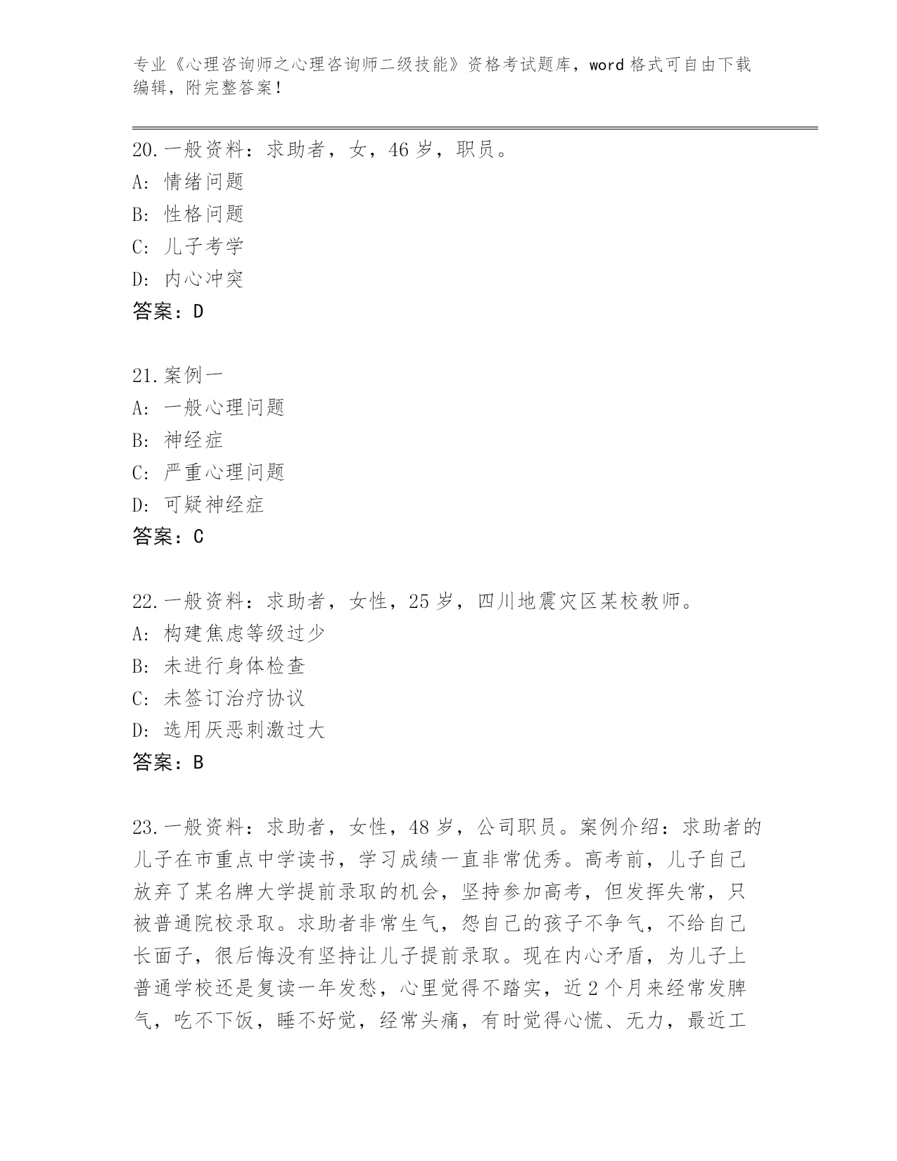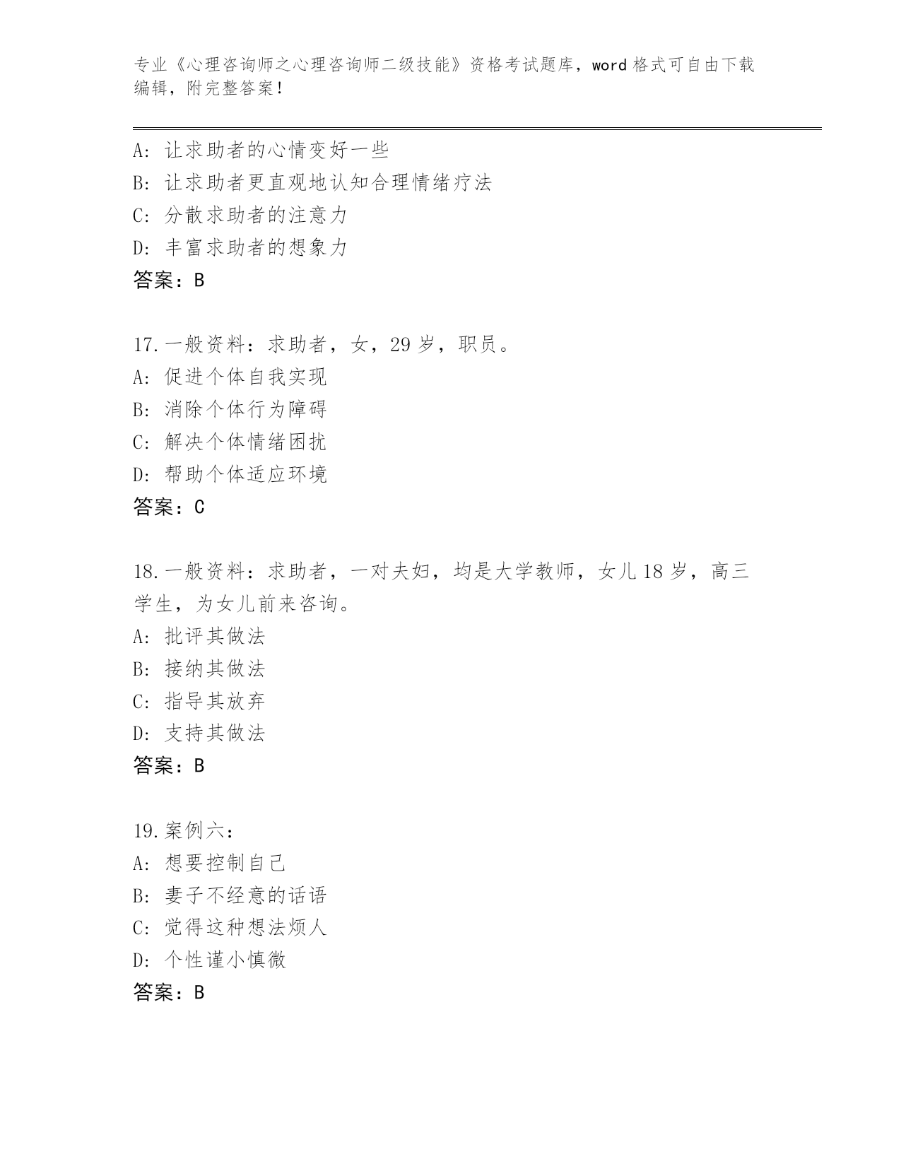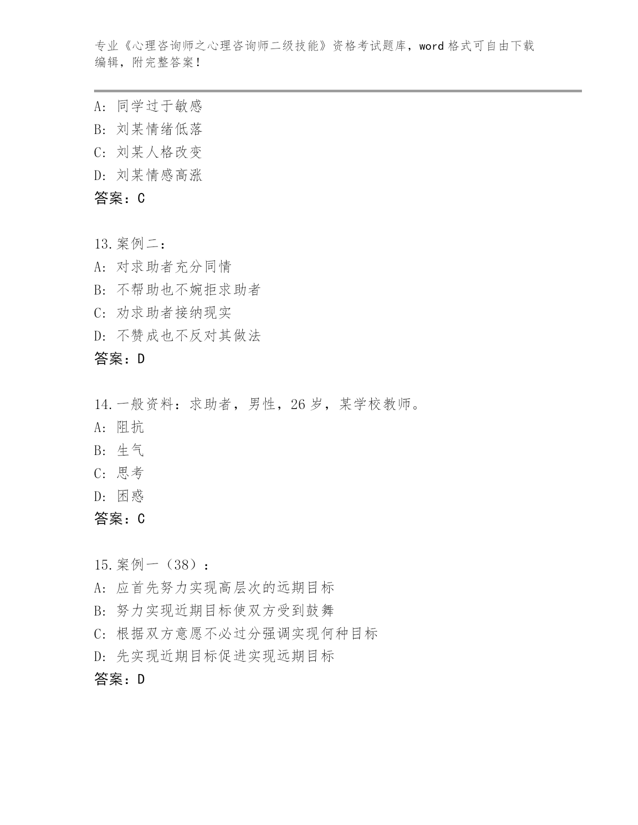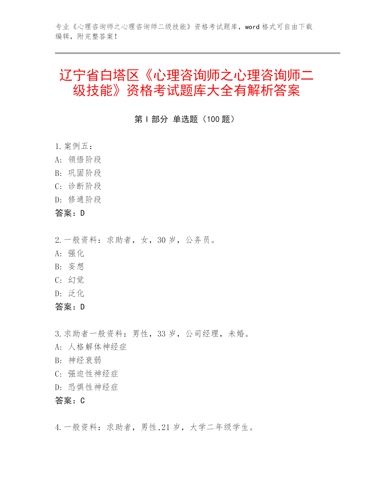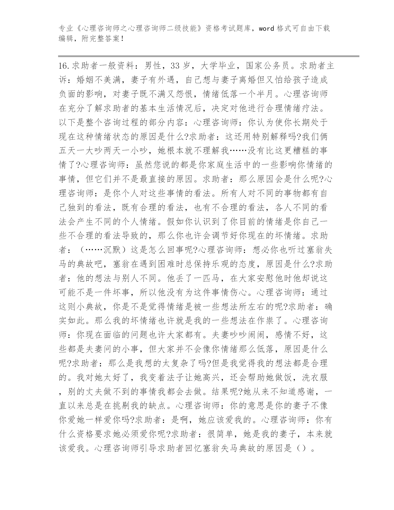 辽宁省白塔区整理《心理咨询师之心理咨询师二级技能》考试内部题库(有一套)
