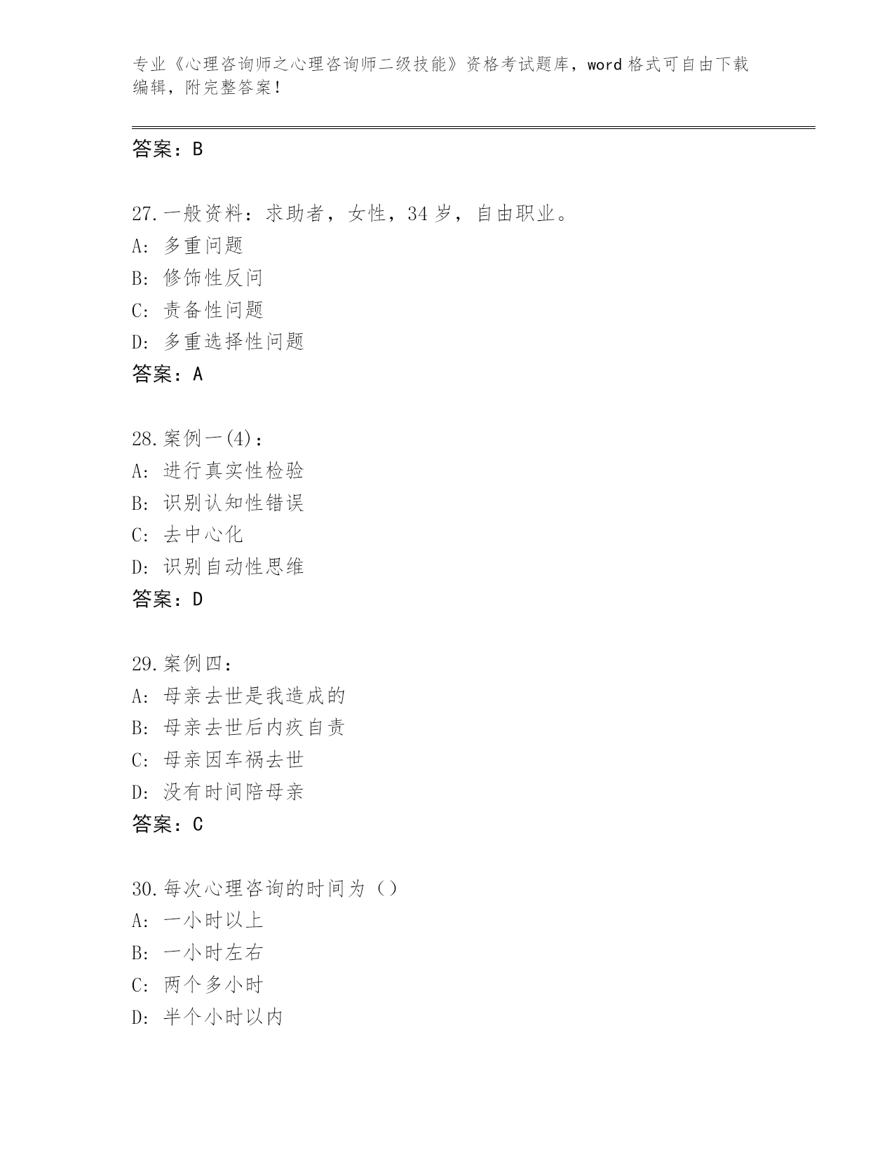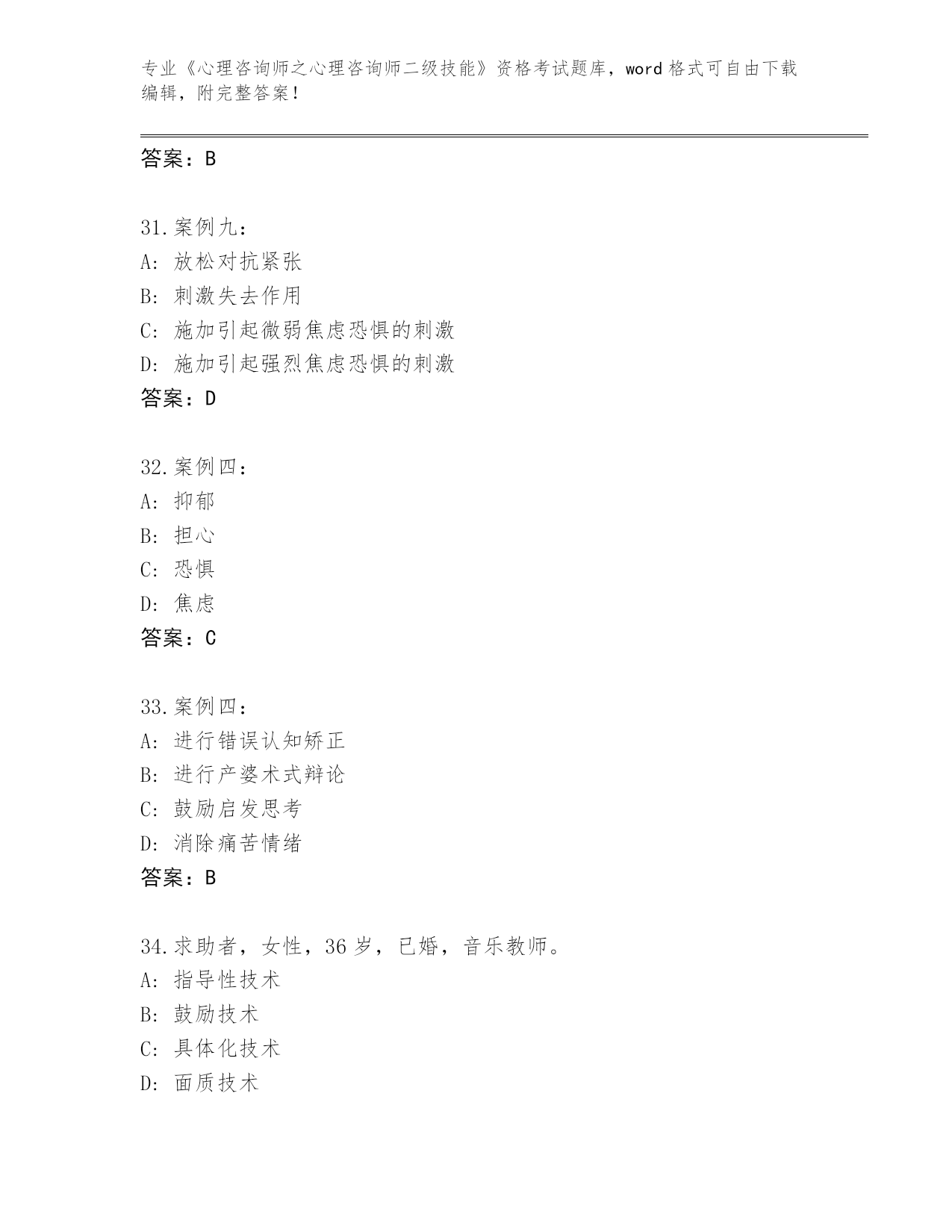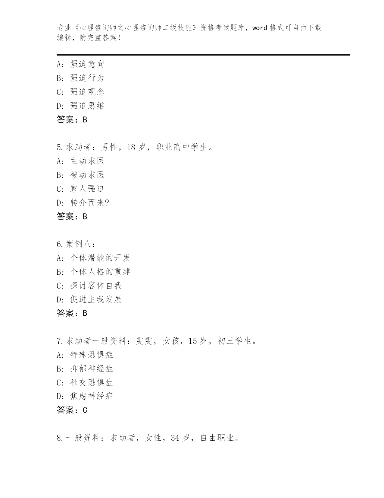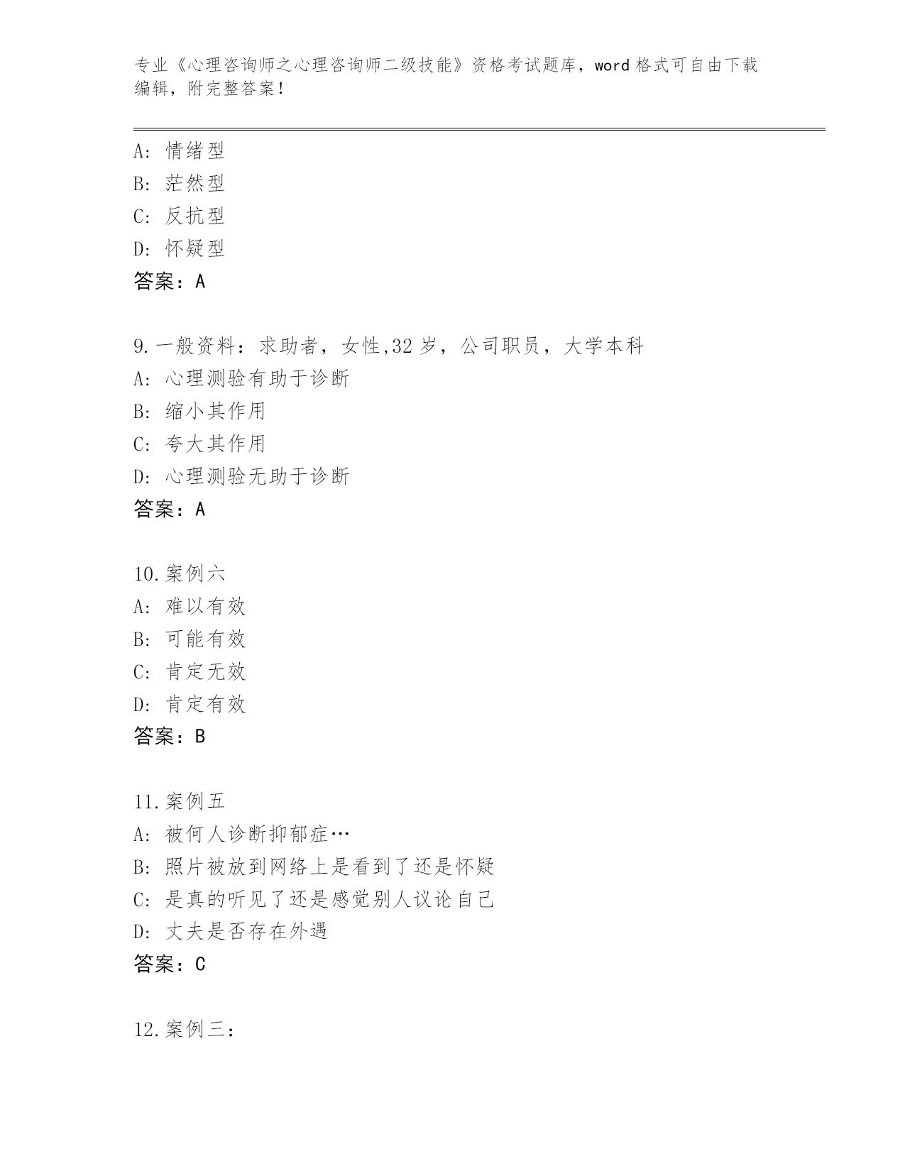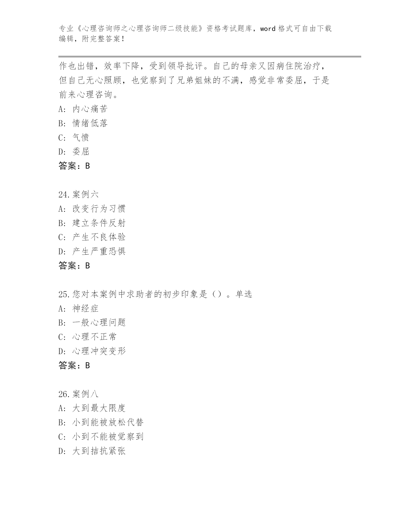 辽宁省白塔区整理《心理咨询师之心理咨询师二级技能》考试内部题库(有一套)