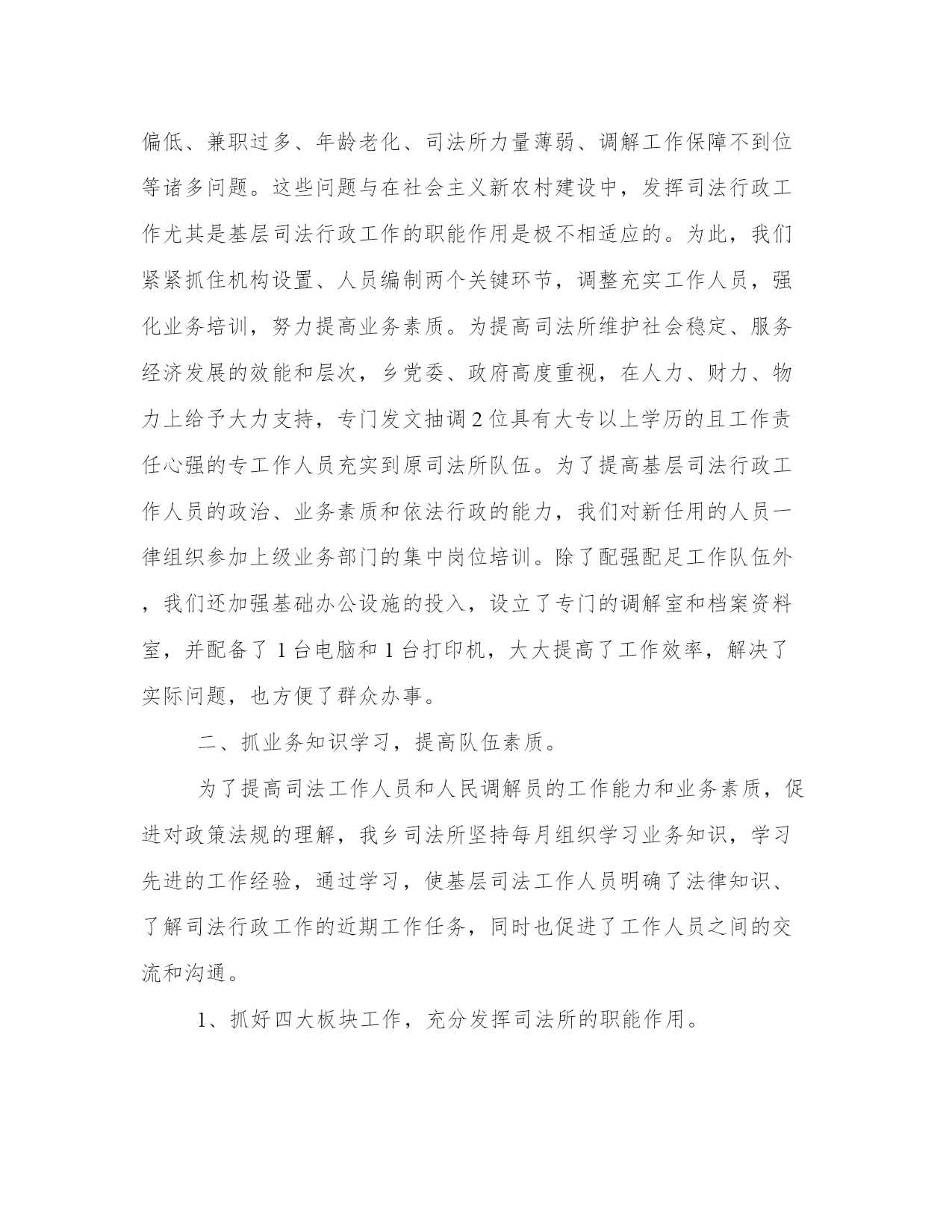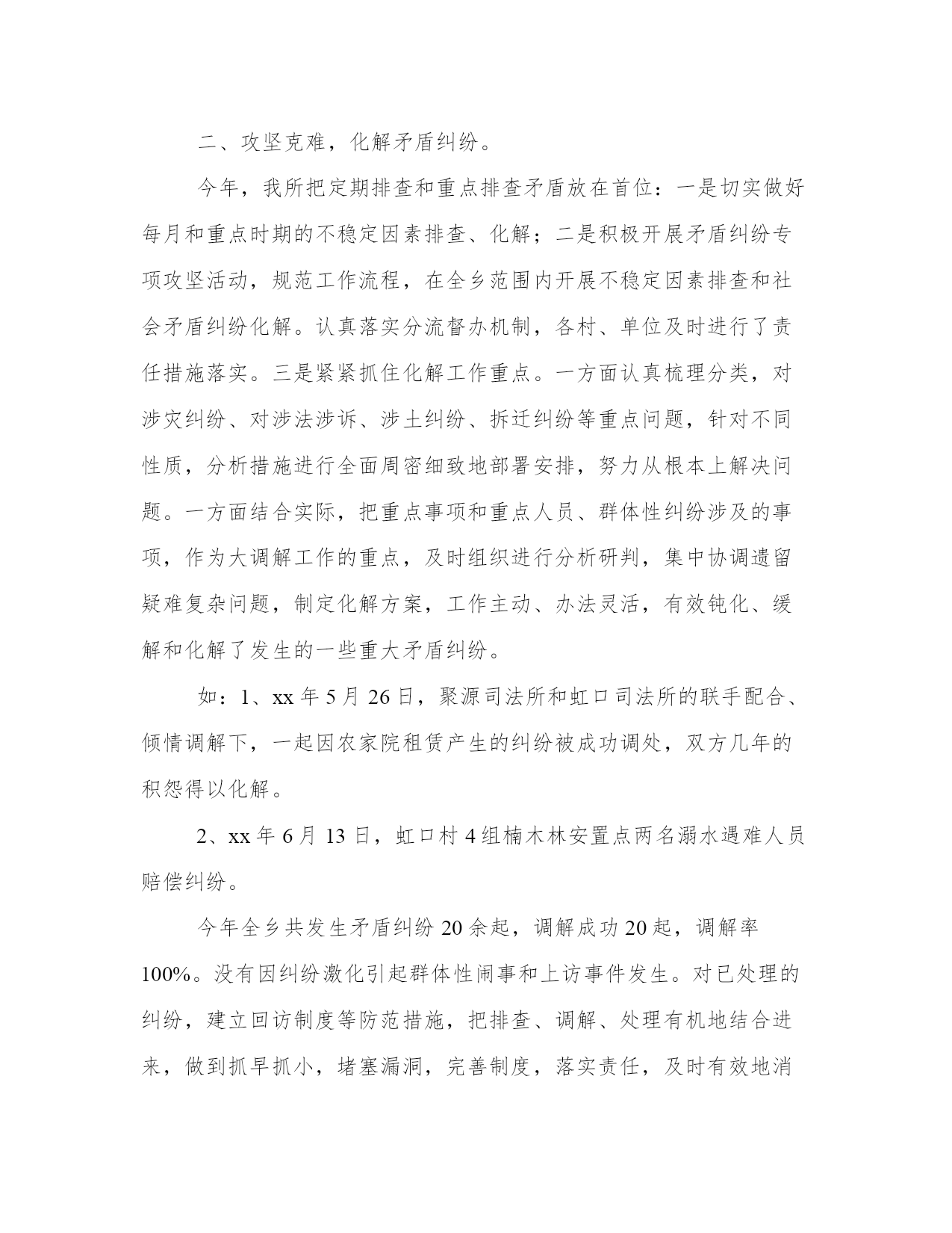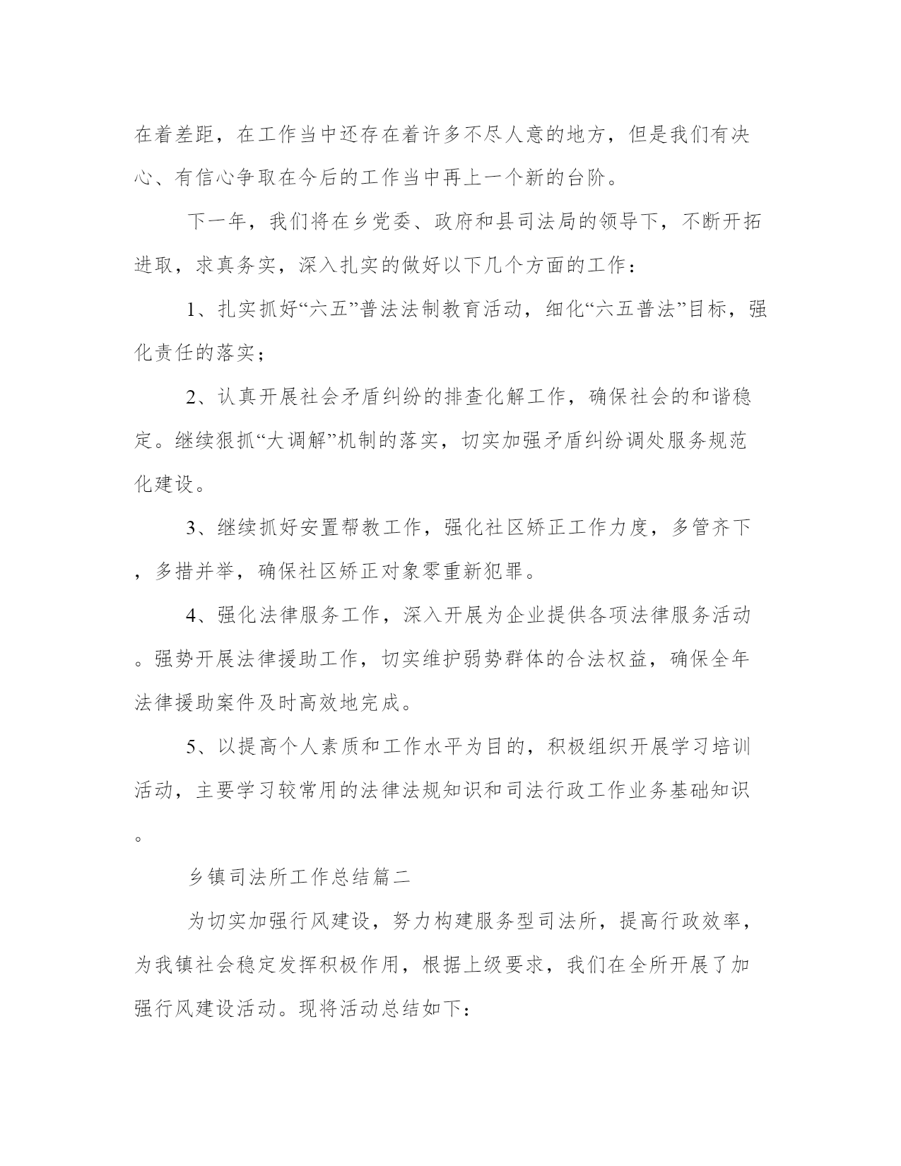 乡镇司法所工作总结(汇总14篇)总结是对过去一定时期的工作、学习或思想情况进行回顾、分析,并做出客观评价的书面材料,它可使零星的、肤浅的、表面的感性认知上升到全面的、系统的、本质的理性认识上来,让我们一起认真地写一份总结吧。什么样的总结才是有效的呢?那么下面我就给大家讲一讲总结怎么写才比较好,我们一起来看一看吧。乡镇司法所工作总结篇一2xxx年以来,在县司法局的正确领导下和乡党委、政府的大力支持帮助下,我所紧紧围绕和服务于乡党委、政府中心工作,坚持以邓小平理论和“三个代表”重要思想为指导,坚持落实科学发展观,深入贯彻党的十七大、十七届五中六中全会精神,认真学习落实上级司法行政工作会议精神,在县司法局的领导和乡党委、政府的有力支持下,紧紧围绕稳定、改革、发展这一主题,强化基础工作,落实责任措施,在维护基层社会稳定中较好地发挥了“第一道防线”的作用,为建设“平安象形”,构建和谐社会做出了突出贡献。现将一年来的工作总结如下:一、抓好建设力度,努力推动司法所规范化建设。在新的历史时期内,各种社会矛盾出现了多发性、多样化的状况。因此,基层调解组织所遇到的民间矛盾纠纷也日益复杂,调解难度日益加大。而我们的基层调解队伍却长期存在着人员变动过快、素质偏低、兼职过多、年龄老化、司法所力量薄弱、调解工作保障不到位等诸多问题。这些问题与在社会主义新农村建设中,发挥司法行政工作尤其是基层司法行政工作的职能作用是极不相适应的。为此,我们紧紧抓住机构设置、人员编制两个关键环节,调整充实工作人员,强化业务培训,努力提高业务素质。为提高司法所维护社会稳定、服务经济发展的效能和层次,乡党委、政府高度重视,在人力、财力、物力上给予大力支持,专门发文抽调2位具有大专以上学历的且工作责任心强的专工作人员充实到原司法所队伍。为了提高基层司法行政工作人员的政治、业务素质和依法行政的能力,我们对新任用的人员一律组织参加上级业务部门的集中岗位培训。除了配强配足工作队伍外,我们还加强基础办公设施的投入,设立了专门的调解室和档案资料室,并配备了1台电脑和1台打印机,大大提高了工作效率,解决了实际问题,也方便了群众办事。二、抓业务知识学习,提高队伍素质。为了提高司法工作人员和人民调解员的工作能力和业务素质,促进对政策法规的理解,我乡司法所坚持每月组织学习业务知识,学习先进的工作经验,通过学习,使基层司法工作人员明确了法律知识、了解司法行政工作的近期工作任务,同时也促进了工作人员之间的交流和沟通。1、抓好四大板块工作,充分发挥司法所的职能作用。一是抓好普法工作,全力推动依法治理取得新进展。扎实开展普法教育工作。今年以来我们围绕党委政府的中心工作,以“法律进学校”、“法律进乡村”、“法律进企业”、“法律进机关”、“法律进社区”、“法律进单位”为载体,促进“法律六进”活动全面、深入、务实发展。联合其他相关部门组织人员深入到各单位各部门开展以普法为主题的法律宣传咨询活动,通过广泛开展宣传教育活动,宣传相关法律法规,取得了良好的效果;开通法律咨询电话。在接待中,公开法律咨询电话。不断提高工作人员的专业素质,尽可能满足人民群众的法律需求。一年来共解答法律咨询500人次。2、是抓好人民调解工作,全力确保社会稳定。建立健全了乡、村、组的三级人民调解网络。成立了由分管领导任组长的人民调解工作指导委员会,建立了由司法所长为主任、各单位、各部门负责人和法律工三是抓好法律服务工作,全力助推地区发展。1、积极开展学习,明确责任。组织司法所工作人员积极参加各种法制宣传、学习活动。明确了司法所在开展主题活动的具体内容和责任。2、积极推进法律服务行业的规范化管理。今年以来我所根据上级部署和要求,大力开展了法律服务所和法律工3、积极开展帮扶弱势群体法律援助工作。法律援助工作已成为我所亮的重点工作,近年来每年完成的法律援助任务无论从数量还是质量在都能称得上较高的水平,真正做到有援必援,应援尽援。今年以来我所已承办的法律援助案件,得到了当事人的一致好评并取得良好的社会反响。4、把服务经济建设作为法律服务的出发点和落脚点。实践证明法律服务无禁区,不断探索、改进、拓展法律服务新领域,强化自身服务水平。我所现已全面完成上级下达的2xxx年的各项法律服务指标。四、抓好社区矫正和帮教安置工作,全力预防重新犯罪。自安置帮教和社区矫正工作启动以来,我们认真按照上级部门的相关规定和要求,积极规范安置帮教和社区矫正工作的各项制度,层层落实责任,确保安置帮教和社区矫正工作不重不漏。为预防和减少重新违法犯罪现象的发生,我乡司法所工作人员配合监狱、劳教所共同对社区矫正人员和刑释解教人员在管理上狠下功夫气力。在帮助刑释解教人员从事个体经营,自主就业、落实责任田的基础上,积极协调有关职能部门,提供优惠政策,拓