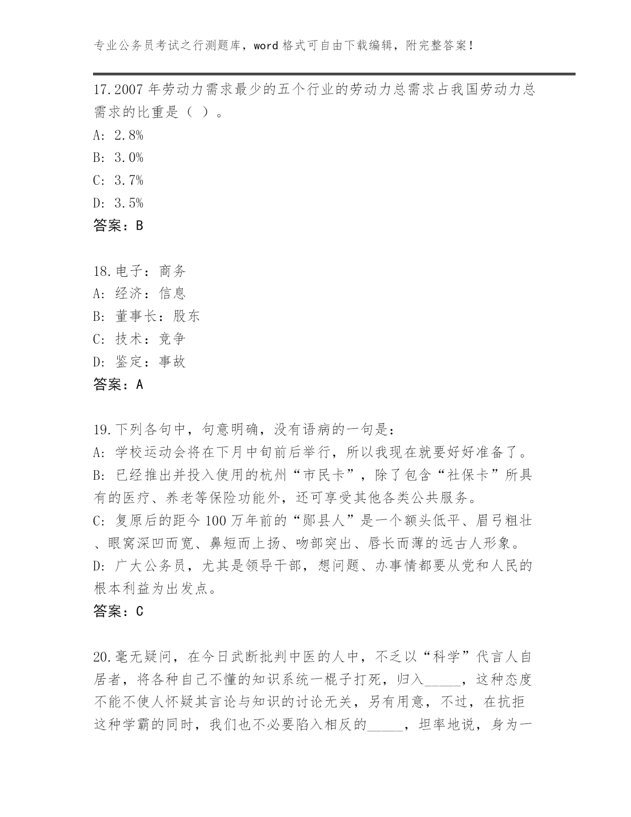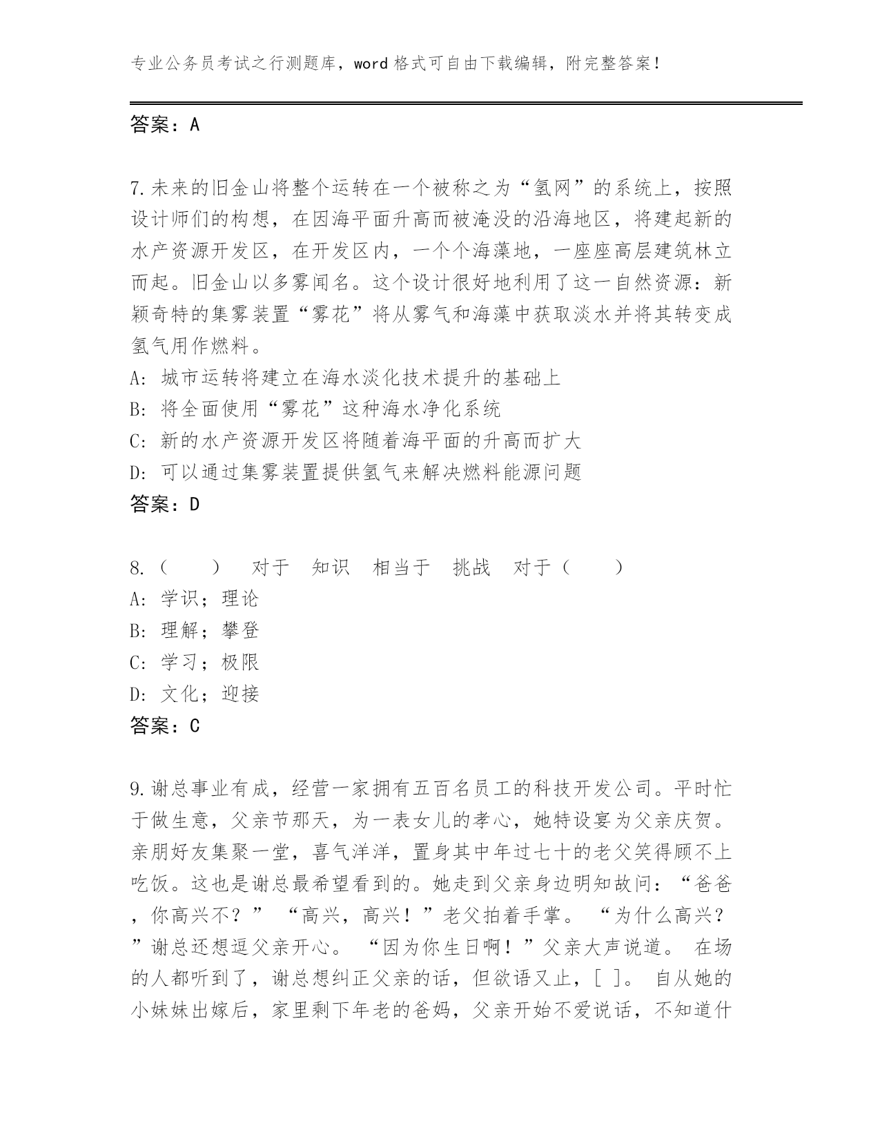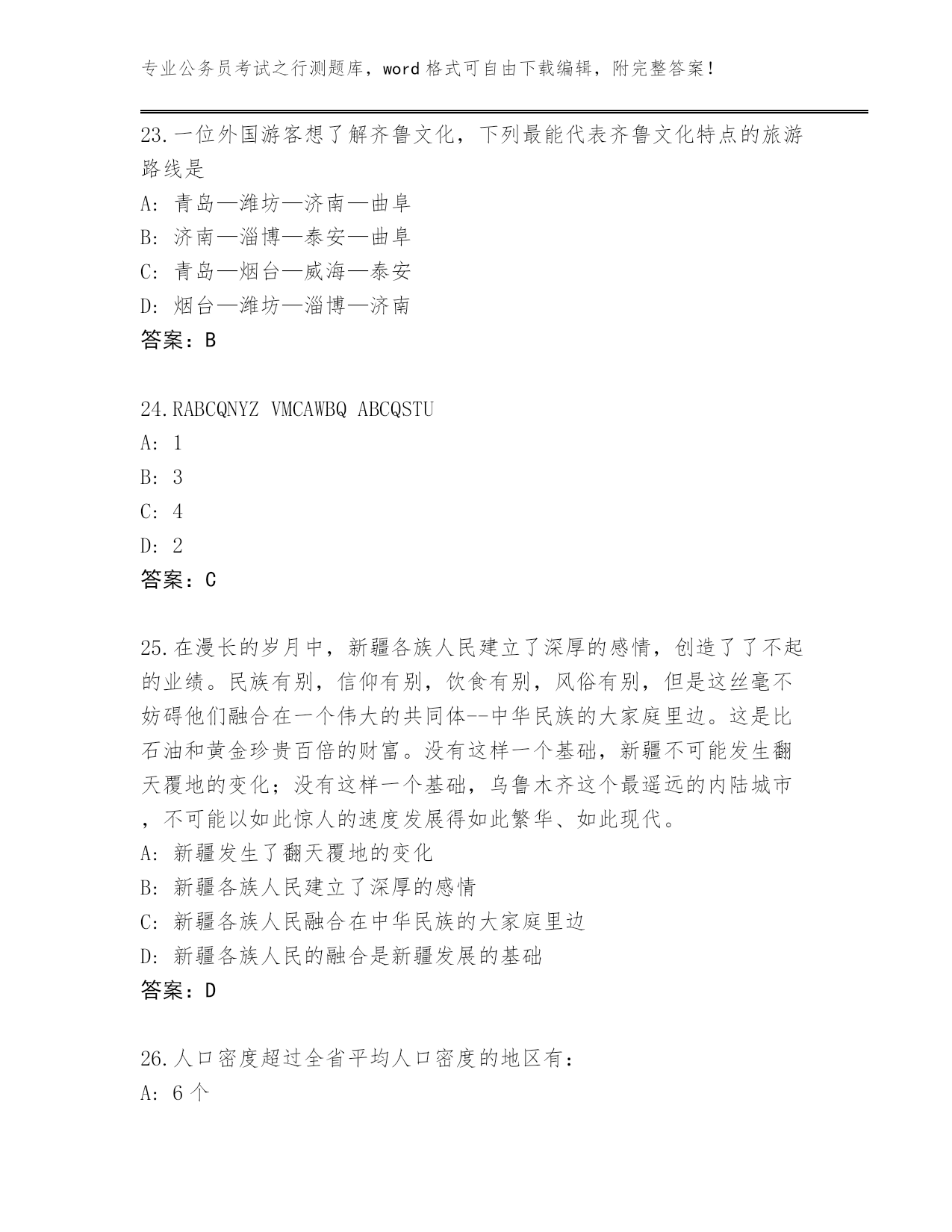 2023-24年浙江省岱山县公务员考试之行测题库(考点梳理)