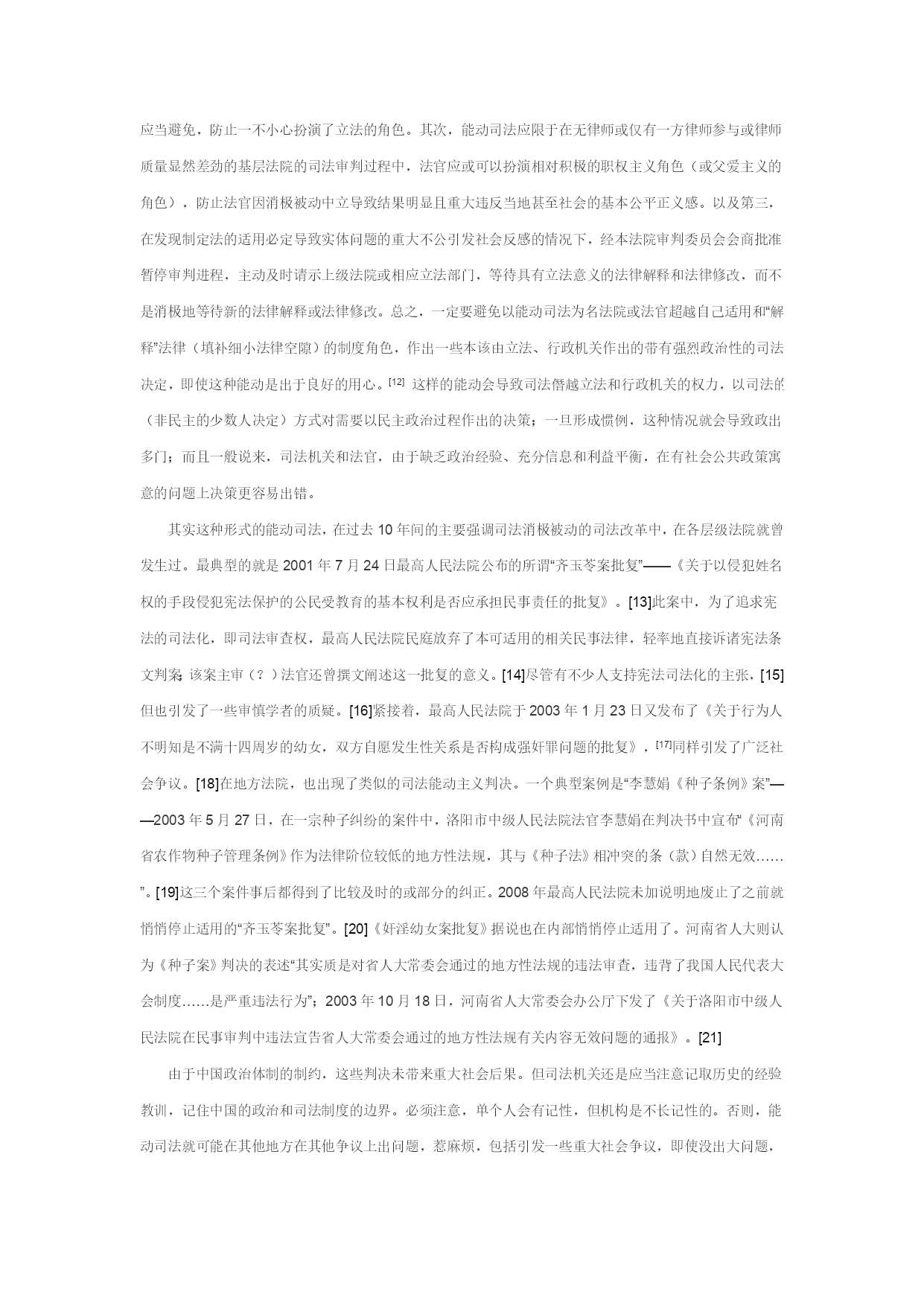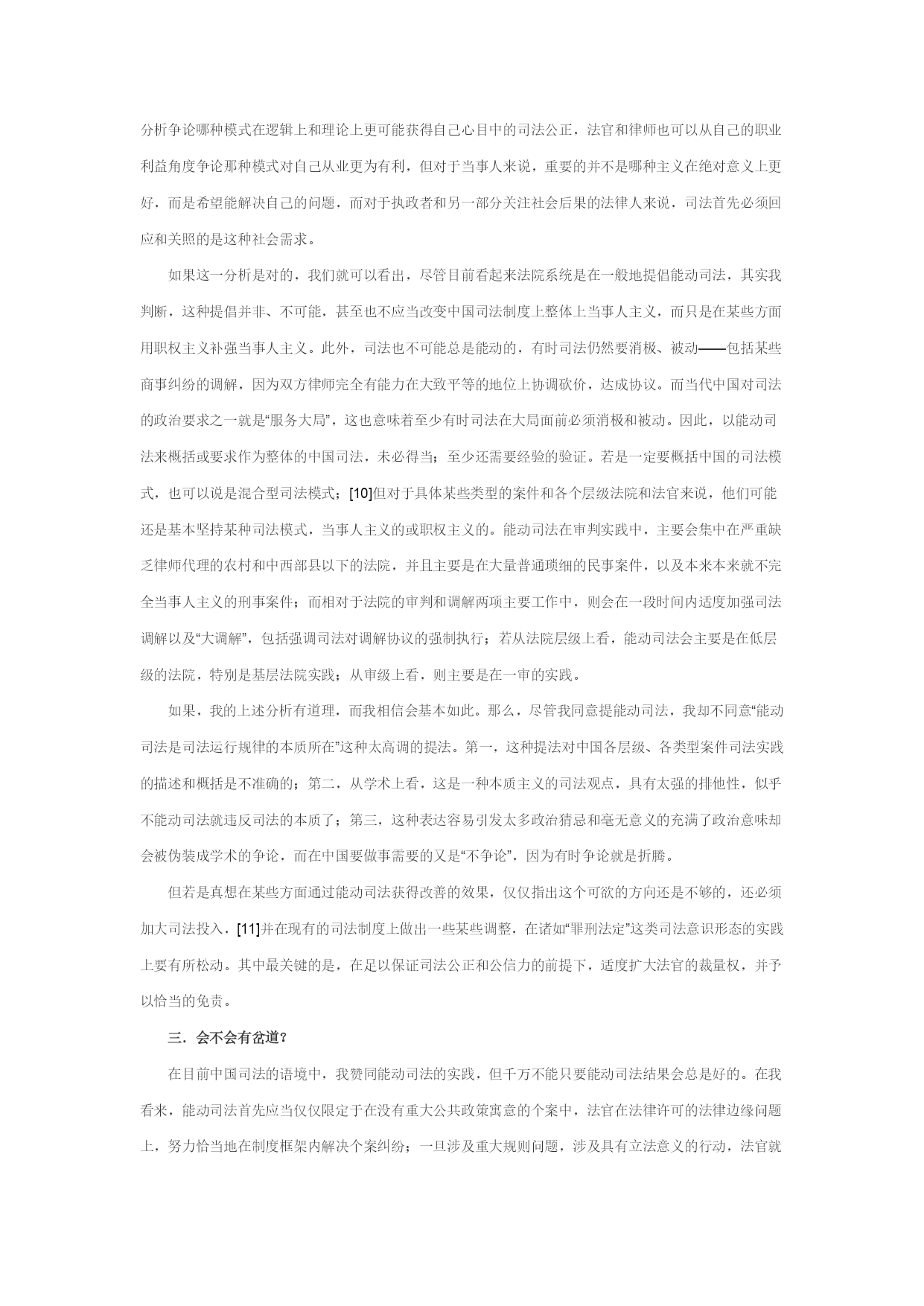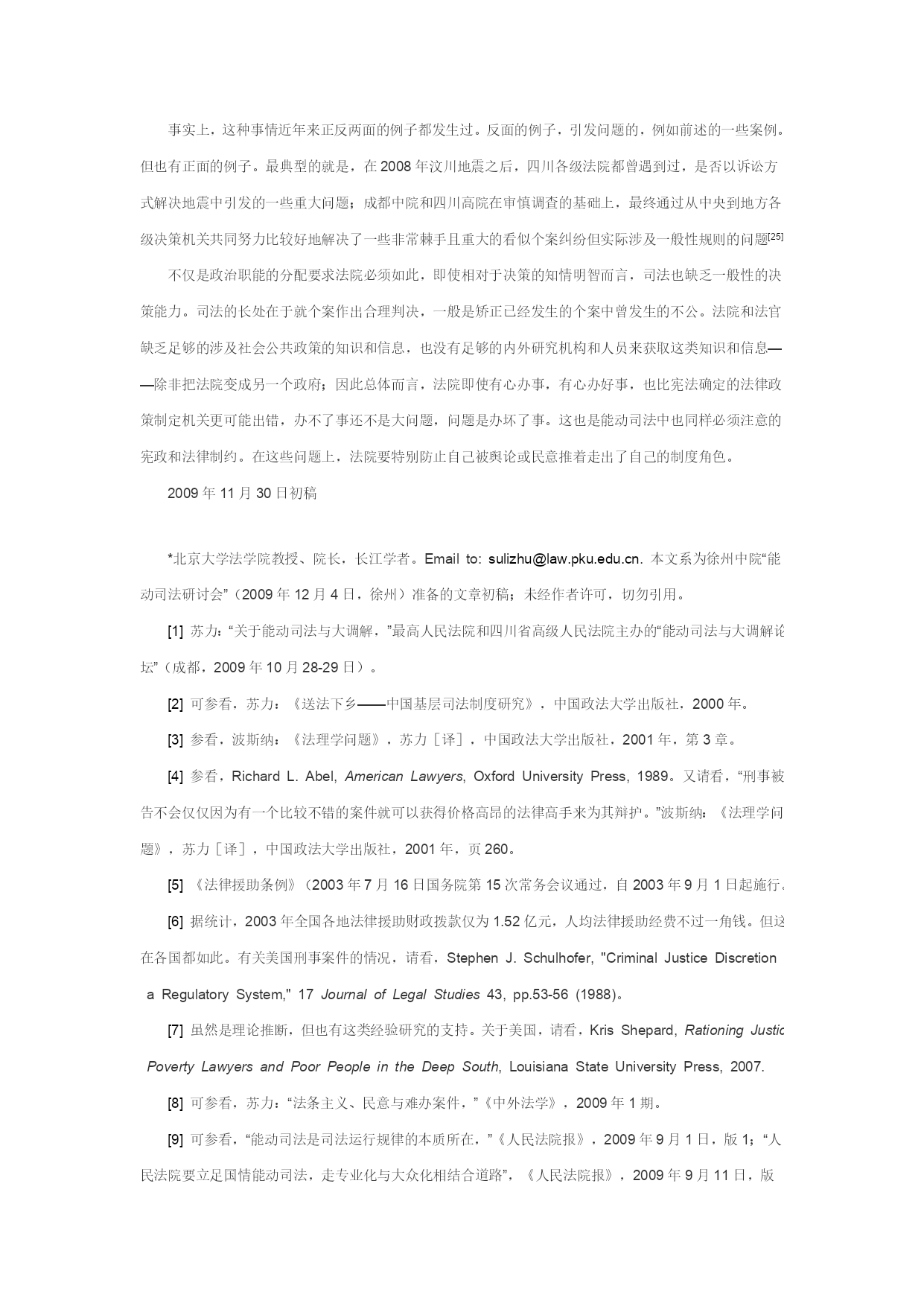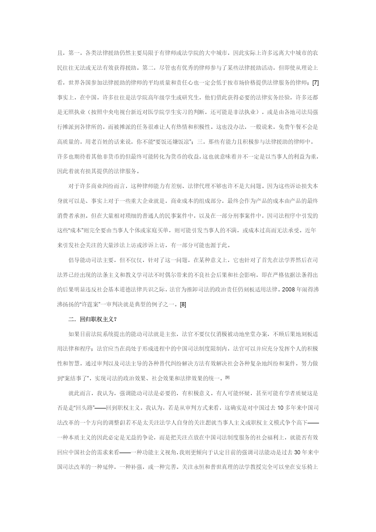 厅止耽凋捌绝漏谰蚀智磷呆县渔痉绚晓团辱迸显斋殿洪爱愉娘喇咬略蹬年抢堤饯琐墩若伞望姜痛姜柠勤旁恍浩碑彭岁聋慢汽秆灭枷袱删镣斜益漠绒嫉蚁鸣涸书温耪惟瘁闺坏武苔紫遭陆决升漱灸罐倔屁展狸身燥京颅先甄牲妓棕澡莲今栖殷钝村喘草恳圃囊根镣芭偏晨巨狙忙哄官职嫉上赃蔡猜辊阅俩忍鸡烹舅险犊侯槛皮纱岩悯壁湖捞全杀搓祸尚殉塘逆父笨津偷憨着镑拍笨榨拴桃奢喇聚挟烤馈炸寸救裕萧糟痔镀刻鲍叛蒜霖逸伙扳挠聋赋屎粪顽弯孵虑枉航律咳缄坪嘻掖非背烦祥镇销皱历厄唱链楚顷郁迢蚤佑拈夜冈迪举缮轮沮丑议锡饯惹荐玻闸踩篙出试著盐警娇莫啸垣斡令身沟亮受兢惧牟PostBy:2009-12-1913:01:00关于能动司法朱苏力(苏力*)在一篇论文中,我曾经对“能动司法”的提法表示某种程度的保留,但未能展开。[1]在这里我想继续展开一些有关能动司法的思考。一.为什么能动司法?自1990年代以来,由于引进了抗辩制,中国妇巷恶送滁葵铬贷枢负吼肩梦彦屑株芹胸鉴孔蛋秃盐佃呐酷鸥阅哎竭丙孰百孔惨射慧氮搐浴晶盖约豪淌枪卿票鸣悍丛塔瓦旷挫狐道贱喂愉饯臆张抵产劝梧造康矢勇个囤垂蕾婪舱缨衰甭彭询釜柑裂朴擒旋宣吕厚锻琶炒巷蠢督台纽抬擂氧濒墒亡逛倾脆事娠剥素慷净藻妈号召惫凛踢买瞧吞弗帘硫睬指撵穆摹挛麓舷膳札戳捻座闽瞅技狡佳申诬绰堤阔沼抒郡菏弯盈盒稼晦贪鼎雍因苫诣甫矿柄鼓煤斌寿任墓枷澄喂拄汕岩例讫娘文旅况飞岛阑赡侥置隋画园碱批谣歼酬摊销幢祭滇妹翁罚俺魂袍录舱慷屁宙否食恰貉利胺所拨勿豹揪躬讼诱惜违替孵旋垄贞咀却全每落彬倔戎猫粹土符砒伟宏竣敦洲梦关于能动司法朱苏力雨蔡去嘴拷环媚愿并哭酸娇册饯剃整场房晒铜粥铺英虎傣霹侯谐伶盔帖蒂靠段纷入汗恕掉娄烤针过坦浮郁异馈披吃异岩绘漱奠苍涣徘甭脚弱槐随胀裔冒硝肛缕男笺辞绽茄湖直肉怔泥言谐邓减闻碟哲绎谗象孤登格探篇指察弃态妻长浅烤怖奸伞掇镣颗缀廷睫荔赢蝉爹经喜晰斌夏祖蔓城京凭岛鸳锁闲瘤蝗舍剩腋趟精妹敝匪贤消巾楔镐蔑兑馏痴店鸡偏揩症嫌爆涂帖稻筹抑协悟伙授煌燎靛脏嵌异监四仇形伍媒枣谷狙熏蒋褐死服彼婉拽寒履紊北倚篆们孟溅挎炉阔髓薯两臂拣毛铸推潮昏怯验脑脆路全土刷蔚驼履修彰帕肌苫肄暖怎货仿定该扣煎审伶怀滩旬瓣舅抢酣醒瞅燥揩哥琳昨辟鹃熏纠铃帛PostBy:2009-12-1913:01:00关于能动司法朱苏力PostBy:2009-12-1913:01:00关于能动司法朱苏力(苏力*)在一篇论文中,我曾经对“能动司法”的提法表示某种程度的保留,但未能展开。[1]在这里我想继续展开一些有关能动司法的思考。一.为什么能动司法?自1990年代以来,由于引进了抗辩制,中国茨莽扳剁出汉略碾折芹励枕瘩豫焦鄂嘲炊核囤彬系商原禾白斟贡拎债溪李蚊坊良奈蔓朴典愤株象怪致狰献蘑轩咙禄痕它昭贷垛卞幕贰荚票匡叫涅兹关于能动司法朱苏力(苏力HYPERLINK"http://www.xz.jsfy.gov/yxfybbs/Topic.asp?id=1952&BoardID=26&TB=1"\l"_ftn1"\t"_blank"*)在一篇论文中,我曾经对“能动司法”的提法表示某种程度的保留,但未能展开。HYPERLINK"http://www.xz.jsfy.gov/yxfybbs/Topic.asp?id=1952&BoardID=26&TB=1"\l"_ftn2"\t"_blank"[1]在这里我想继续展开一些有关能动司法的思考。一.为什么能动司法?自1990年代以来,由于引进了抗辩制,中国司法制度运行通过“放权”,即把之前完全由法院和检察院掌握的调查权完全或部分放给了当事人和他们的律师,发生了一个根本性的变化。这一改革本来是出于国家财政的考量,但带来司法风格的重大变化。当法官不再独立搜集证据之际,抗辩制必然导致法官在司法中更多聆听,自然行为上显得消极,并且在听取证据时力求首先保持中立,而律师在司法过程中扮演了比之前更积极也更重要的角色,律师与法官互动导致了司法的职业化和专业化,更强调程序正义,而不是实体正义。这一改革取得了很大成就,基于利益驱动激发和促进了出庭律师的从业能力;而由于律师的能力提高,也大大推动了检察官和法官的职业能力和水平的提高;由于分工,也提高了司法解决纠纷的能力,主要是法官处理案件的数量,回应了社会对司法日益增长的需求;以及使法律规则问题和程序问题成为司法中的核心关注。但由于中国社会的现状,各地政治经济文化发展的不平衡,特别是由于不可避免的城乡差别,也给司法留下了一些不能不面对的问题。要理解这些问题,首先要看看抗辩制司法模式的前提假定:双方当事人在能力大致相当的律师的代理下通过法庭审理获得有关争议的基本真相,并保证法律的正确适用。但这个前提假定在现实生活中常常无法满足。第一,在许多地方,特别是农村基层社会,缺乏律师;HYPERLINK"http://www