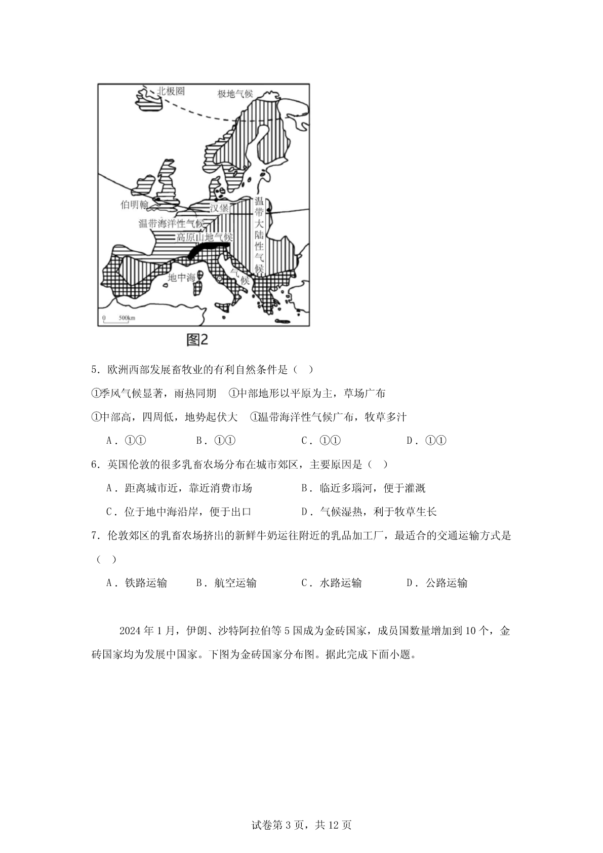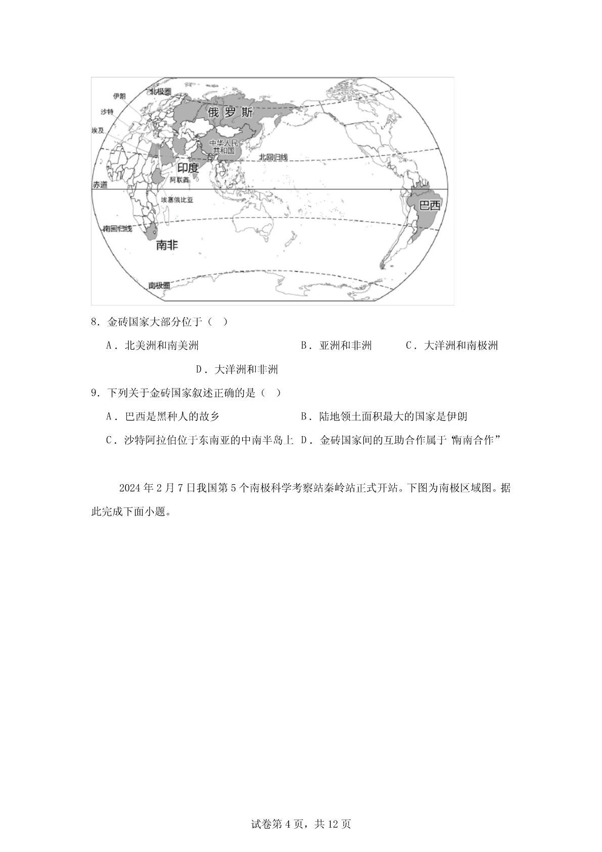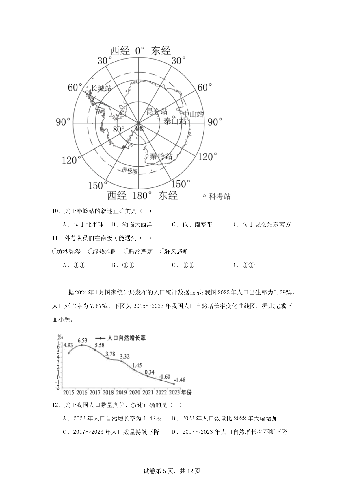 【中考真题】2024年吉林省长春市中考地理试卷(附答案)