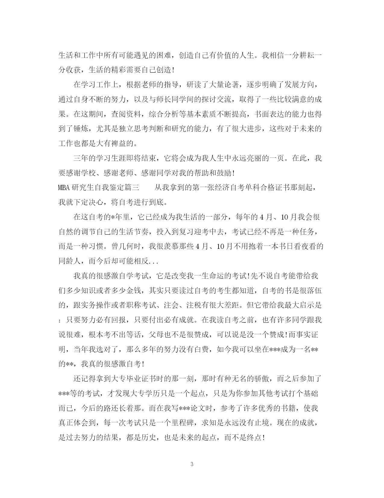 此资料由网络收集而来,如有侵权请告知上传者立即删除。资料共分享,我们负责传递知识。PAGEPAGE4MBA研究生自我鉴定MBA学位是一种注重复合型、综合型人才培养的学位,是能力培养重于知识传授的学位。学习了MBA的你要怎么去写MBA研究生自我鉴定呢?下面由本小编精心整理的MBA研究生自我鉴定,希望可以帮到你哦!MBA研究生自我鉴定篇一本学期即将结束,通过这一学期的学习,我感觉我自己懂得了许多,不论是学习、生活、工作,还是人生观、价值观等方面都得到了极大地提高。本学期主要是专业课的学习,使我更明白了经济管理这一专业的重要性及应用领域,为我今后参加工作做了指引,增加了学习、工作的信心。下面从以下几方面进行自我评价:一、学习上。通过日常的学习,使我掌握了本专业的基础知识,增加了对这一专业的兴趣爱好。在课余时间,还报考了会计证,为本专业的学习增添了色彩,为以后参加工作做了铺垫。二、工作、生活上。可以对一些社会现象、公司案例等进行一些也行的分析、理解,比以前的盲目猜测有了很大的进步。利用假期时间,找份工作,进行对掌握的基础知识进行实践,在实践中巩固、温习知识,是理论与实践相结合,丰富了日常生活。三、在人生观、价值观上。以前,感觉学习就是为了赚钱,现在明白了,学习最重要的是为了自我提高,提高自己的修养、素质,丰富自己的内心世界,培养自己的兴趣爱好,不断追求更高的理性目标,实现更大的人生意义。通过学习、教育,使我懂得了许多道理,明白了人生目标。我希望我以后会更加知理、知情,使人生观、价值观能得到更高层次的提高。MBA研究生自我鉴定篇二由就读xx大学经济管理学院开始,在进行mba学习以来,我深深地为这里浓厚的学术环境所吸引,在理论深厚、学识渊博的老师们的教诲下,我时刻以“厚德博学、以人为本”的校训为宗旨,经过二年的专业知识熏陶,和近一年对专业研究方向的深入钻研和论文撰写,我即将毕业,成为一名光荣的nust培养出来的硕士研究生。回顾艰辛而快乐的三年求学生涯,作自我鉴定如下。一、不断加强政治修养,树立正确的学习理念。nust是一所有着光荣革命传统和深刻学术造诣的高等学府,作为这里的学生,我时刻牢记“团结、献身、求是、创新”的办学理念,以一名共产党员的要求,严格要求自己,不断加强政治学习,不断改善自己的世界观、人生观和价值观,树立报效国家、服务人民、为校争光的学习理念。二、刻苦学习专业知识,发扬精益求精的学习精神。在两年的课程学习中,我保持刻苦钻研的学习态度,认真学习所有课程,克服在外地的不便,坚持来校上课,风雨无阻,从不缺课,修完了所有学分。在最后一年的论文撰写过程中,我一次次到图书馆查找资料,一趟趟向导师求教问题,坚持高标准、严要求地完成论文的写作,不辜负导师的期望和自己的汗水,以优异的成绩回报学校的培养。我在思想觉悟上对自己有较高的要求,能用科学发展观来认识世界认识社会,能清醒的意识到自己所担负的社会责任,对个人的人生理想和发展目标,有了相对成熟的认识和定位。在专业课程的学习上,根据自身专业方向的要求,有针对性的认真研读了有关核心课程,为自己的学习工作打下扎实基础;并涉猎了一部分其他课程,开阔视野,对本专业方向的应用背景以及整个学科的结构有了宏观的认识。学习成绩也比较理想。在外语方面,着重加强了阅读的训练,并取得了一定效果。由于我性格开朗,能够与不同的人接触;平易近人,容易与同学或老师和谐相处;为人忠厚老实,凡事言出必行;乐于助人,能为别人分担一些工作或生活上的忧愁;行事谨慎,凡事三思而后行;做事全力以赴,不会轻易中途而废;遇事临危不惧,能镇定地处理突发事件。在日常生活中,我十分重视锻炼身体,具有良好的心理和身体素质,体育成绩优秀,体锻达标。我兴趣广泛,热爱生活,尤其喜欢唱歌和绘画。在生活和工作中我仍有自己的不足和缺点,但我敢于改正自己、完善自己。我坚信:我拥有人生最宝贵的年轻和知识,我会用自己的热情、活力、自信和学识,来应付以后生活和工作中所有可能遇见的困难,创造自己有价值的人生。我相信一分耕耘一分收获,生活的精彩需要自己创造!在学习工作上,根据老师的指导,研读了大量论著,逐步明确了发展方向,通过自身不断的努力,以及与师长同学间的探讨交流,取得了一些比较满意的成果。在这期间,查阅资料,综合分析等基本素质不断提高,书面表达的能力也得到了锤炼,尤其是独立思考判断和研究的能力,有了很大进步,这些对于未来的工作也都是大有裨益的。三年的学习生涯即将结束,它将会成为我人生中永远亮丽的一页。在此,我要感谢学校、感谢老师、感谢同学对我的帮助和鼓励!MBA研究生自我鉴定篇三从我拿到的第一张经济自考单科合格证书那刻起,我就下定决心,将自考进行到底。在这自考的*年里,它已经成为我生活的一部分,每年的4月、10
