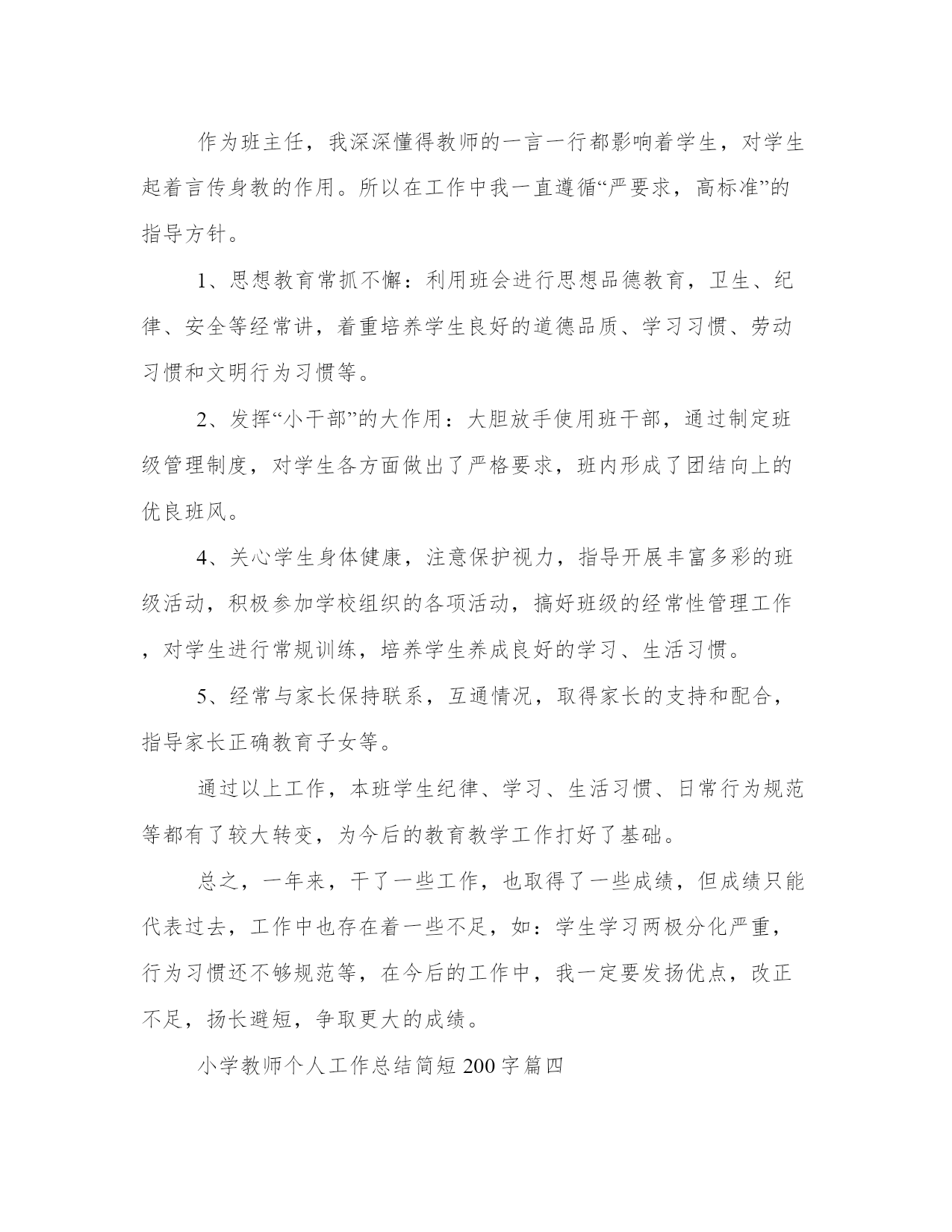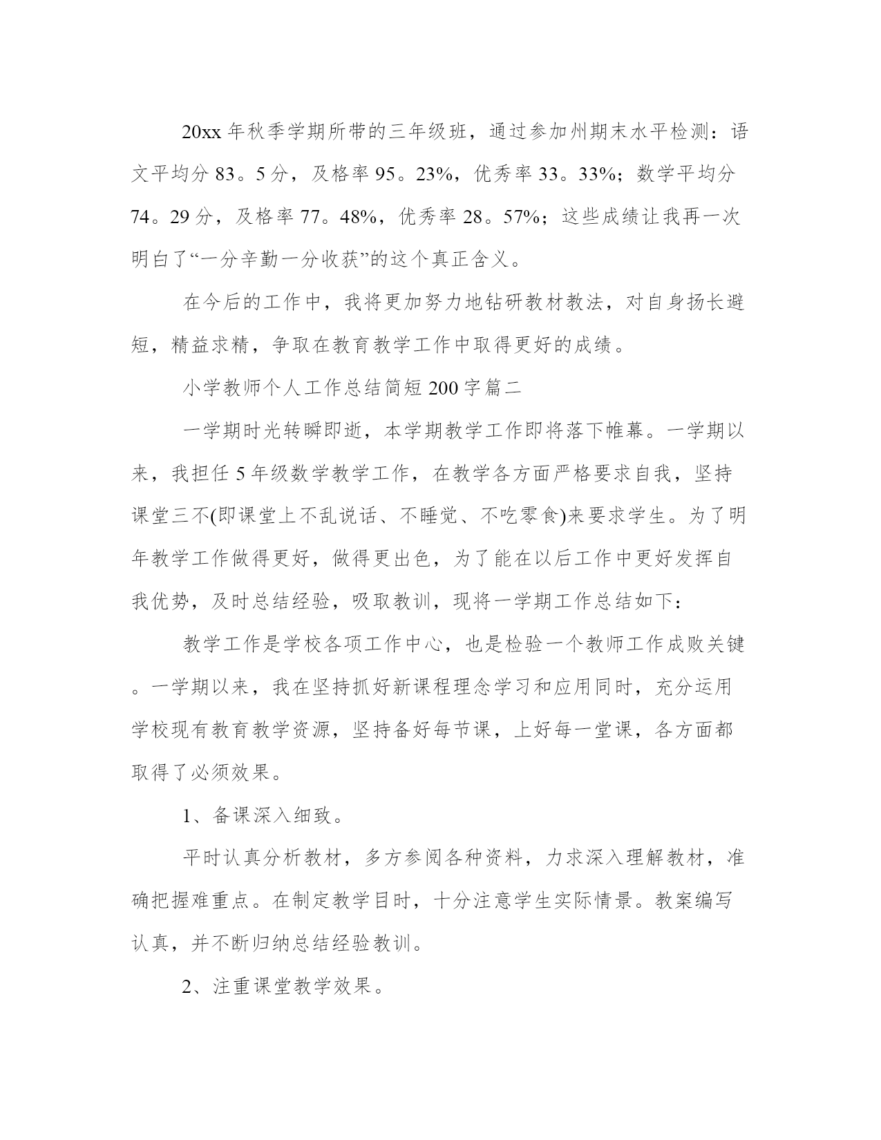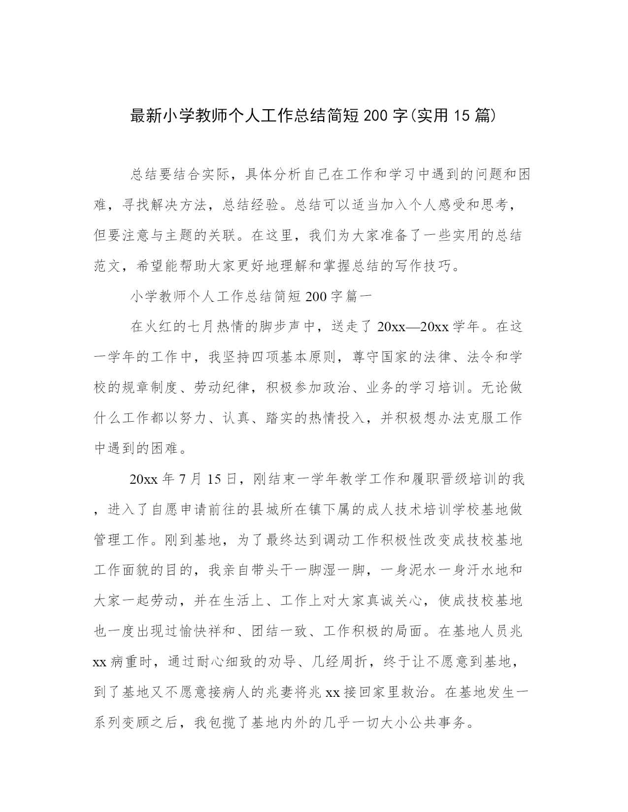 最新小学教师个人工作总结简短200字(实用15篇).docx