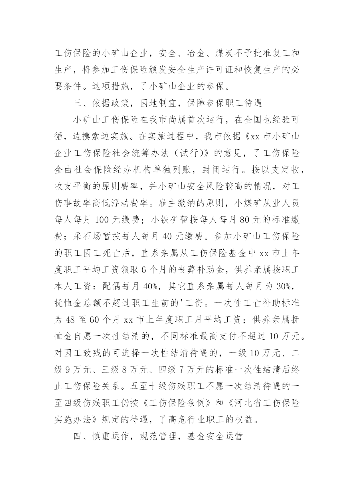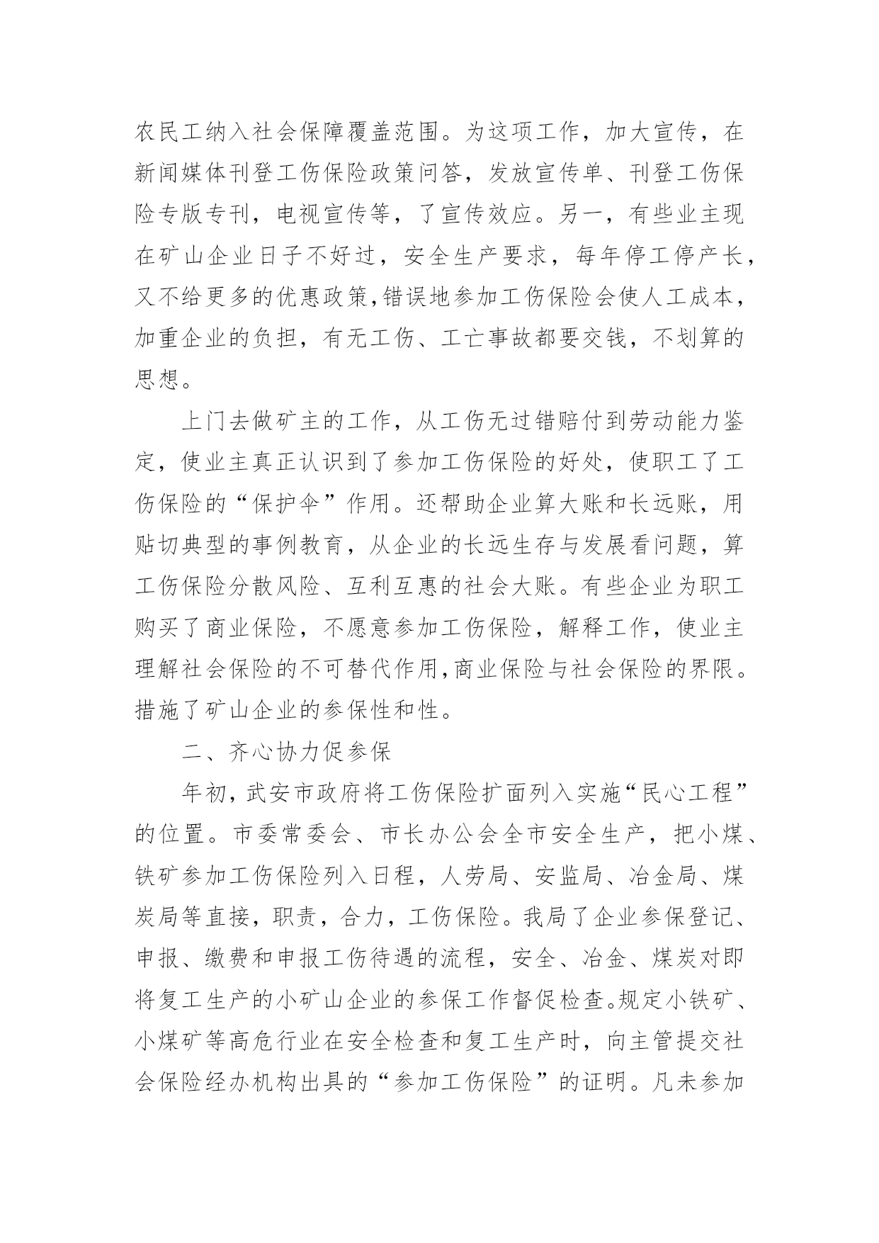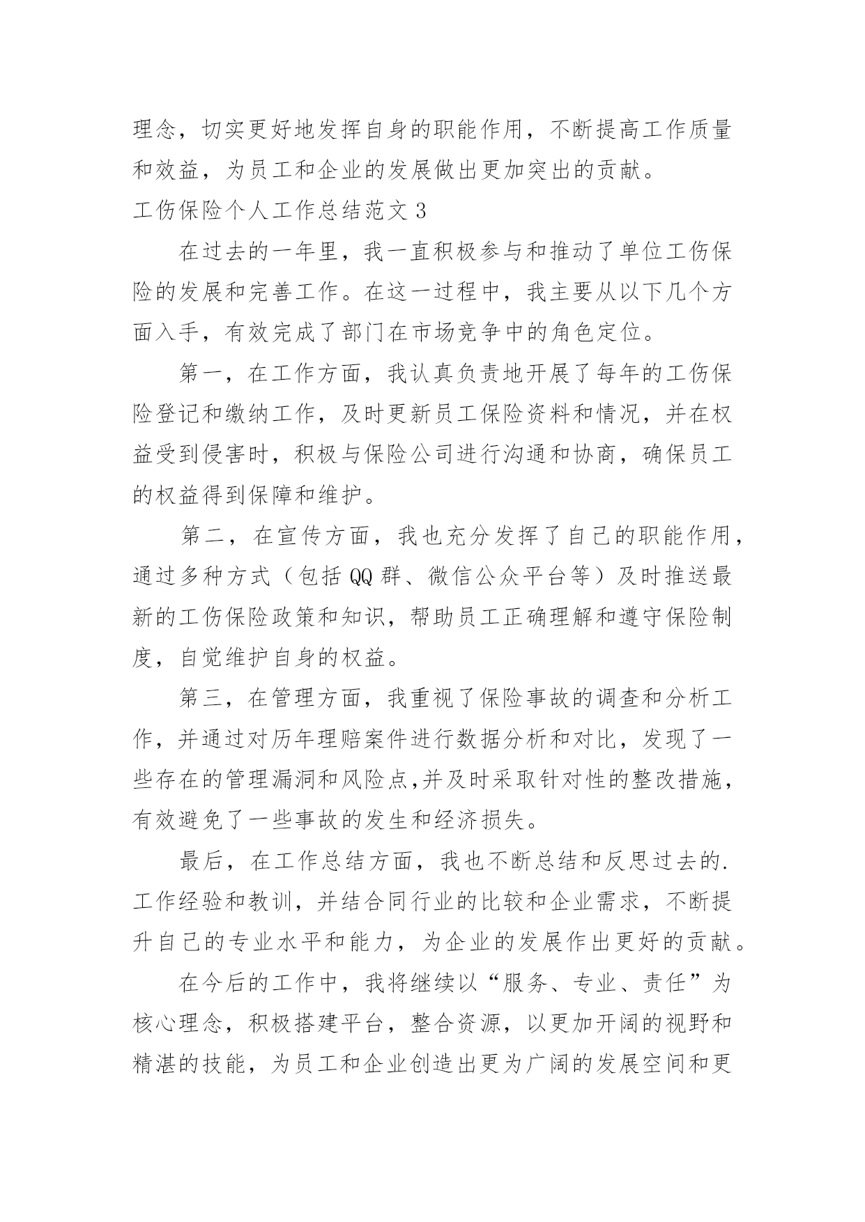 工伤保险个人工作总结工伤保险个人工作总结范文总结是对某一特定时间段内的学习和工作生活等表现情况加以回顾和分析的一种书面材料,它可以帮助我们有寻找学习和工作中的规律,为此要我们写一份总结。我们该怎么写总结呢?以下是小编帮大家整理的工伤保险个人工作总结范文,仅供参考,希望能够帮助到大家。工伤保险个人工作总结范文1作为一个工伤保险专员,我在日常工作中坚持思想上的进步,开展极为严谨的业务,以确保每个保险客户得到最高标准和最准确的服务。首先,充分发挥我的公司经验和专业能力,主动参与品牌推广和维护工作,上门宣传保险服务,向客户传达优秀的工伤保险知识及其重要性。其次,坚持细致而高质量的审查工作,大件事故的审核能帮助员工获得及时理赔,增强了客户对我们的,自身工伤费用得到及时解决的信心。此外,还用最好的`推销策略帮助目标客户并推广公司的工伤保险。最后,在保险客户申诉中,我以每个客户的利益为中心,维护客户利益与公司利益平衡,双方获得最佳回报。我善于用客观的态度和专业的知识去处理问题,用我的热情去众筹客户和公司的最佳利益。同时,还及时反馈工作中发现的问题,加强与上级部门和保险公司的沟通和协作,不断提高客户服务的质量和效率。总之,我将在今后的工作中不断发挥自己的优势和技能,扎实开展工伤保险工作,以更加责任感和务实的态度,为企业和客户的共同利益建立更加稳健的保障体系。工伤保险个人工作总结范文2本人作为企业工伤保险专员,一直致力于提高工伤保险的宣传和推广工作,为企业的员工提供更加完善的保险服务。在过去的一年中,我认真履行工作职责,抓好工伤保险日常工作,取得了一些成效和经验。首先,在工作日常中,我不断加强与企业其他部门的沟通与合作,争取更多支持和配合,保障了工伤保险工作的正常开展。同时,我也充分发挥了自己的`专业能力和优势,及时回答员工的有关工伤保险的咨询和问题,有效增强员工的保险意识和知晓率。其次,在工作中,我也十分注重工作的组织与管理,建立了健全的档案和统计制度,规范了保险事务的开展流程。并且,我还通过定期的数据分析,发现了一些员工保险事故引起的安全隐患和管理漏洞,以便在今后的工作中,针对性地加强管理和措施,预防类似的事故再次发生。最后,我也持续关注员工工伤保险的理赔和案件的审核处理工作,及时与保险公司进行沟通和协调。在保障员工权益同时,也为企业节省了不少经济成本和人力资源。在今后的工作中,我将继续秉承“服务、专业、责任”理念,切实更好地发挥自身的职能作用,不断提高工作质量和效益,为员工和企业的发展做出更加突出的贡献。工伤保险个人工作总结范文3在过去的一年里,我一直积极参与和推动了单位工伤保险的发展和完善工作。在这一过程中,我主要从以下几个方面入手,有效完成了部门在市场竞争中的角色定位。第一,在工作方面,我认真负责地开展了每年的工伤保险登记和缴纳工作,及时更新员工保险资料和情况,并在权益受到侵害时,积极与保险公司进行沟通和协商,确保员工的权益得到保障和维护。第二,在宣传方面,我也充分发挥了自己的职能作用,通过多种方式(包括QQ群、微信公众平台等)及时推送最新的工伤保险政策和知识,帮助员工正确理解和遵守保险制度,自觉维护自身的权益。第三,在管理方面,我重视了保险事故的调查和分析工作,并通过对历年理赔案件进行数据分析和对比,发现了一些存在的管理漏洞和风险点,并及时采取针对性的整改措施,有效避免了一些事故的发生和经济损失。最后,在工作总结方面,我也不断总结和反思过去的.工作经验和教训,并结合同行业的比较和企业需求,不断提升自己的专业水平和能力,为企业的发展作出更好的贡献。在今后的工作中,我将继续以“服务、专业、责任”为核心理念,积极搭建平台,整合资源,以更加开阔的视野和精湛的技能,为员工和企业创造出更为广阔的发展空间和更多的社会效益。工伤保险个人工作总结范文4在过去一个月的时间里,我一直在积极地开展工伤保险业务的推广工作。通过与员工的沟通和宣传,成功地提高了大家的意识和认识,促进了企业的工伤保险制度的完善和落实。首先,我与企业的劳保部门进行了密切的合作,力求提高工伤保险知识的普及程度,并且负责每个员工的保险登记和缴纳工作。为了确保全体员工的权益能够得到保障,我们对每个员工的工作环境进行了仔细的分析和评估,查缺补漏,确保其安全和健康。其次,我们积极开展了一些公开的.宣传活动,例如发放宣传单、张贴宣传海报、举行讲座等。通过这些活动,我们不仅让员工们了解到了工伤保险制度的运作机制,更重要的是让他们意识到了自己的保险责任,认识到了工作场所的安全问题。最后,在工作的过程中,我们积极跟踪保险案件的进展,解决员工们遇到的工伤保险纠纷。同时,我们也在不断地总结和评估自己的工作,为今后的推广工作积累经验,并发挥出更好的作用。在今后的工作中,我将继续发挥自己的优势和专业知识