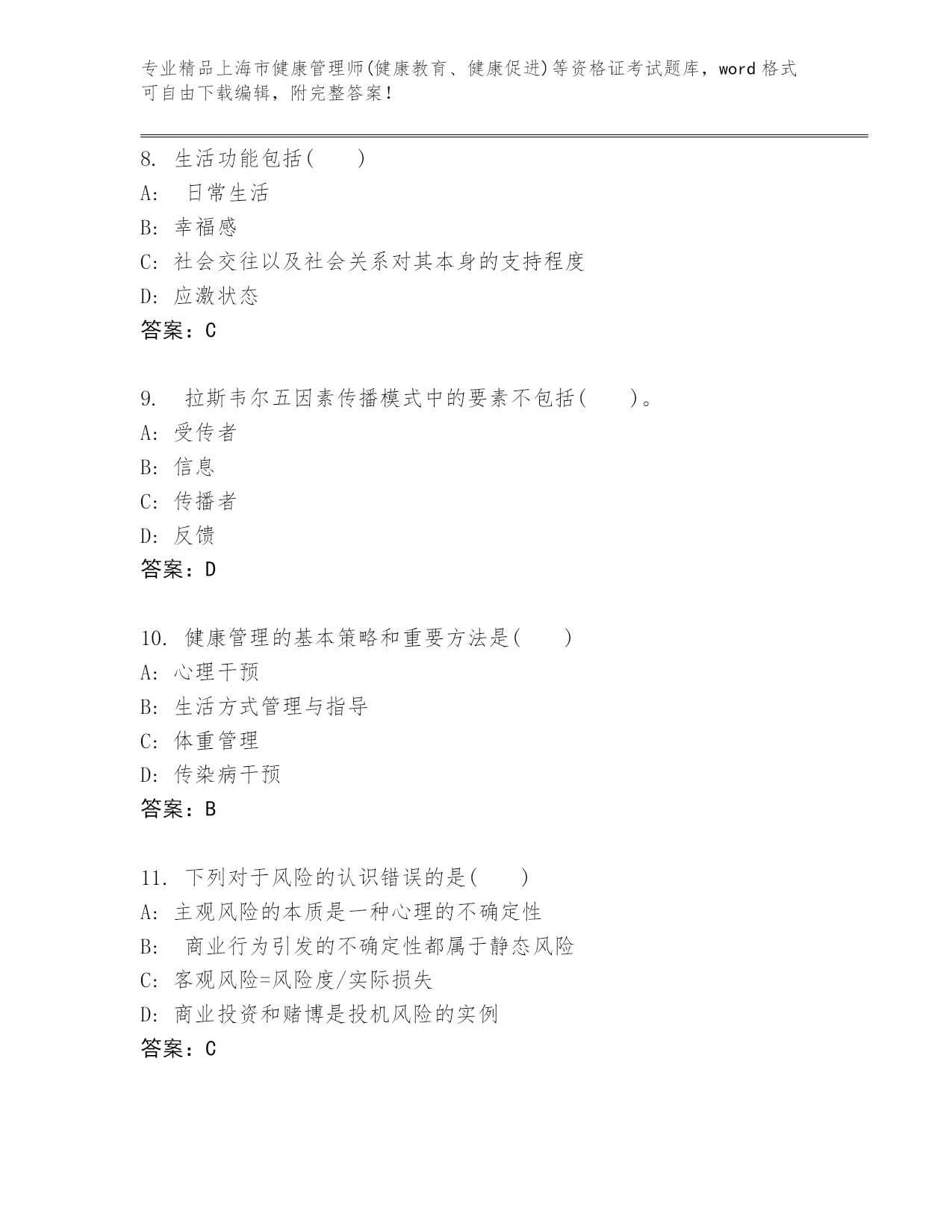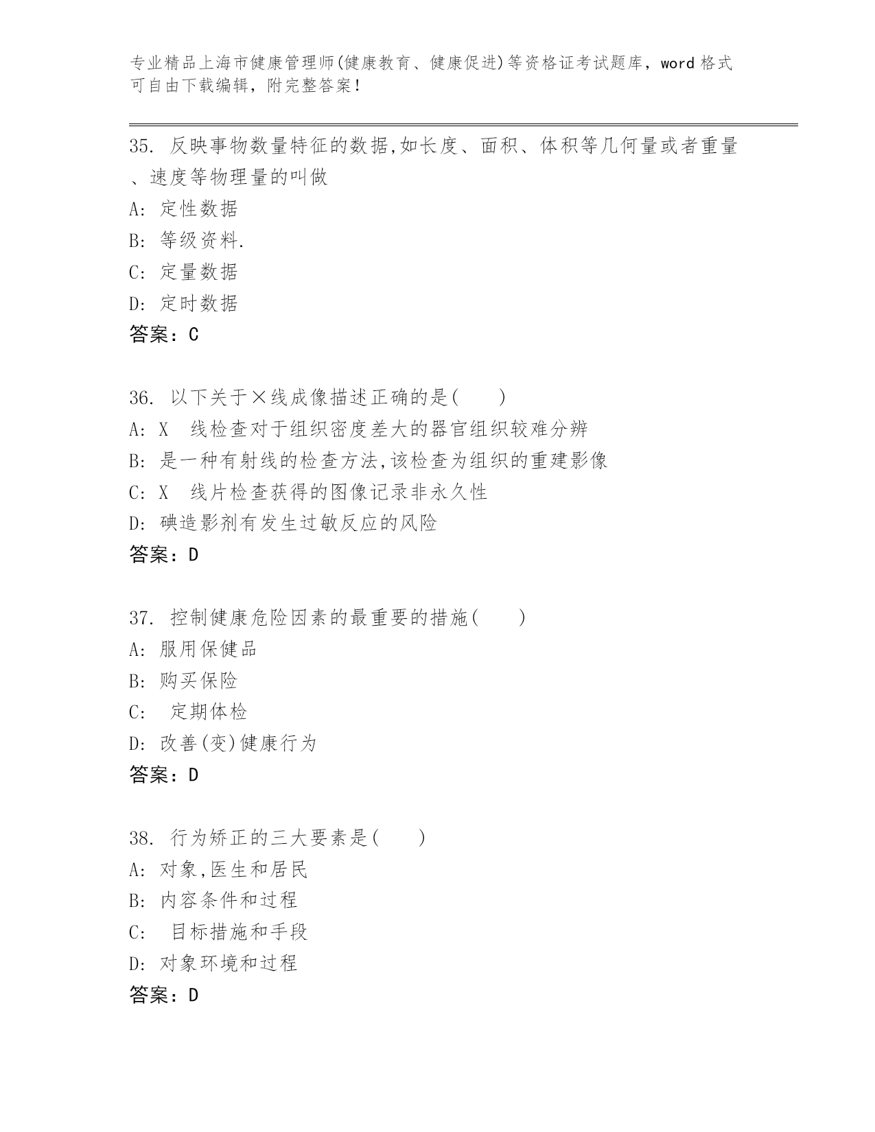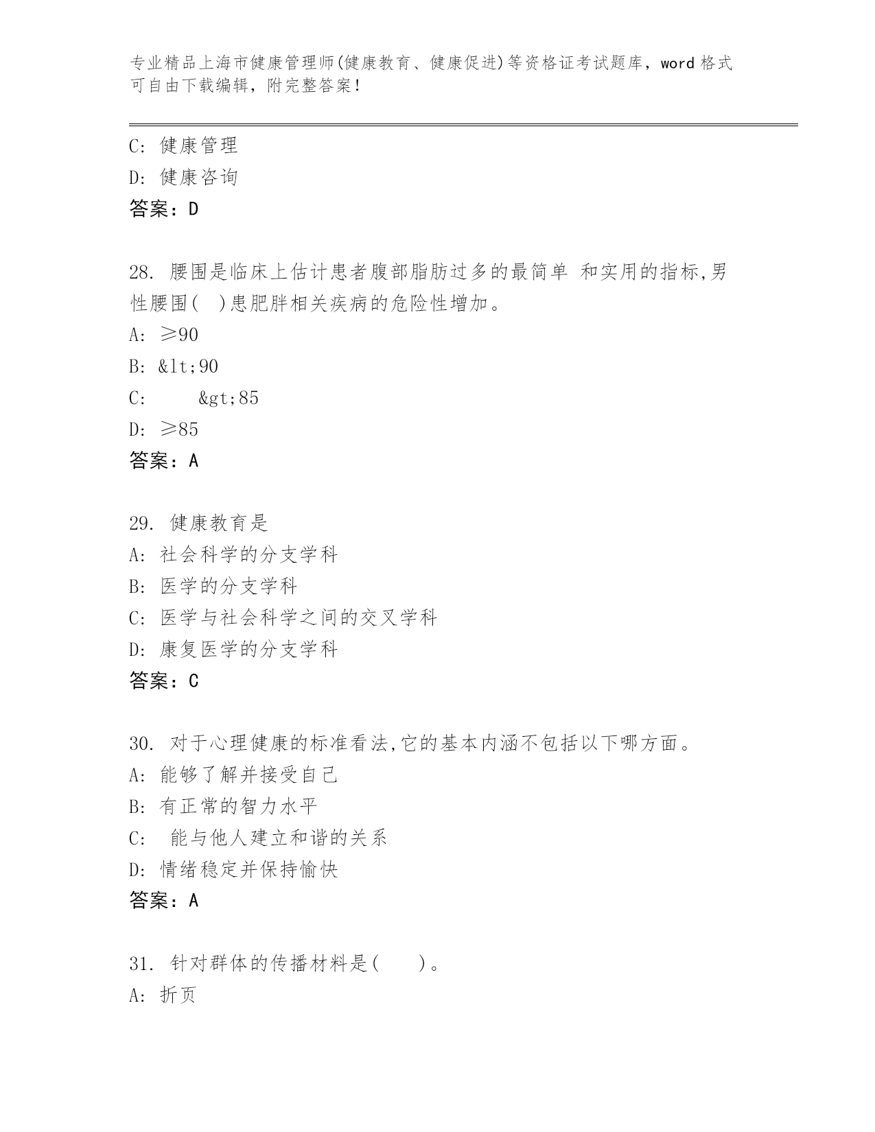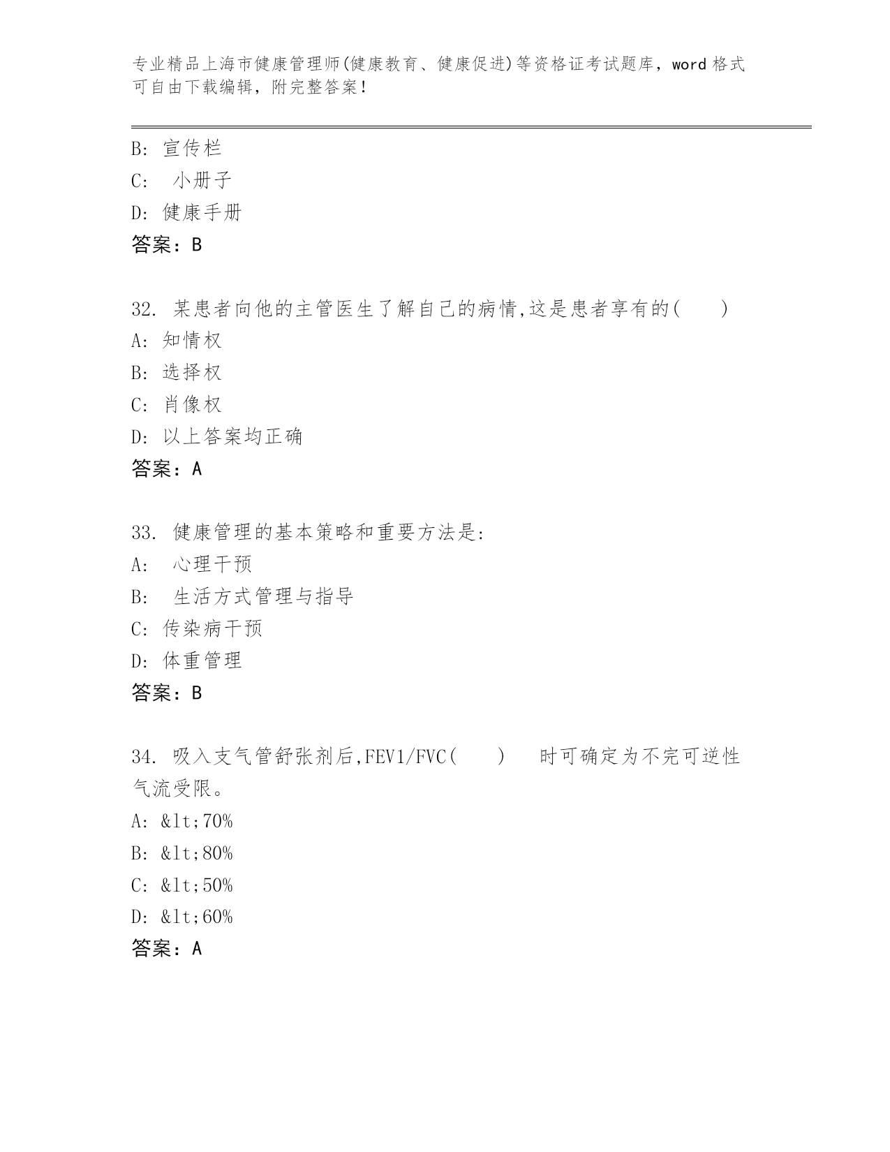 优选上海市健康管理师(健康教育、健康促进)等资格证考试大全有精品答案