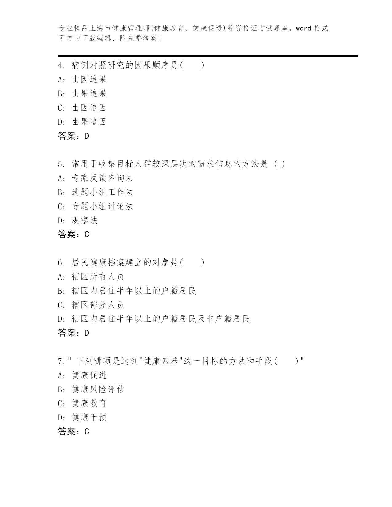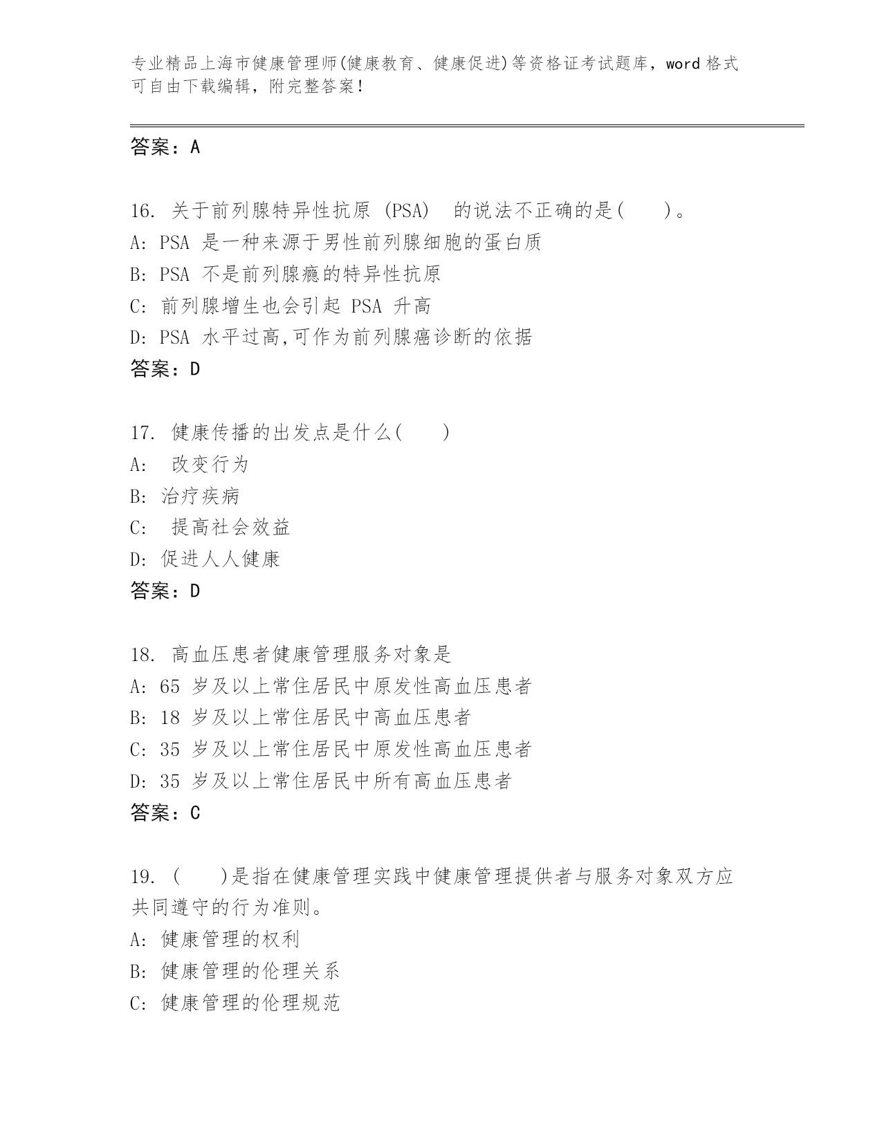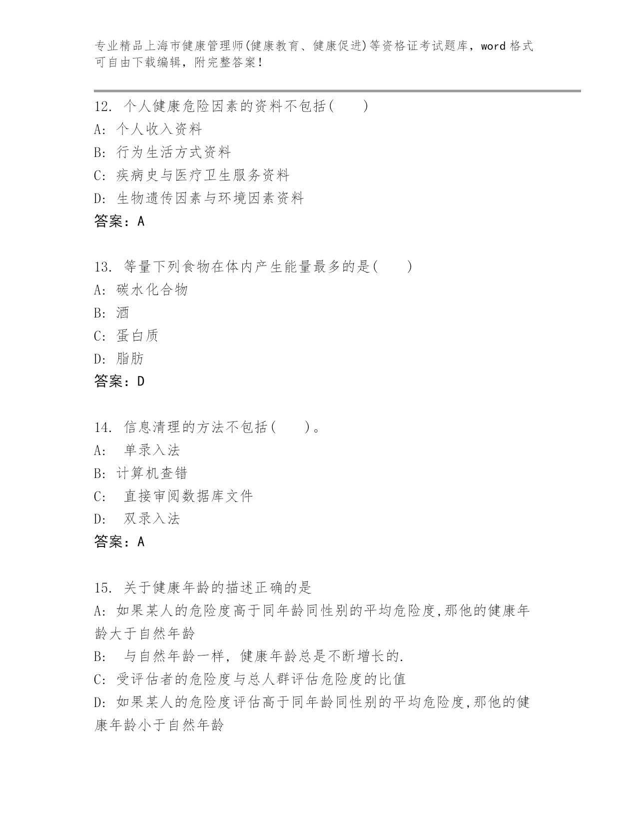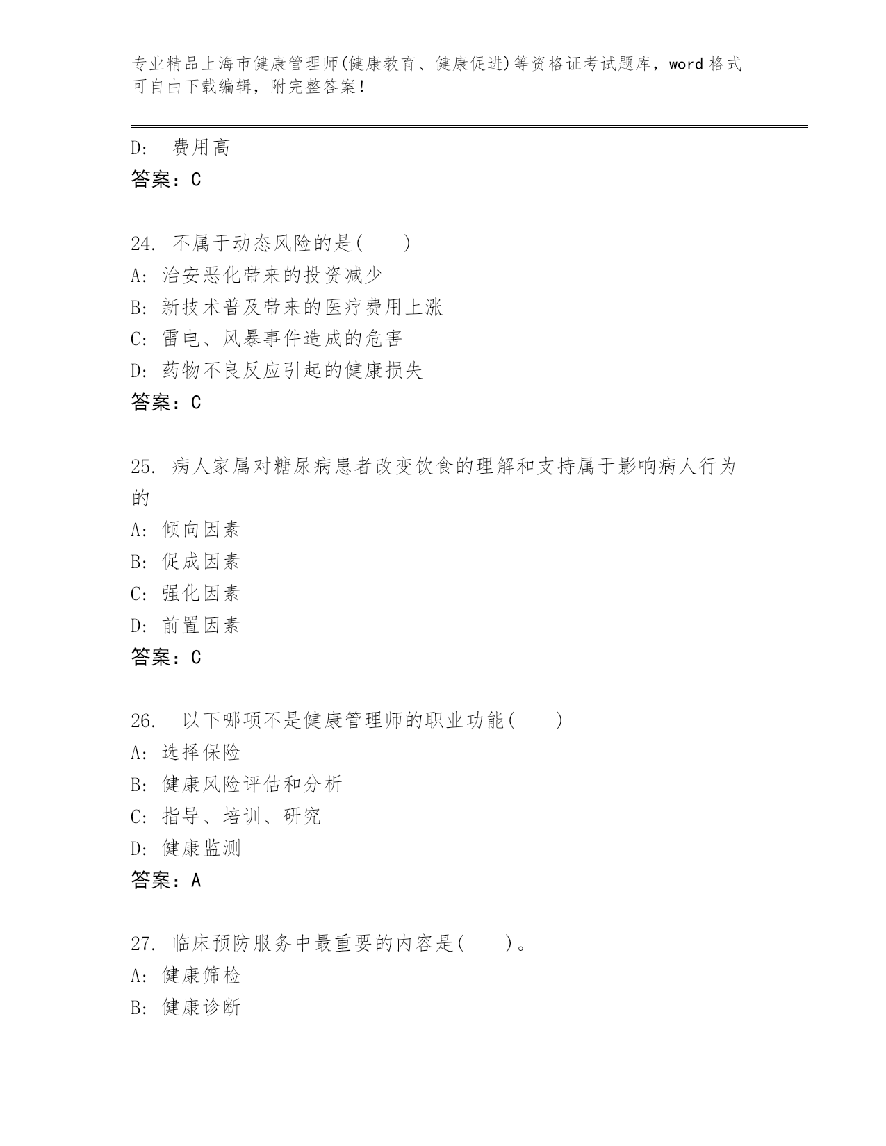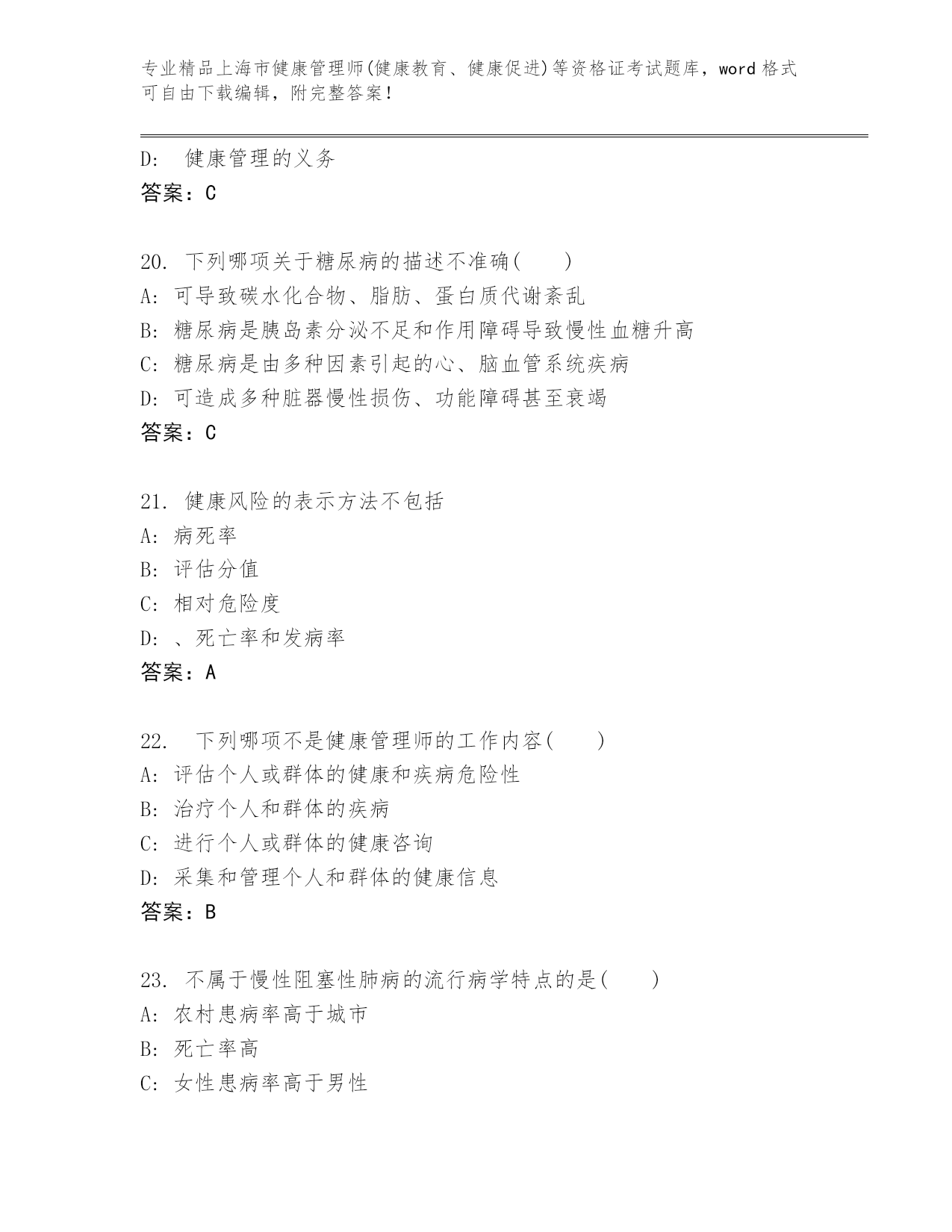 优选上海市健康管理师(健康教育、健康促进)等资格证考试大全有精品答案