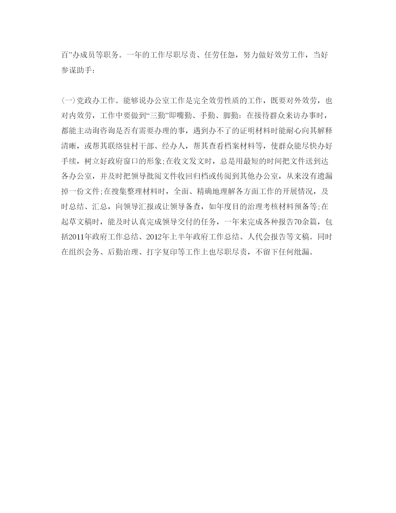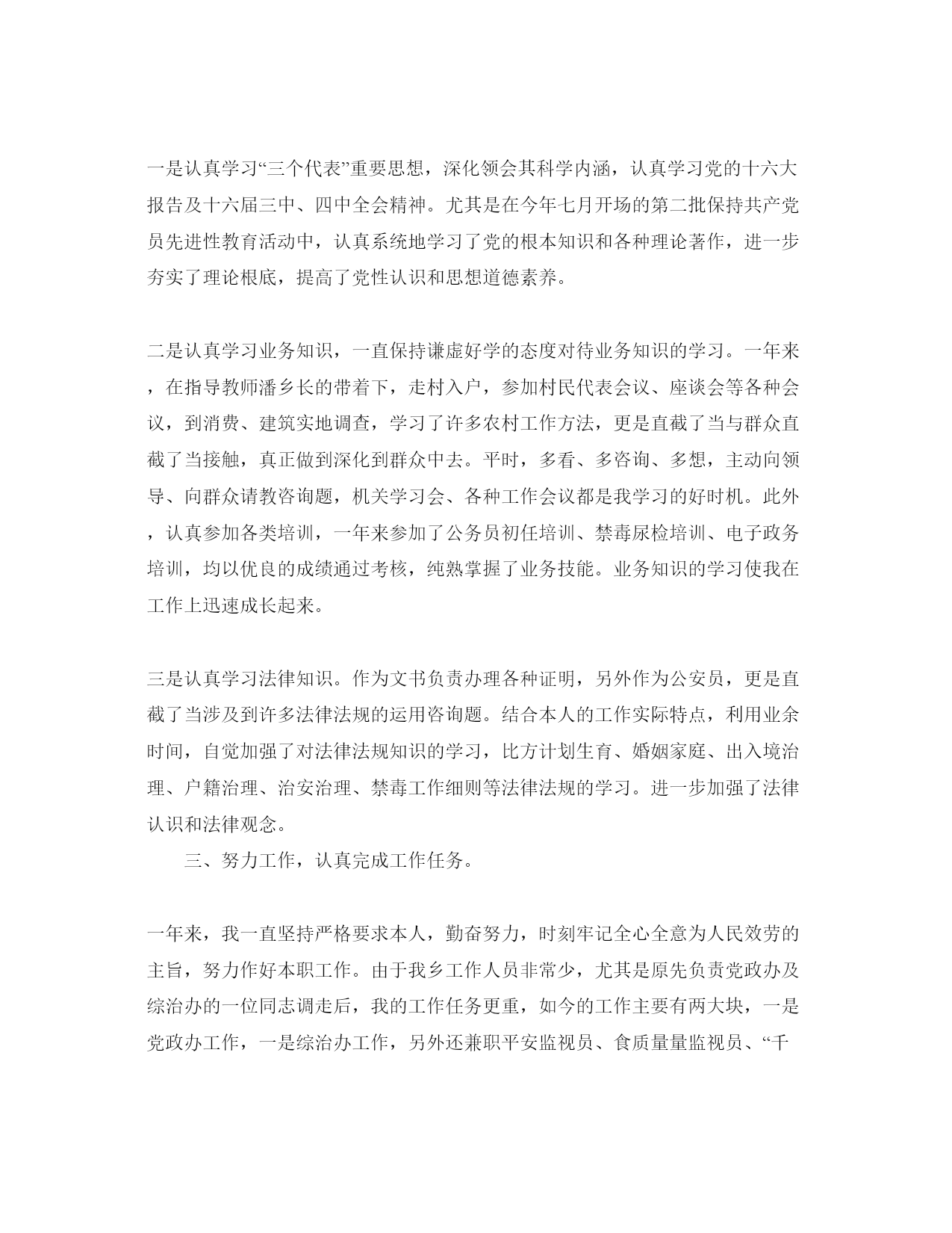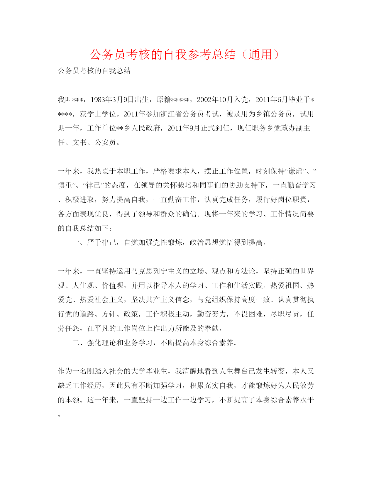 公务员考核的自我参考总结(通用)公务员考核的自我总结我叫***,1983年3月9日出生,原籍*****,2002年10月入党,2011年6月毕业于*****,获学士学位。2011年参加浙江省公务员考试,被录用为乡镇公务员,试用期一年,工作单位**乡人民政府,2011年9月正式到任,现任职务乡党政办副主任、文书、公安员。一年来,我热衷于本职工作,严格要求本人,摆正工作位置,时刻保持“谦虚”、“慎重”、“律己”的态度,在领导的关怀栽培和同事们的协助支持下,一直勤奋学习、积极进取,努力提高自我,一直勤奋工作,认真完成任务,履行好岗位职责,各方面表现优良,得到了领导和群众的确信。现将一年来的学习、工作情况简要的自我总结如下:一、严于律己,自觉加强党性锻炼,政治思想觉悟得到提高。一年来,一直坚持运用马克思列宁主义的立场、观点和方法论,坚持正确的世界观、人生观、价值观,并用以指导本人的学习、工作和生活实践。热爱祖国、热爱党、热爱社会主义,坚决共产主义信念,与党组织保持高度一致。认真贯彻执行党的道路、方针、政策,工作积极主动,勤奋努力,不畏困难,尽职尽责,任劳任怨,在平凡的工作岗位上作出力所能及的奉献。二、强化理论和业务学习,不断提高本身综合素养。作为一名刚踏入社会的大学毕业生,我清醒地看到人生舞台已发生转变,本人又缺乏工作经历,因此只有不断加强学习,积累充实自我,才能锻炼好为人民效劳的本领。这一年来,一直坚持一边工作一边学习,不断提高了本身综合素养水平。一是认真学习“三个代表”重要思想,深化领会其科学内涵,认真学习党的十六大报告及十六届三中、四中全会精神。尤其是在今年七月开场的第二批保持共产党员先进性教育活动中,认真系统地学习了党的根本知识和各种理论著作,进一步夯实了理论根底,提高了党性认识和思想道德素养。二是认真学习业务知识,一直保持谦虚好学的态度对待业务知识的学习。一年来,在指导教师潘乡长的带着下,走村入户,参加村民代表会议、座谈会等各种会议,到消费、建筑实地调查,学习了许多农村工作方法,更是直截了当与群众直截了当接触,真正做到深化到群众中去。平时,多看、多咨询、多想,主动向领导、向群众请教咨询题,机关学习会、各种工作会议都是我学习的好时机。此外,认真参加各类培训,一年来参加了公务员初任培训、禁毒尿检培训、电子政务培训,均以优良的成绩通过考核,纯熟掌握了业务技能。业务知识的学习使我在工作上迅速成长起来。三是认真学习法律知识。作为文书负责办理各种证明,另外作为公安员,更是直截了当涉及到许多法律法规的运用咨询题。结合本人的工作实际特点,利用业余时间,自觉加强了对法律法规知识的学习,比方计划生育、婚姻家庭、出入境治理、户籍治理、治安治理、禁毒工作细则等法律法规的学习。进一步加强了法律认识和法律观念。三、努力工作,认真完成工作任务。一年来,我一直坚持严格要求本人,勤奋努力,时刻牢记全心全意为人民效劳的主旨,努力作好本职工作。由于我乡工作人员非常少,尤其是原先负责党政办及综治办的一位同志调走后,我的工作任务更重,如今的工作主要有两大块,一是党政办工作,一是综治办工作,另外还兼职平安监视员、食质量量监视员、“千百”办成员等职务。一年的工作尽职尽责、任劳任怨,努力做好效劳工作,当好参谋助手:(一)党政办工作。能够说办公室工作是完全效劳性质的工作,既要对外效劳,也对内效劳,工作中要做到“三勤”即嘴勤、手勤、脚勤:在接待群众来访办事时,都能主动询咨询是否有需要办理的事,遇到办不了的证明材料时能耐心向其解释清晰,或帮其联络驻村干部、经办人,帮其查看档案材料等,使群众能尽快办好手续,树立好政府窗口的形象;在收文发文时,总是用最短的时间把文件送到达各办公室,并及时把领导批阅文件收回归档或传阅到其他办公室,从来没有遗漏掉一份文件;在搜集整理材料时,全面、精确地理解各方面工作的开展情况,及时总结、汇总,向领导汇报或让领导备查,如年度目的治理考核材料预备等;在起草文稿时,能及时认真完成领导交付的任务,一年来完成各种报告70余篇,包括2011年政府工作总结、2012年上半年政府工作总结、人代会报告等文稿。同时在组织会务、后勤治理、打字复印等工作上也尽职尽责,不留下任何纰漏。