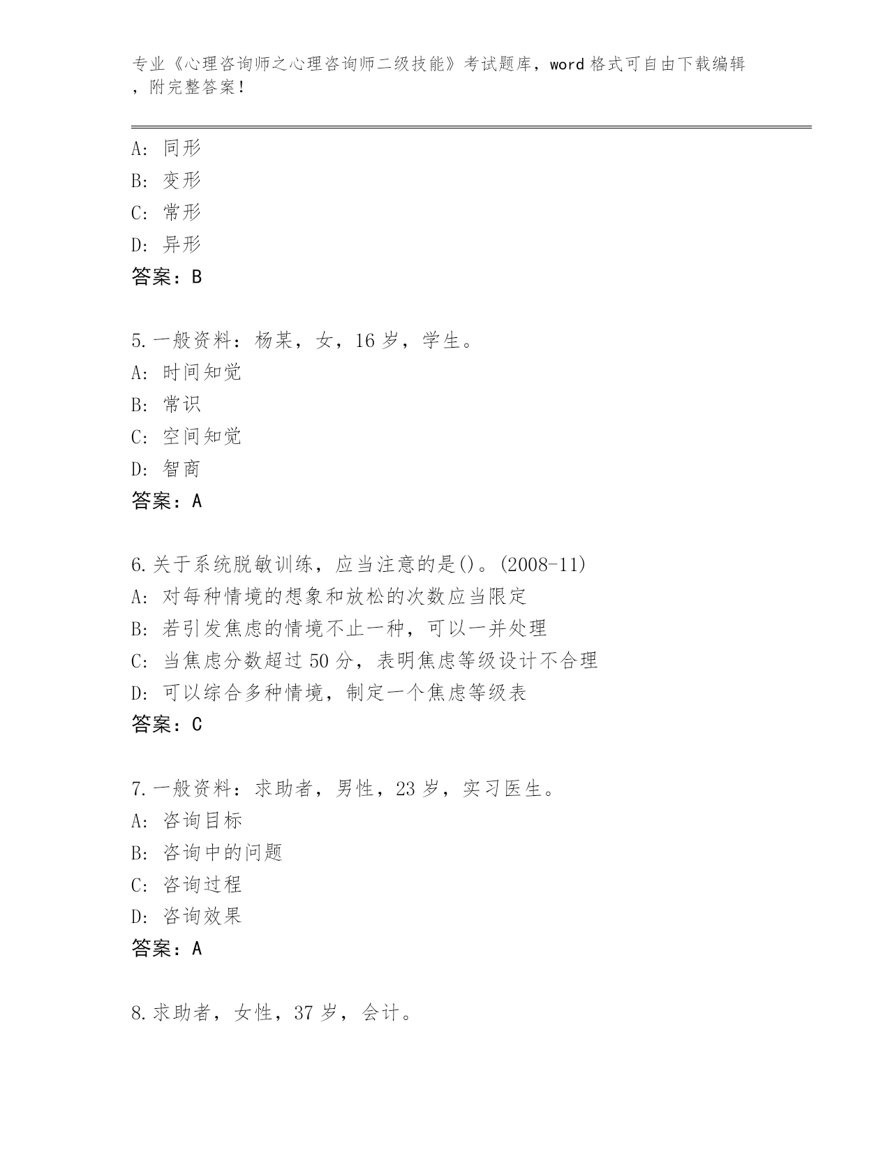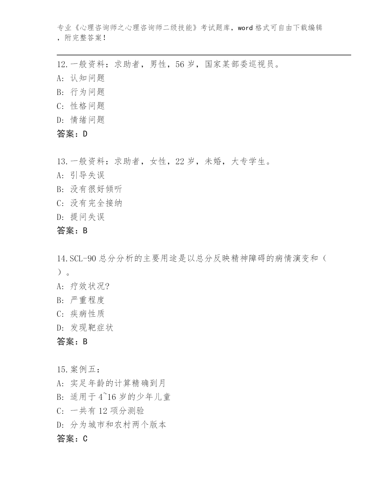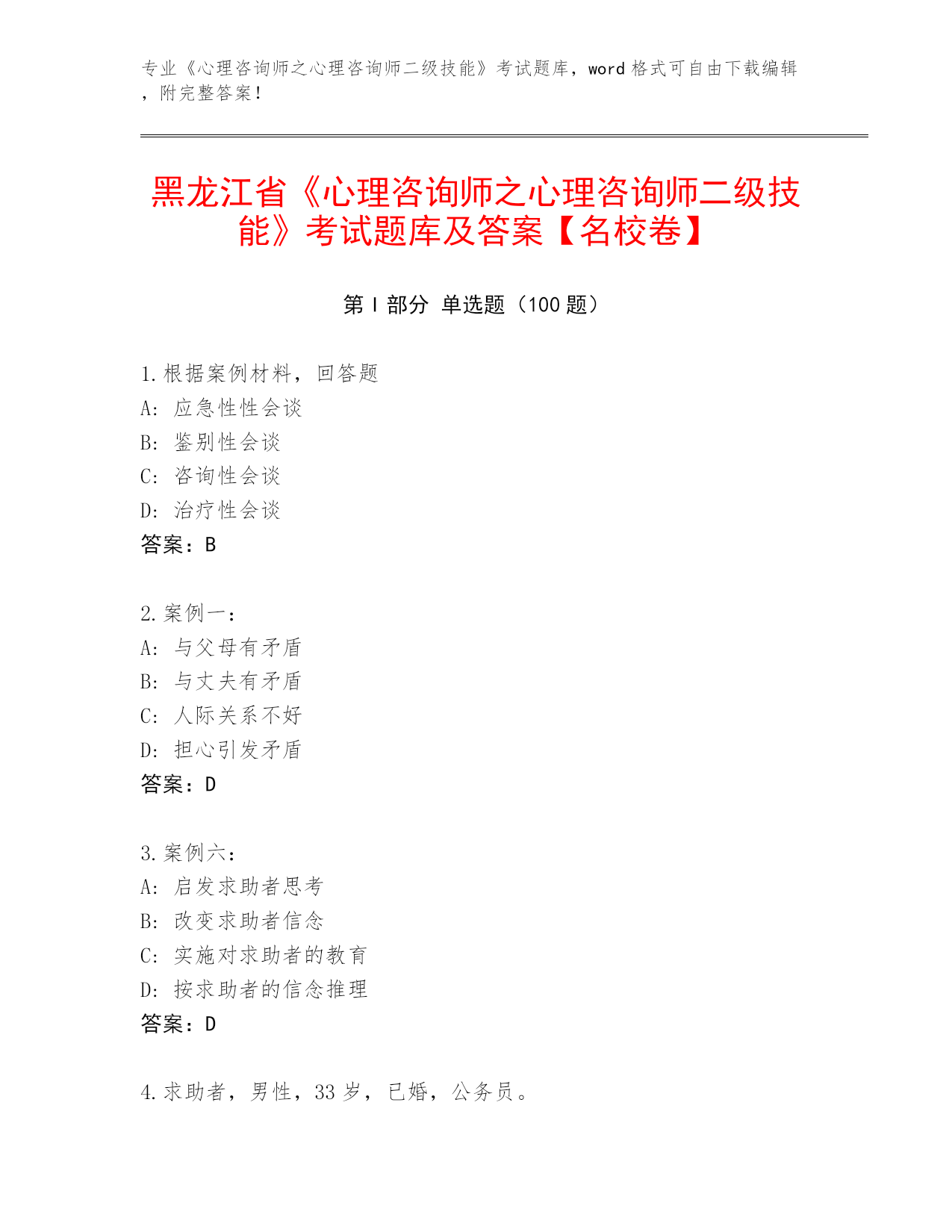黑龙江省《心理咨询师之心理咨询师二级技能》考试题库及答案【名校卷】
