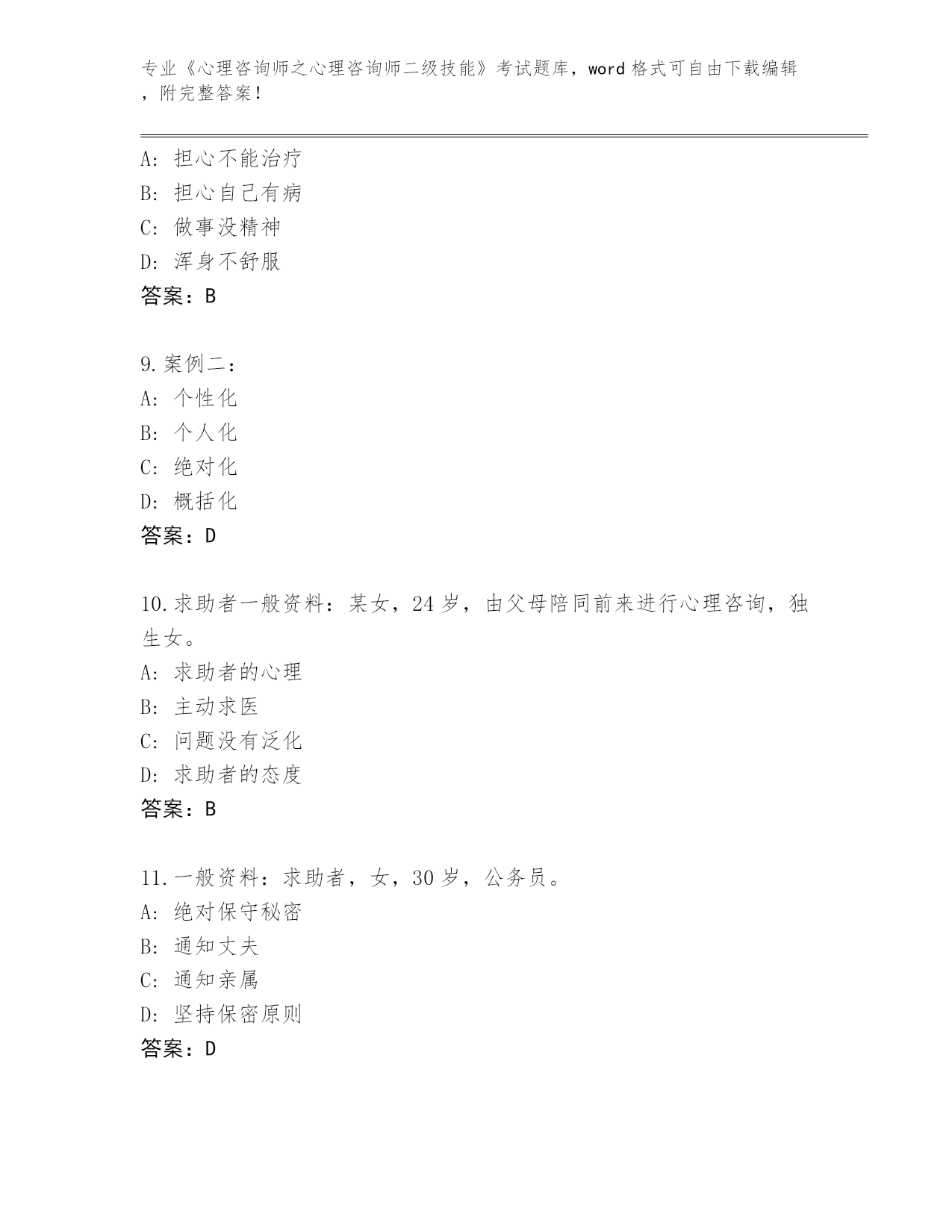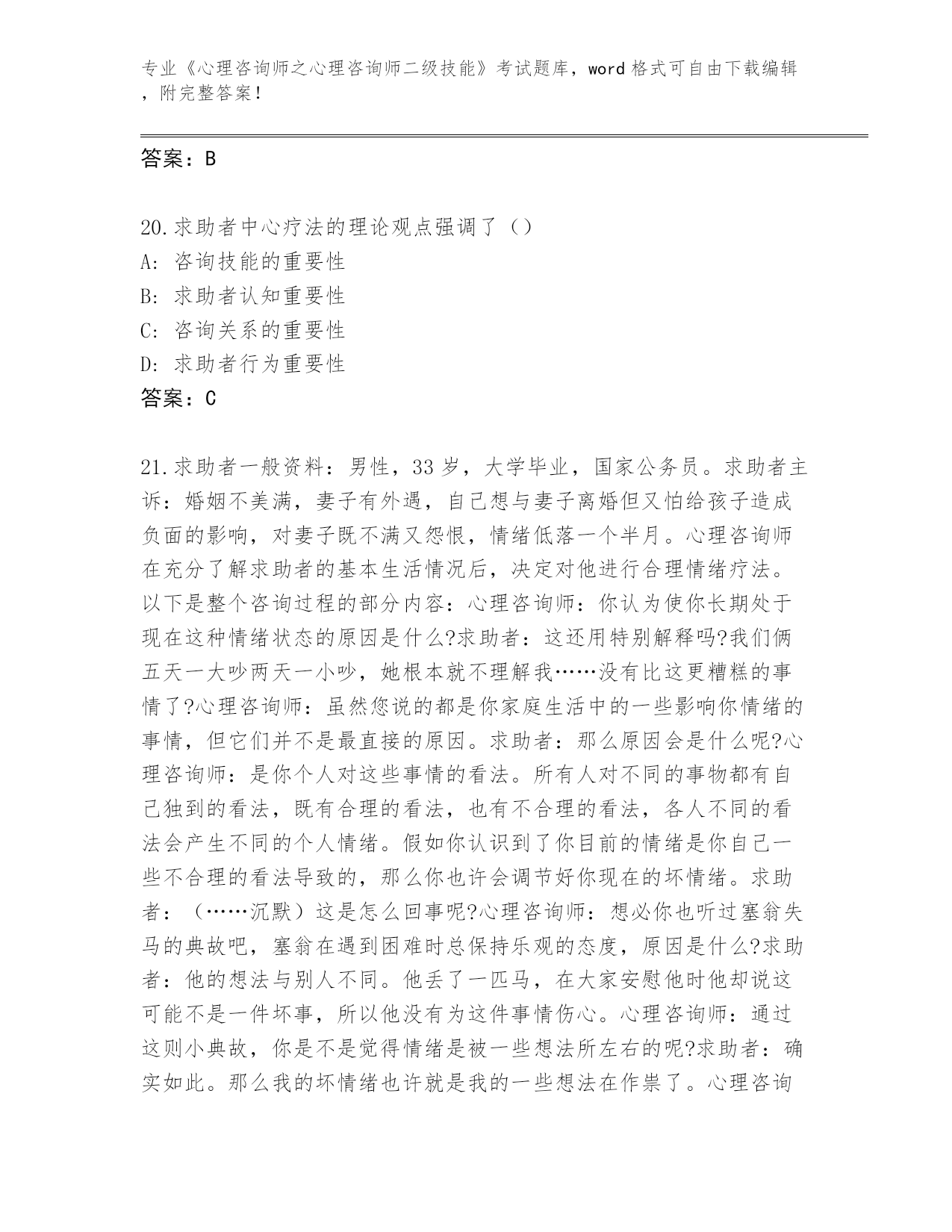 历年黑龙江省《心理咨询师之心理咨询师二级技能》考试必刷200题及答案【名校卷】