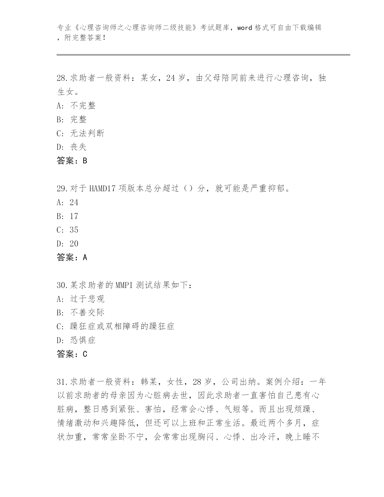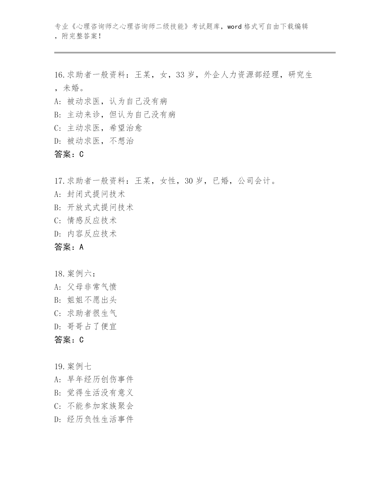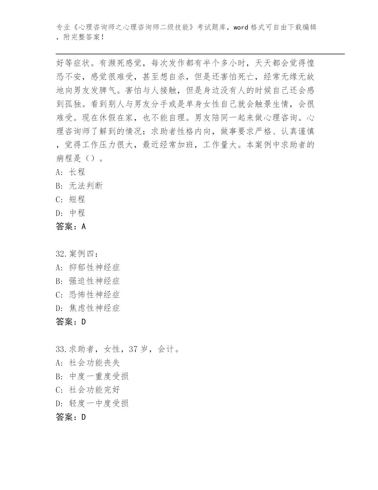 2024浙江省《心理咨询师之心理咨询师二级技能》考试真题及答案(名校卷)