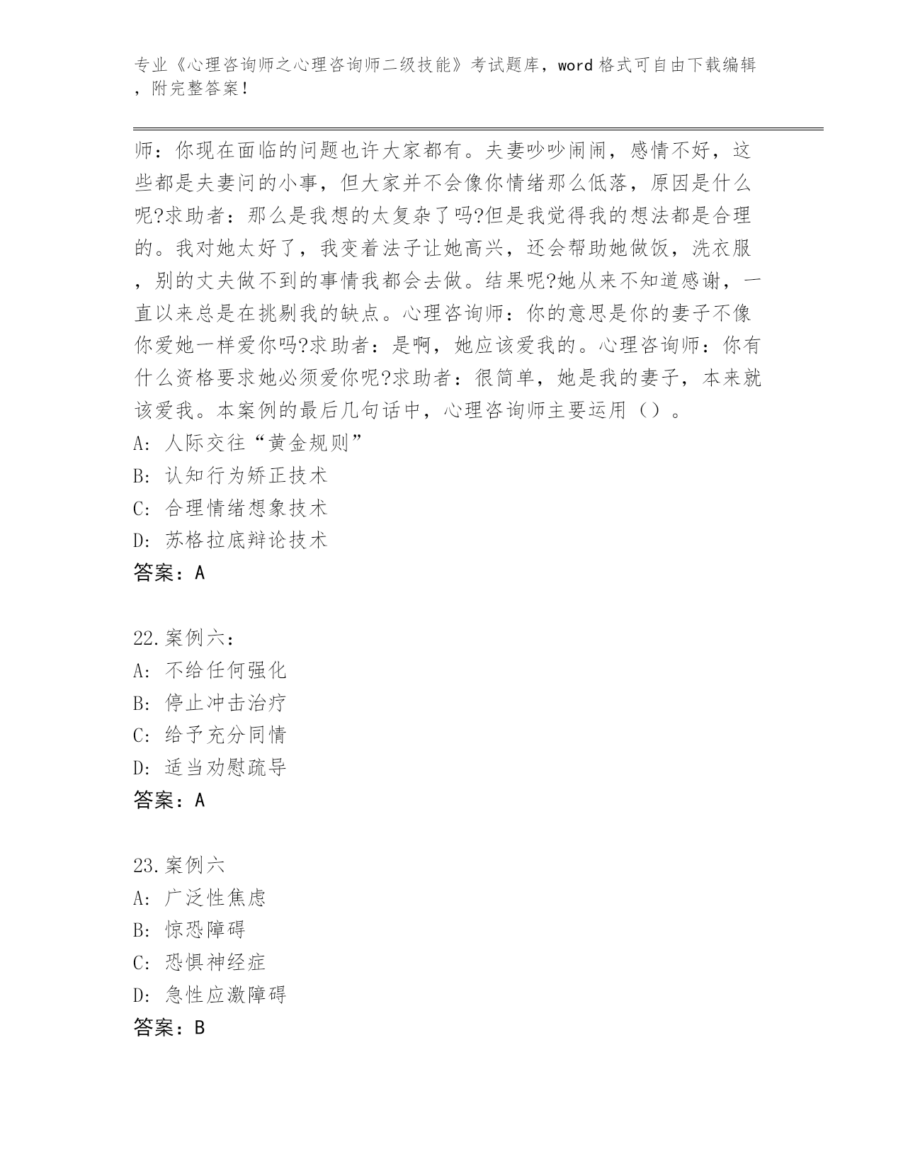 黑龙江省东山区2024年《心理咨询师之心理咨询师二级技能》考试王牌题库及答案(名校卷)