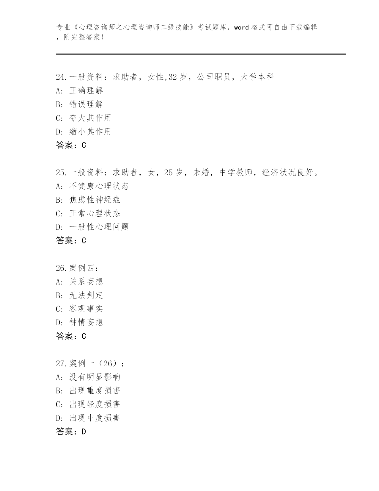 2024年黑龙江省孙吴县《心理咨询师之心理咨询师二级技能》考试(名校卷)