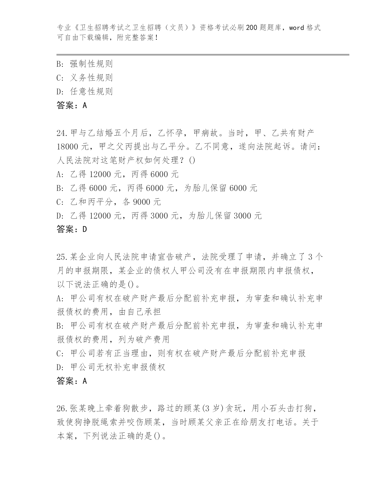 2024甘肃省徽县《卫生招聘考试之卫生招聘(文员)》资格考试必刷200题【典优】